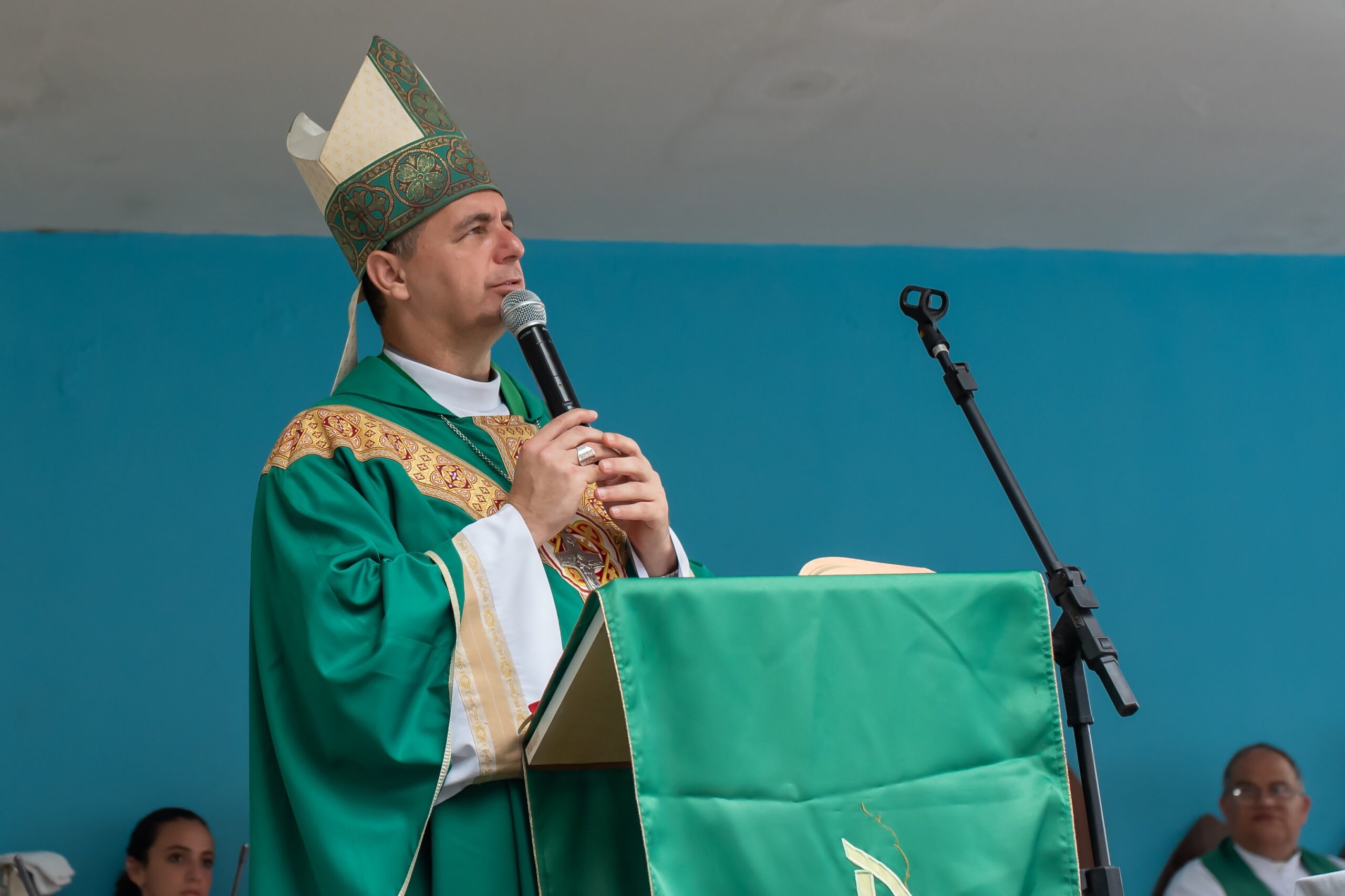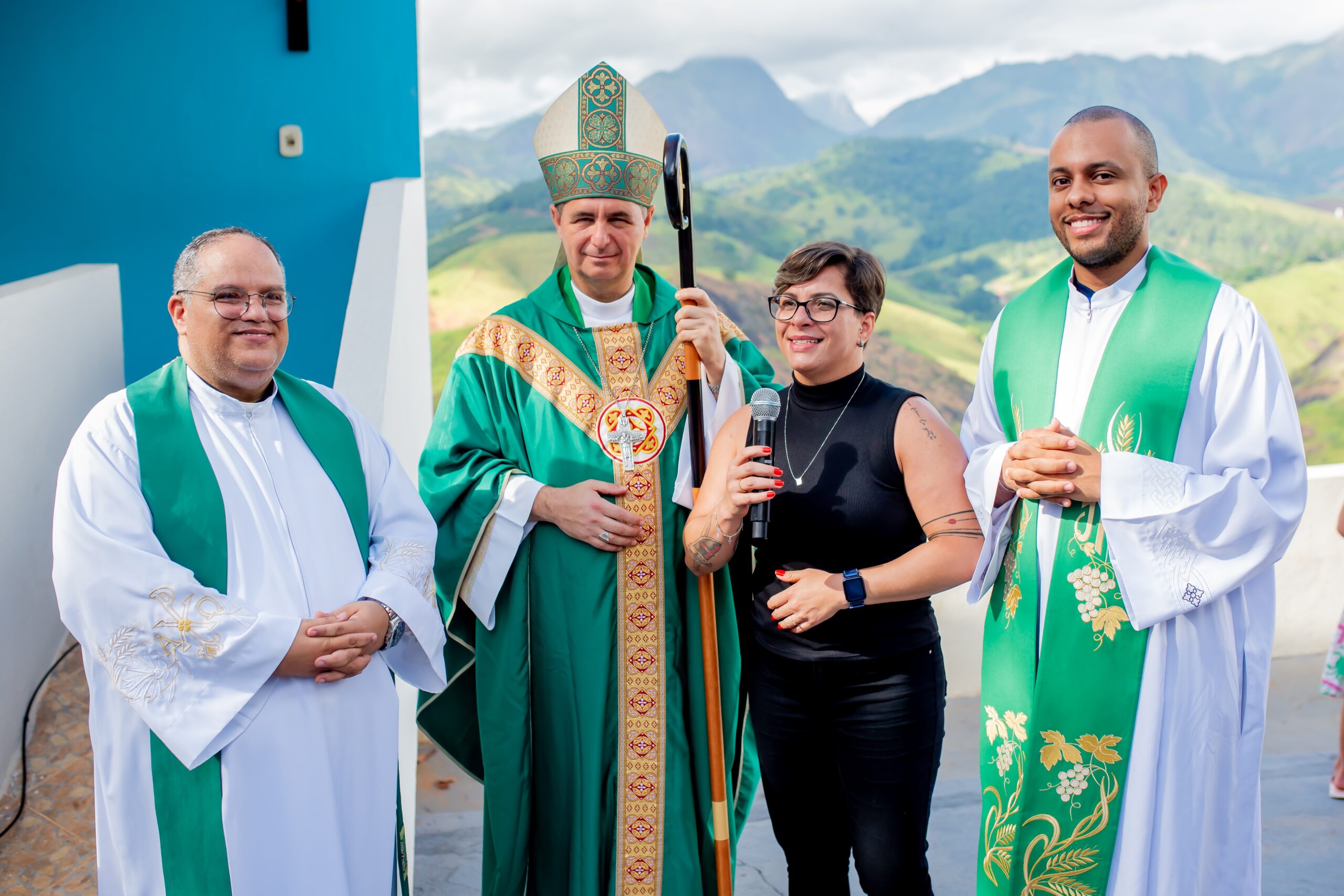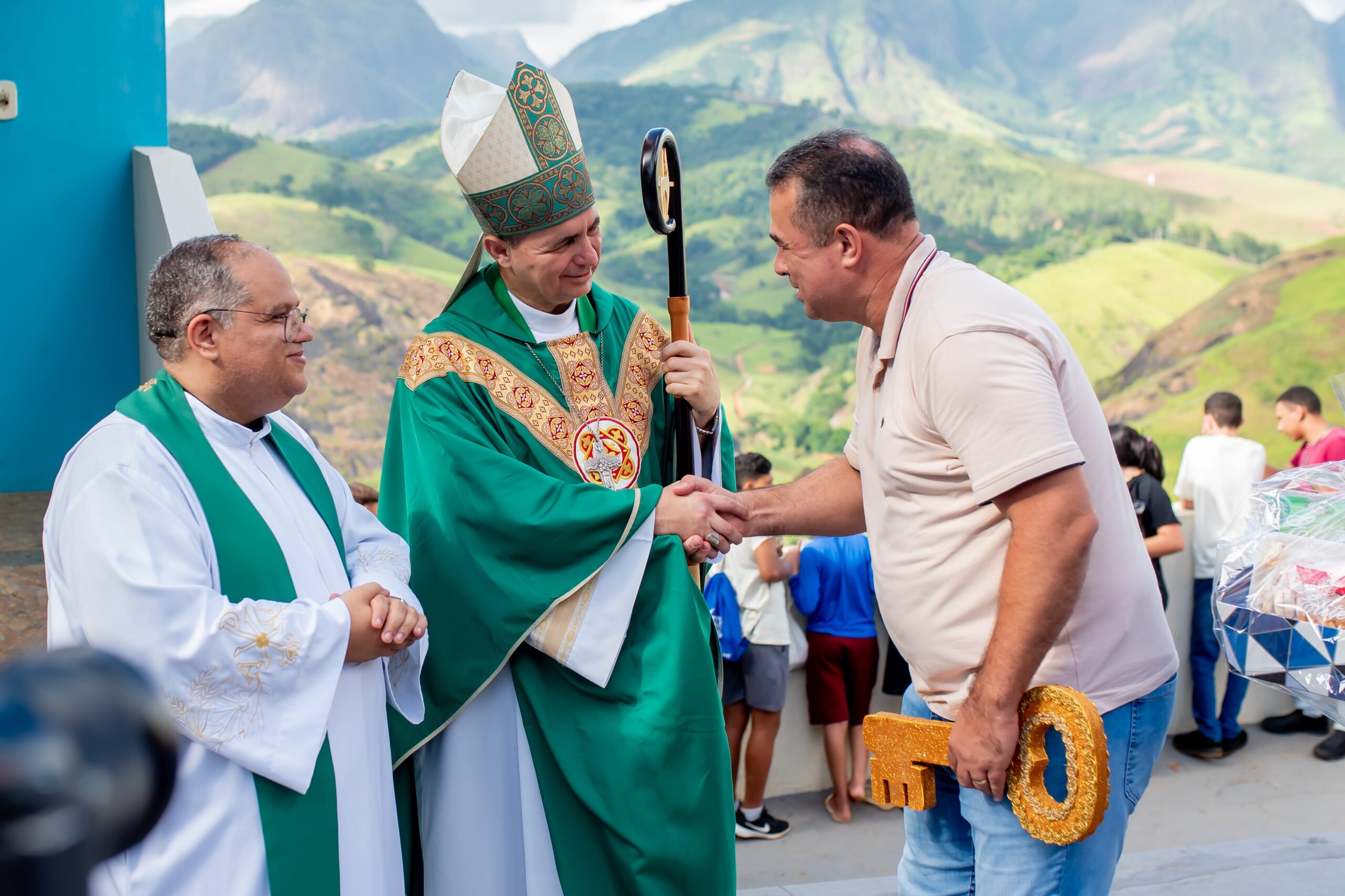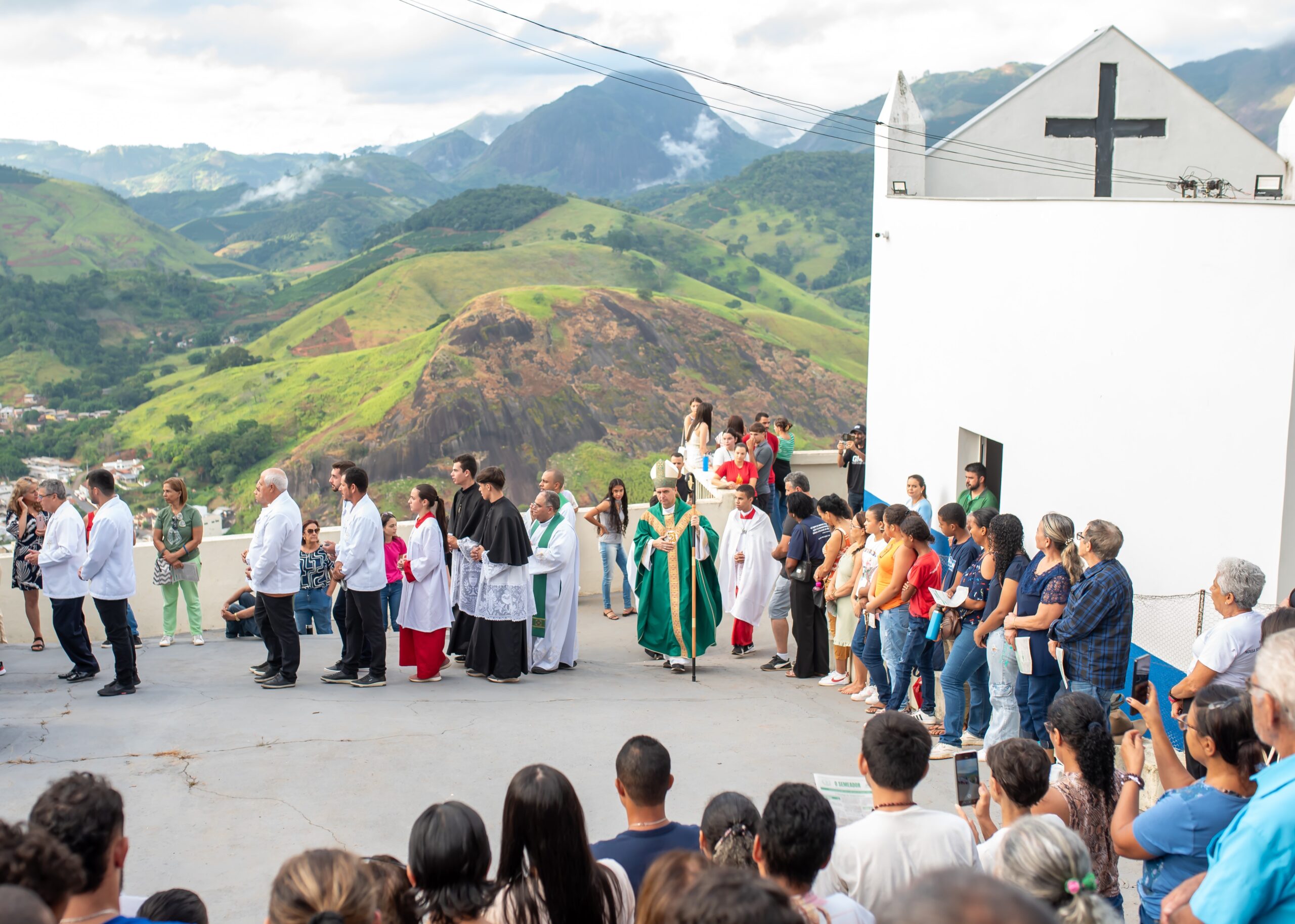 Acolhemos com muito carinho Dom Juarez Delorto Secco, nosso Bispo Diocesano que veio caminhar conosco, subindo a montanha com nossos jovens e adolescentes e nos deixando uma palavra muito especial de pai e pastor, especialmente para nossos inúmeros adolescentes e jovens que lá estavam.