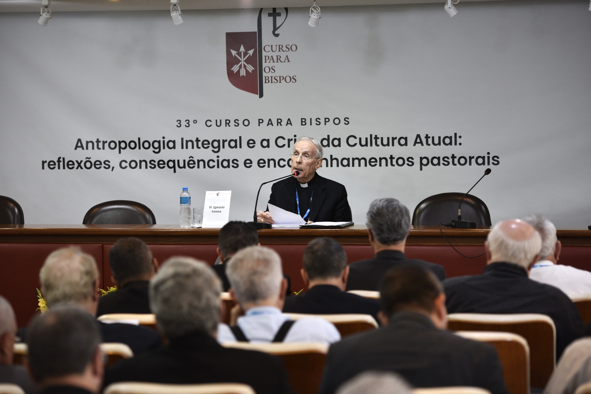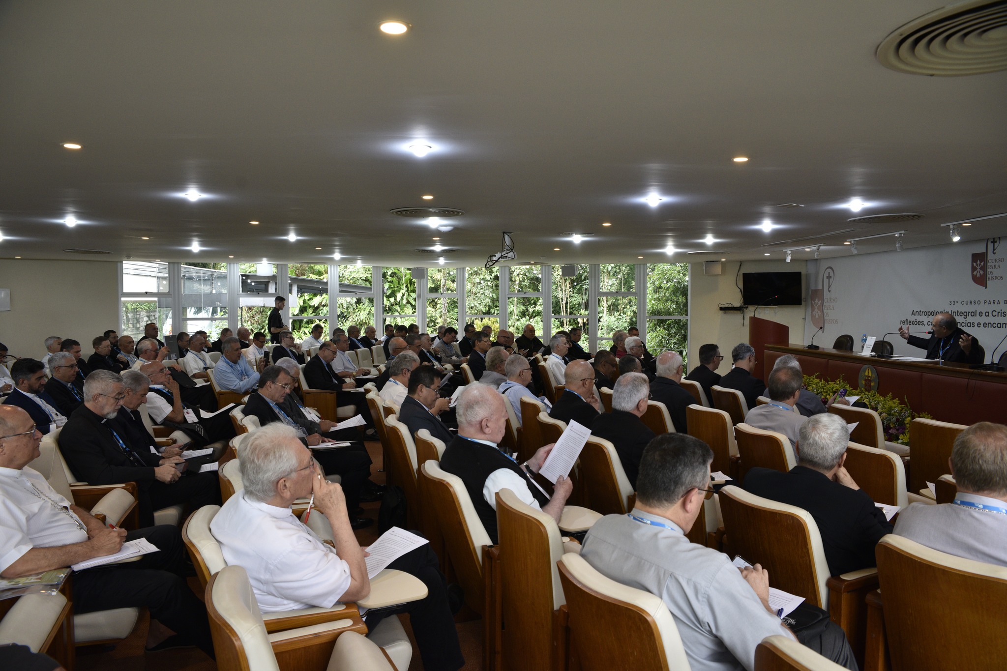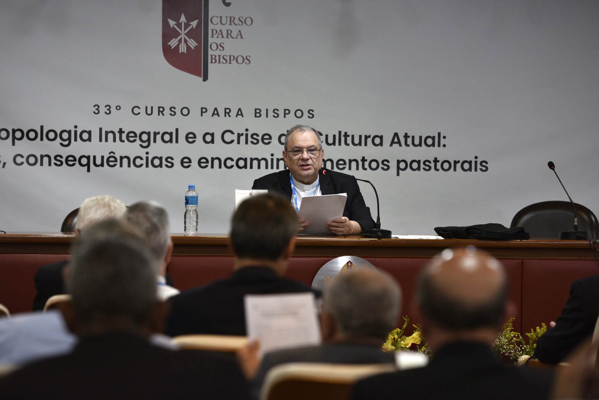 Após a celebração eucarística, abrindo o ciclo de conferências da 33ª edição do Curso para os Bispos, que trabalha com a temática: “Antropologia integral e a crise da cultura atual”, Cardeal José Tolentino apresentou para um auditório repleto de bispos de todo o Brasil a conferência “Mudança de época: crise e oportunidade para o Evangelho”.