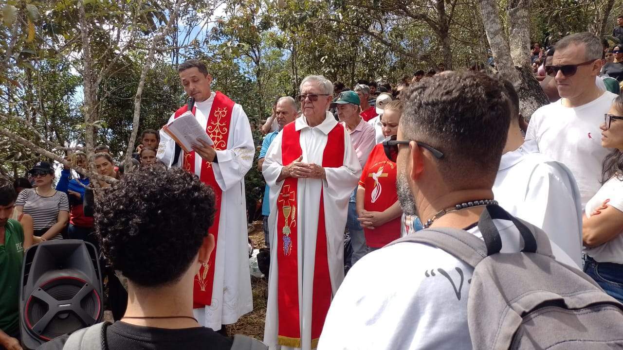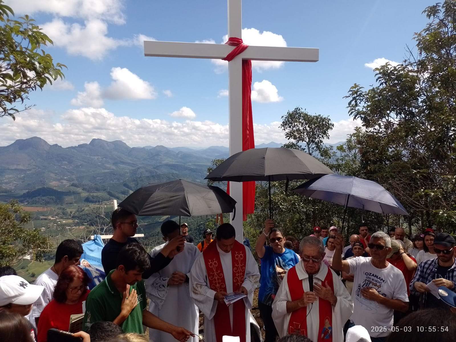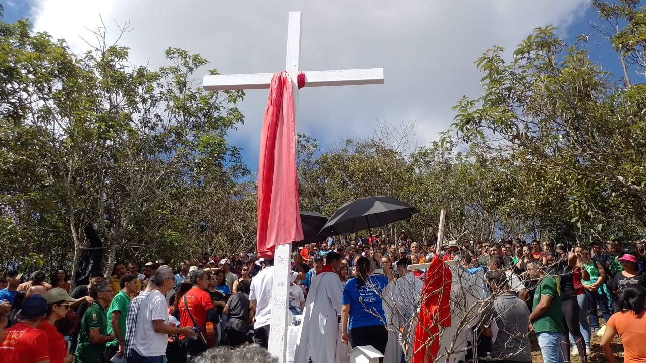 Na trilha que leva ao alto do Cruzeiro, os fiéis rezaram nas estações da Parada de Oração Via Sacra, como um ato de devoção, até a chegada ao ponto mais alto, onde outros fiéis esperavam a chegada de padre Antônio Otaviano, que foi recebido com uma calorosa salva de palmas.