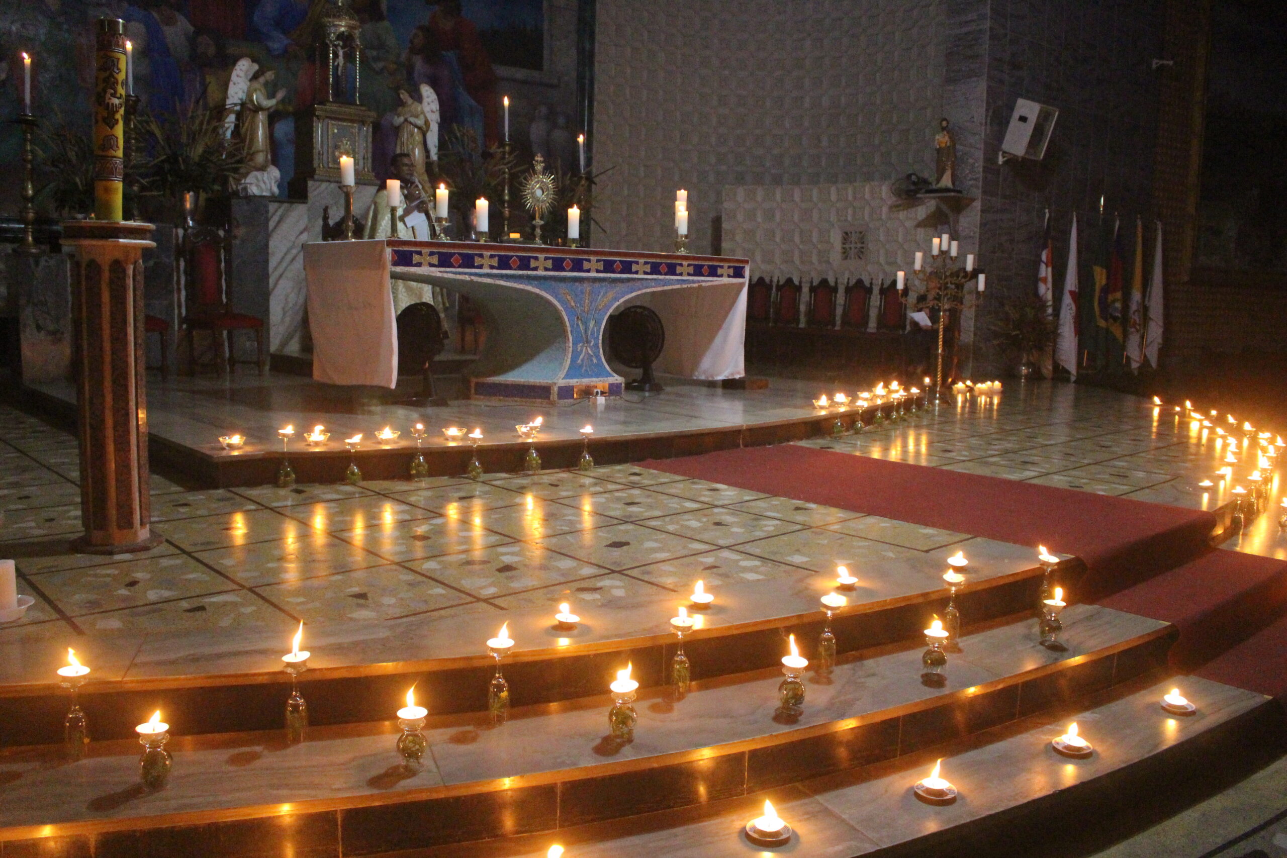 Na quarta-feira, dia 29 de maio, às 19 horas, missa presidida por Pe. Marcondes Ferreira e participação da Paróquia Senhor Bom Jesus, Após a missa aconteceu o “Lucernário” traz em seu sentido o movimento das luzes que eram acendidas ao fim do dia. Tendo a luz e a contemplação como centralidade, essa é uma oração da noite onde o povo de Deus se reúne para dar graças a Deus pelo bem recebido e suplicar pela proteção divina, a partir de mantras, cantos, leituras bíblicas, reflexões e silêncio, fixos no olhar de Jesus! Com o desejo de preparação para a Solenidade de Corpus Christi, uma parada para meditar, já que em meio a tanto ruído externo, tanto fazer e tanto “dar conta” nos esquecemos de escutar o coração e a voz de Deus que nos convida a seguir colaborando com o seu Reino de paz, justiça e amor.