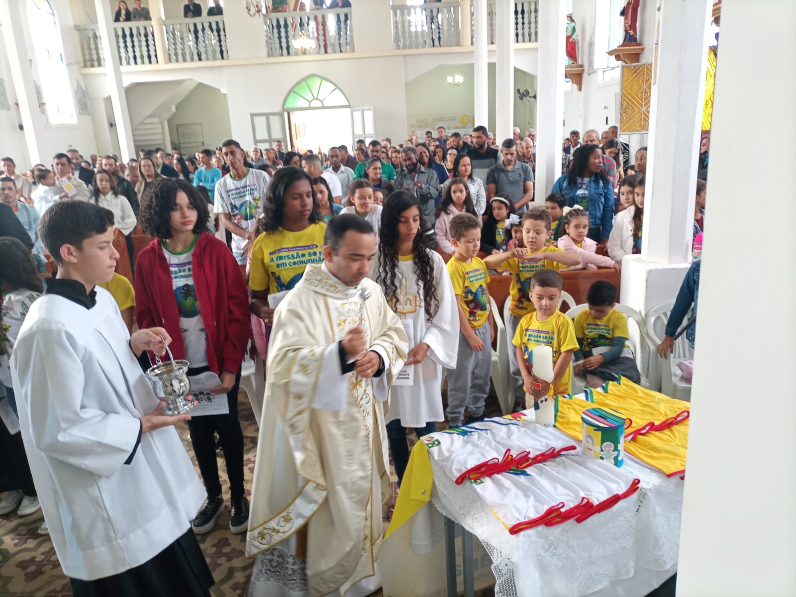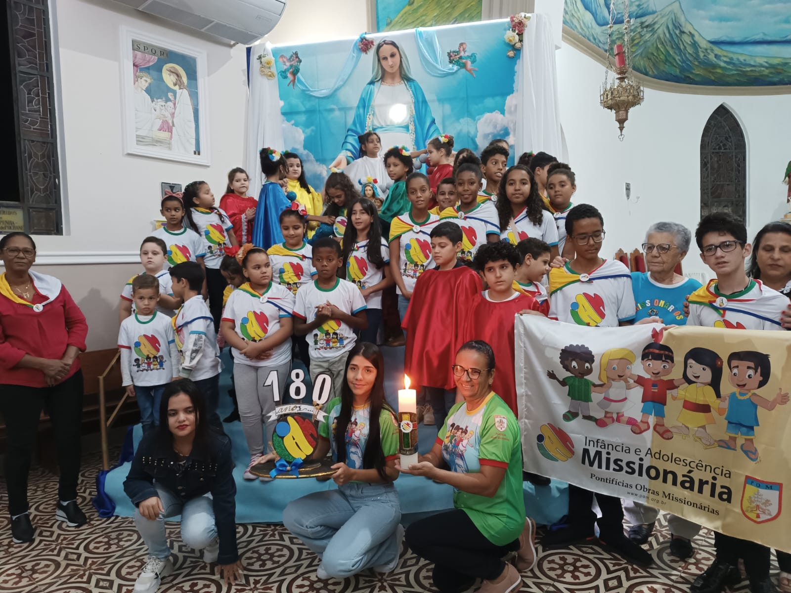 A infância e adolescência missionária de nossa diocese celebrou neste último domingo ( 21 de maio), em algumas paróquias, a jornada nacional da IAM, que trás como tema “A missão se faz em comunhão” e o lema Corações ardentes e pés a caminho ( Lc 24,32-33). Em comunhão com a celebração, realizamos a consagração e renovação de várias crianças, adolescentes e assessores, que reafirmaram o compromisso de tornar Jesus conhecido e amado, rezando todos os dias uma Ave Maria por cada criança de todo o mundo e realizando um gesto concreto de doar uma moedinha por mês em favor dos compromissos da obra e despertando desde cedo o gesto da caridade em amor ao próximo.