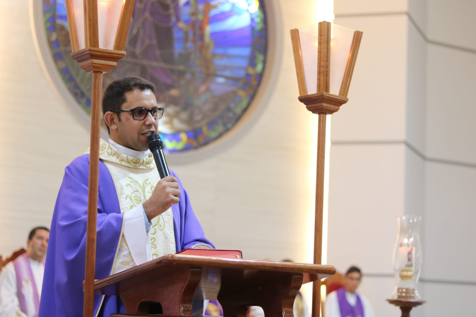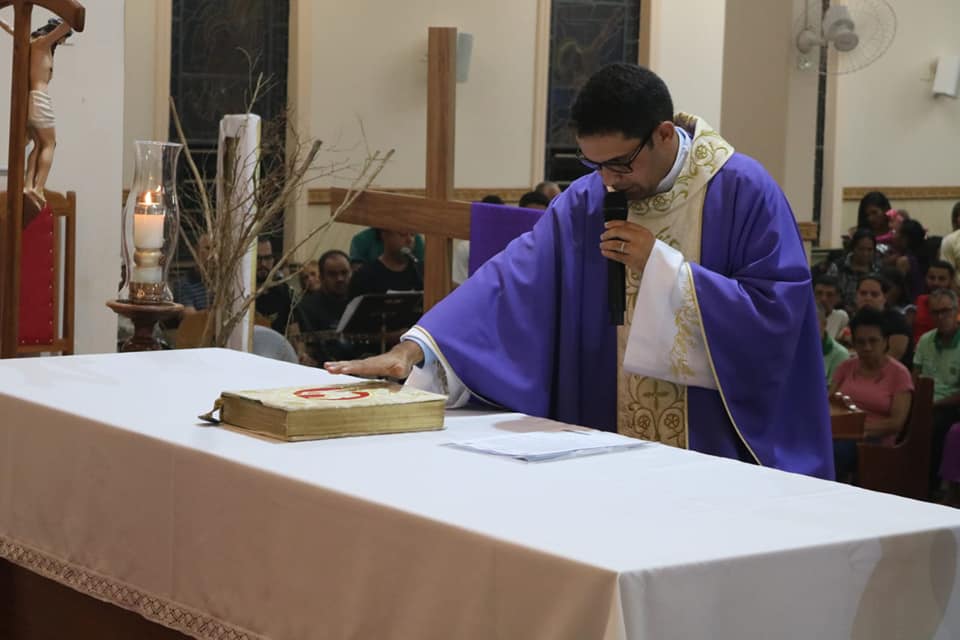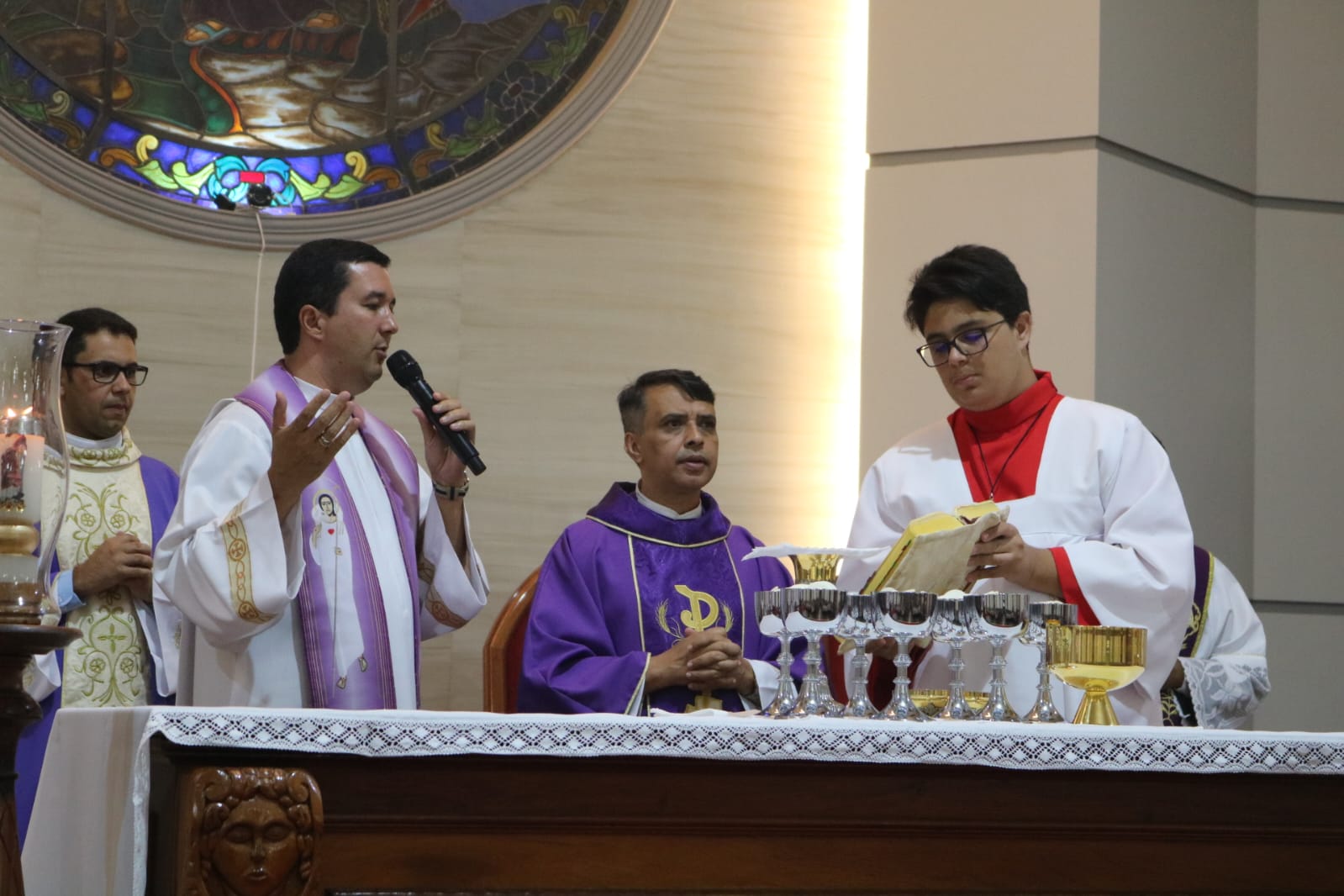 A missa foi presidida pelo Padre José Carlos, que procedeu fazendo a leitura de sua biografia, provisão e ata de posse ao Padre Michel.
