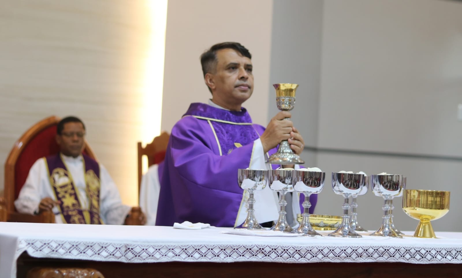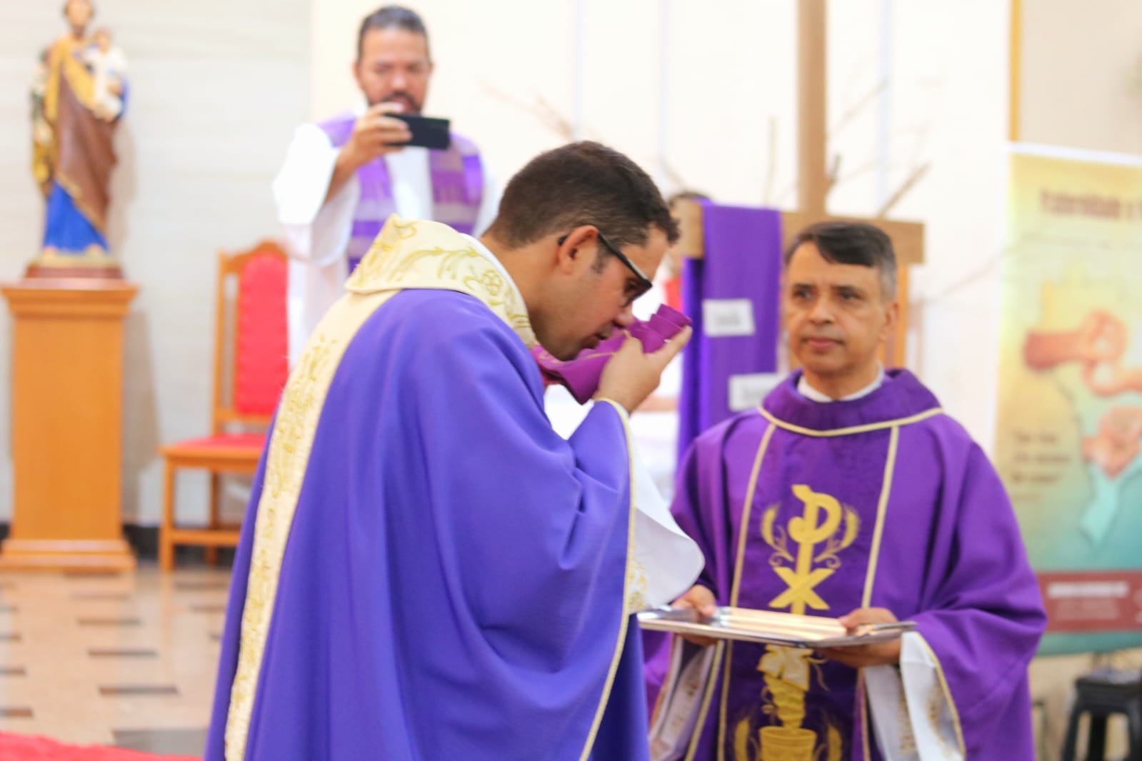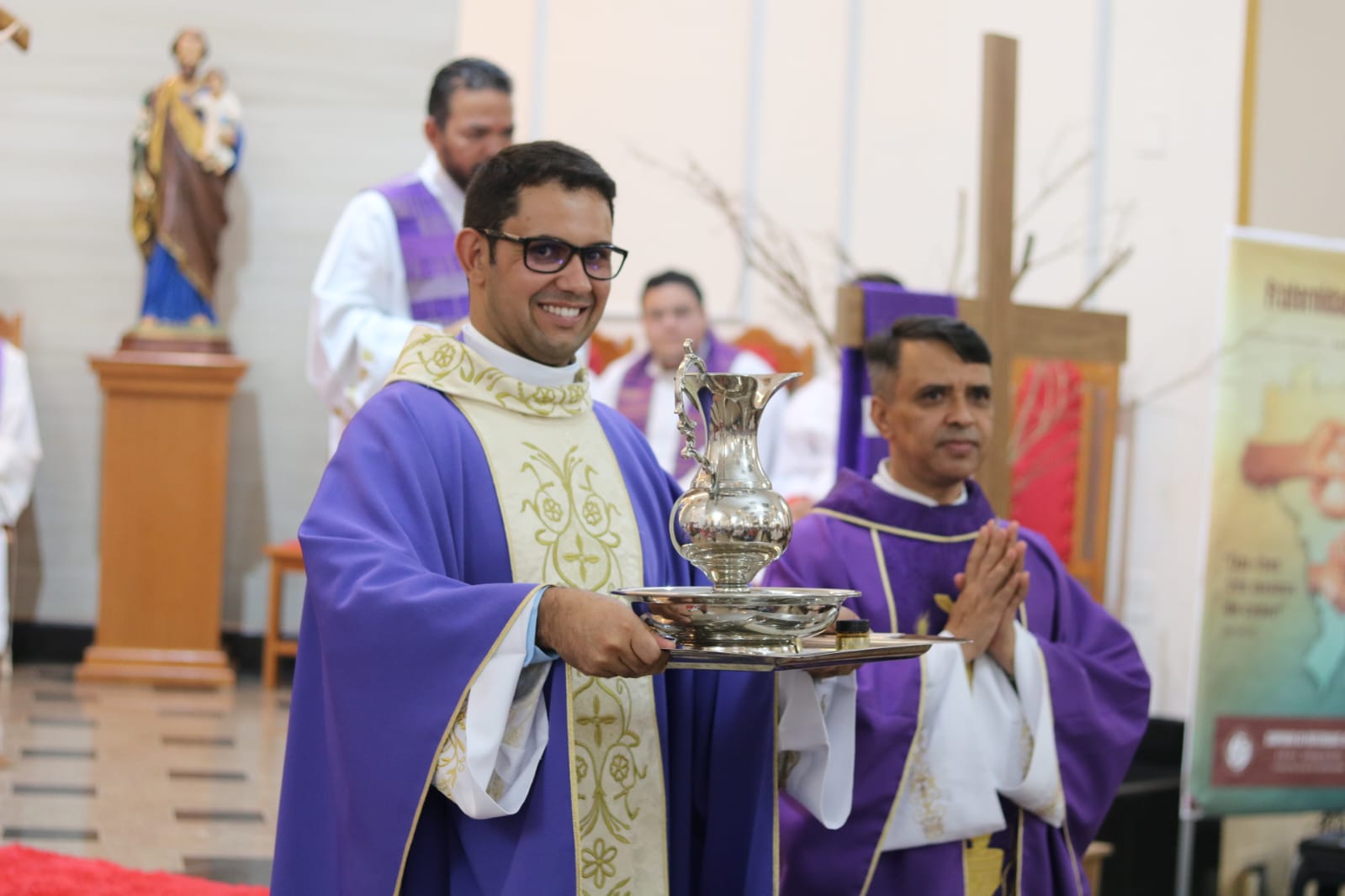 A missa foi presidida pelo Padre José Carlos, que procedeu fazendo a leitura de sua biografia, provisão e ata de posse ao Padre Michel.