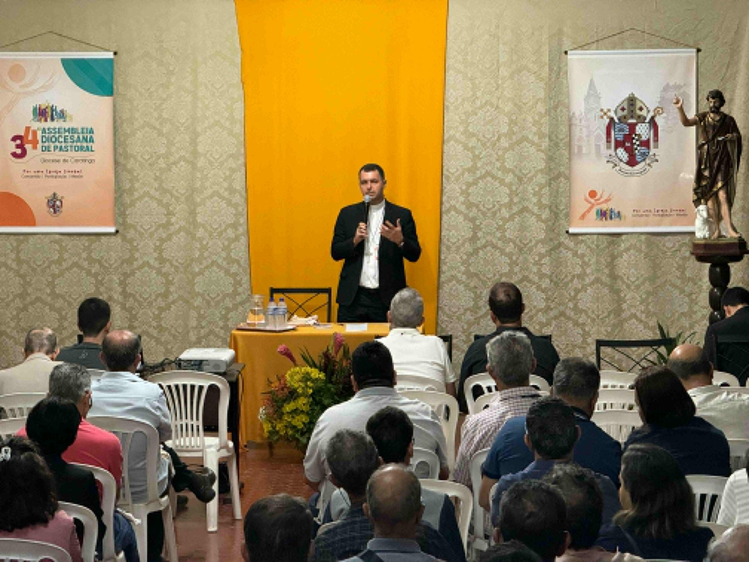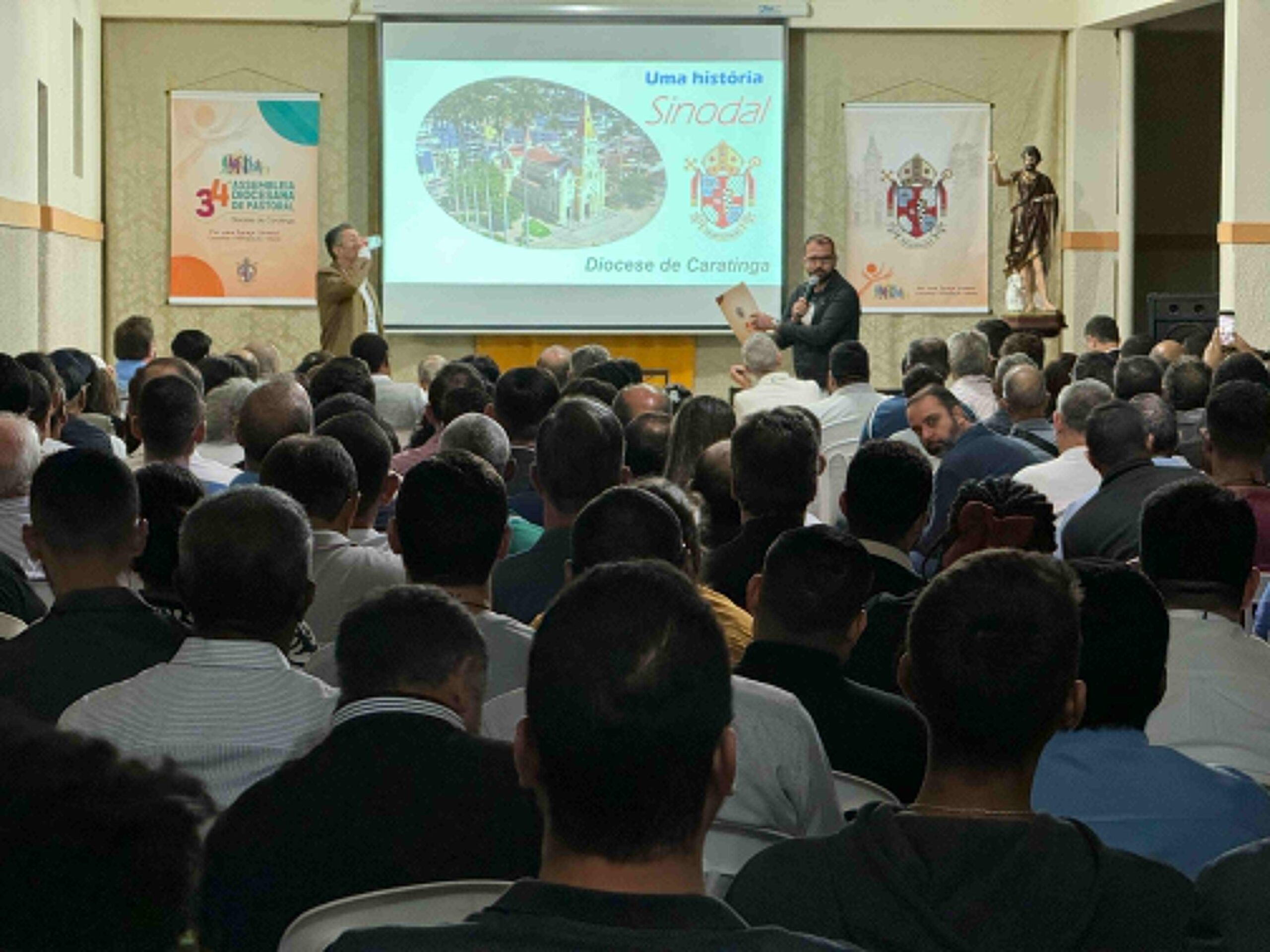 Com o tema “Por uma Igreja Sinodal: Comunhão, Participação e Missão”, iniciou-se na segunda-feira, 29 de julho, a 34° Assembleia Diocesano de Pastoral da Diocese de Caratinga. O evento é realizado no Seminário Diocesano de Nossa Senhora do Rosário, em Caratinga–MG, e conta com a presença dos bispos, Dom Juarez e Dom Emanuel, do clero diocesano e religioso, das irmãs das diversos institutos presentes na diocese, seminaristas de todas as etapas e demais representantes dos movimentos e paróquias de nossa Igreja Particular. Dentro da programação do primeiro dia, as atividades foram iniciadas com a celebração da Santa Missa, presidida por Dom Juarez Delorto Secco. Em sua homilia, o bispo diocesano demonstrou a sua alegria pelo momento especial para a diocese, valorizou a presença de todos e à luz da liturgia, ressaltou o testemunho de fé necessário para a íntima relação com Deus.