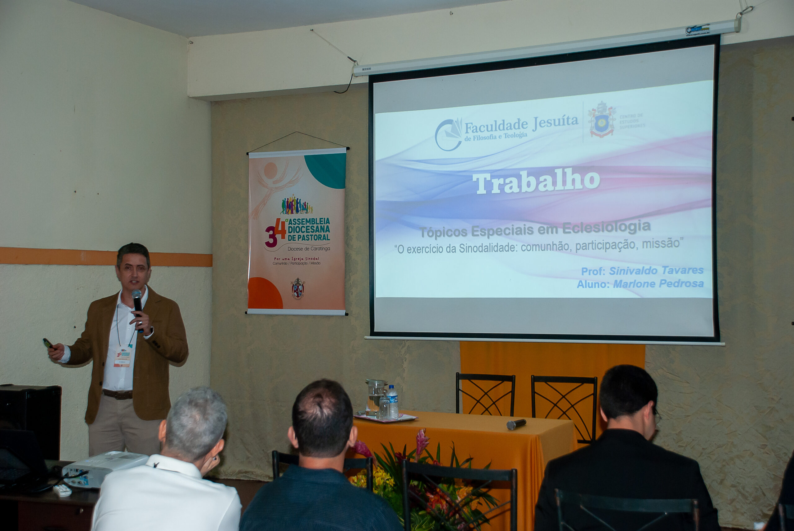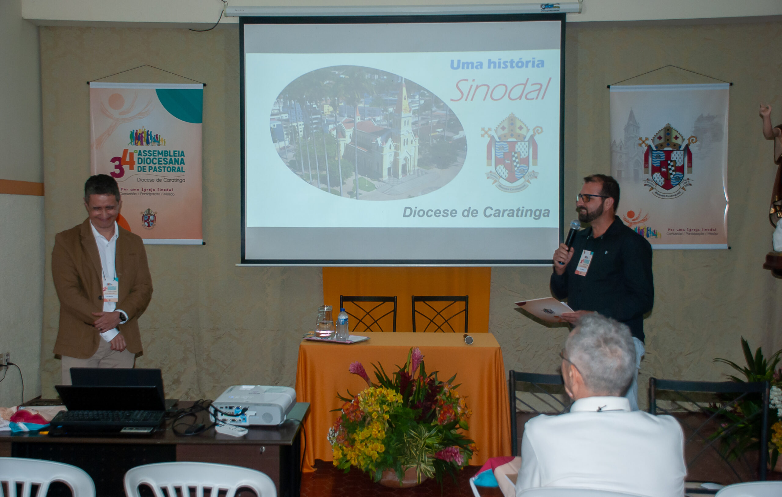 Em seguida, Pe. Marlone Pedrosa (Mestre em Teologia Pastoral pela FAJE e Vigário do Santuário Senhor Bom Jesus em Caratinga) fez uma bela apresentação histórica da Diocese. Dentre o conteúdo: em 1912 já se cogitava a criação de uma Igreja Particular. Dentre as opções, Carangola, Caratinga e Manhuaçu. Criada em 1915, o primeiro bispo, Dom Carloto, só chegou em 1920. Num Resumo Geral dos Planos Diocesanos:
