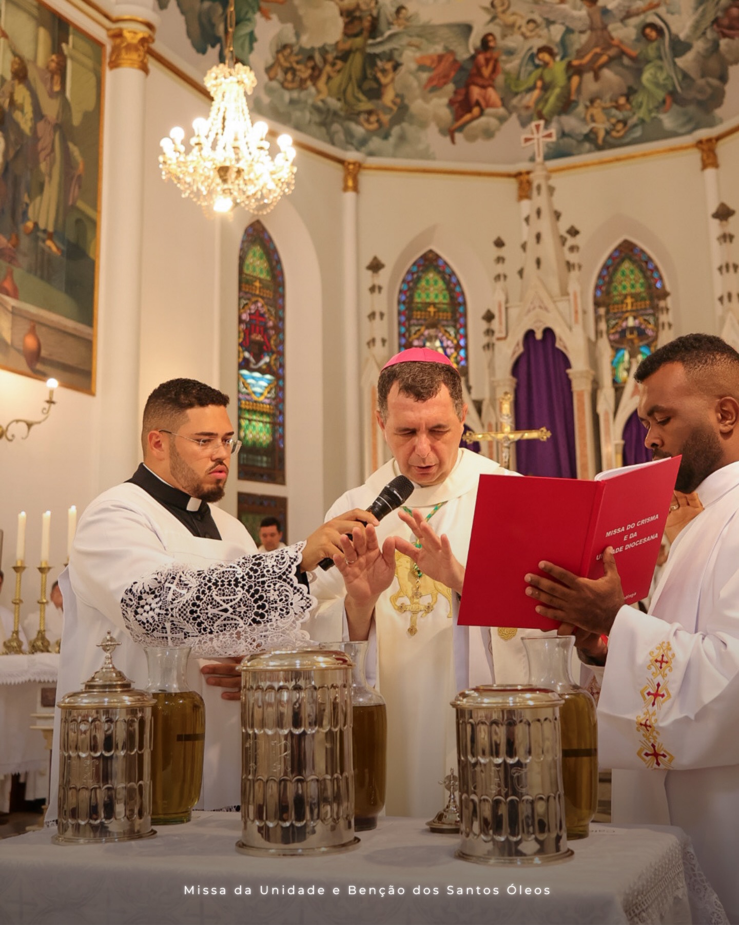 Na manhã do dia 2 de abril de 2026, às 10h, a Catedral de São João Batista, em Caratinga, reuniu o clero e os fiéis da Diocese para a celebração da Missa da Unidade Diocesana, também conhecida como Missa do Crisma. A celebração integra a programação da Quinta-feira Santa, quando a Igreja Católica recorda dois momentos centrais da vida de Jesus Cristo: a instituição da Eucaristia e do sacerdócio. A celebração foi presidida pelo bispo diocesano, Dom Juarez Delorto Secco, e contou também com a presença do bispo emérito Dom Emanuel Messias de Oliveira e de Monsenhor Raul Motta de Oliveira.