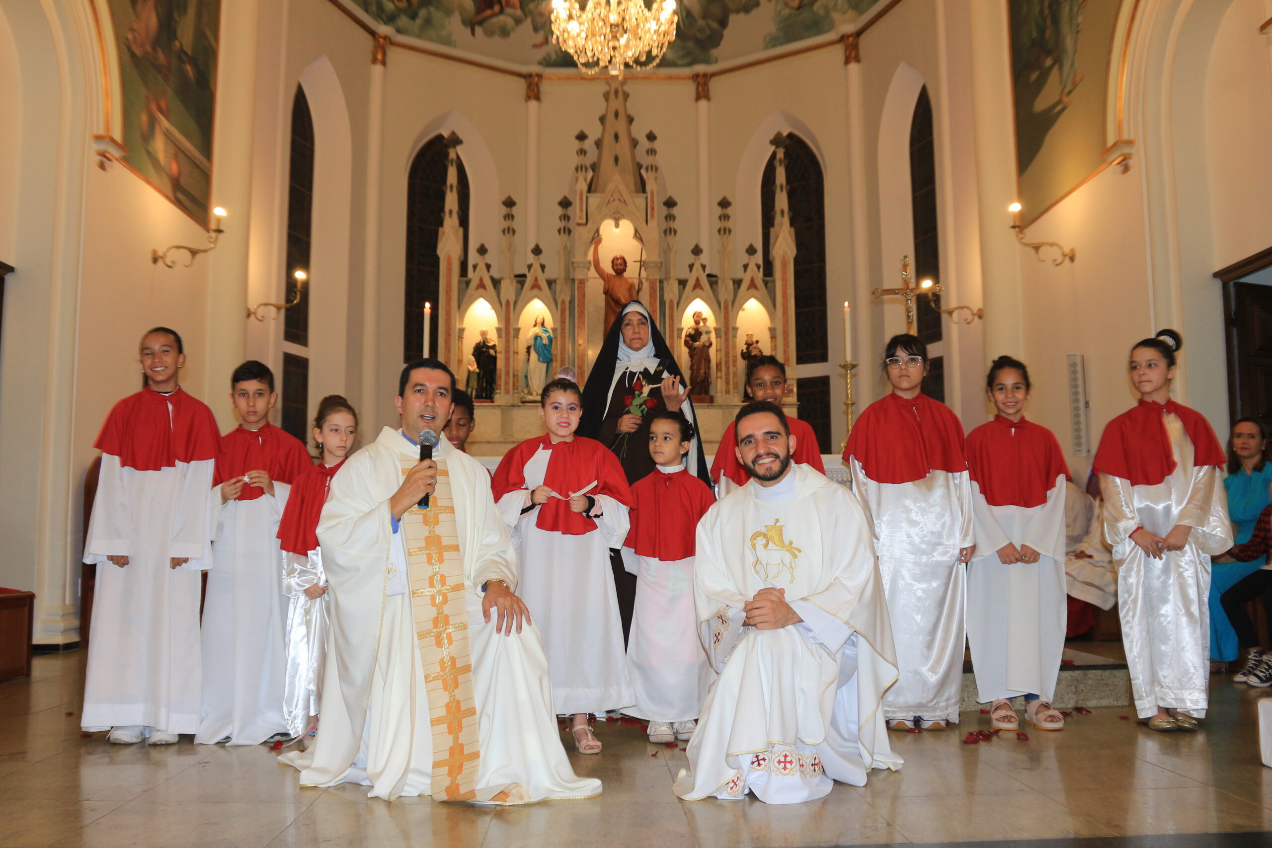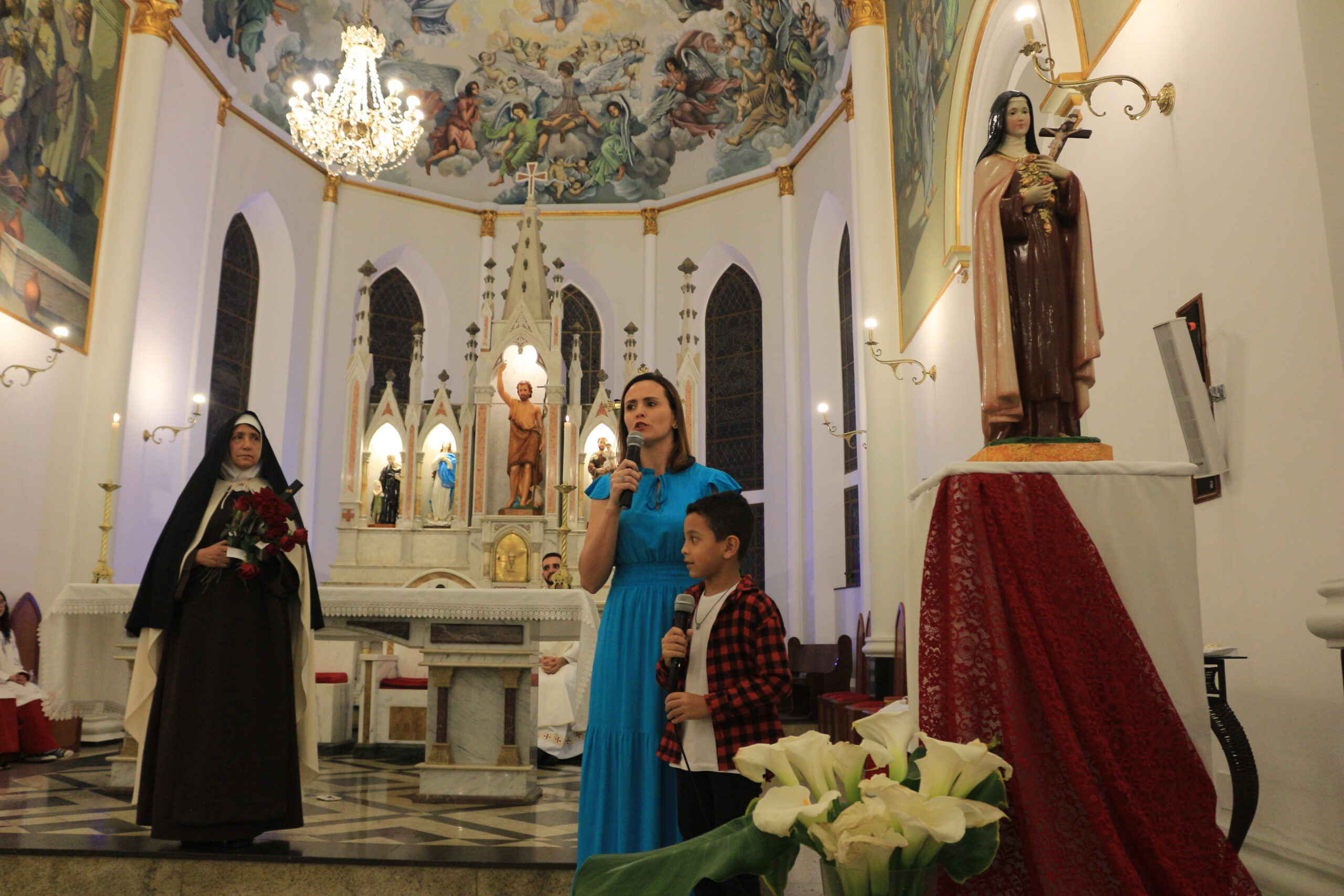 Durante a celebração eucarística que foi presidida pelo pároco Pe. Moacir Ramos Nogueira e concelebrada por Pe. Higor Luiz Arantes Nepomuceno , a paróquia celebrou também a bênção das rosas de Santa Teresinha do Menino Jesus, a abertura do mês das santas missões, e os 15 anos da Flávia…