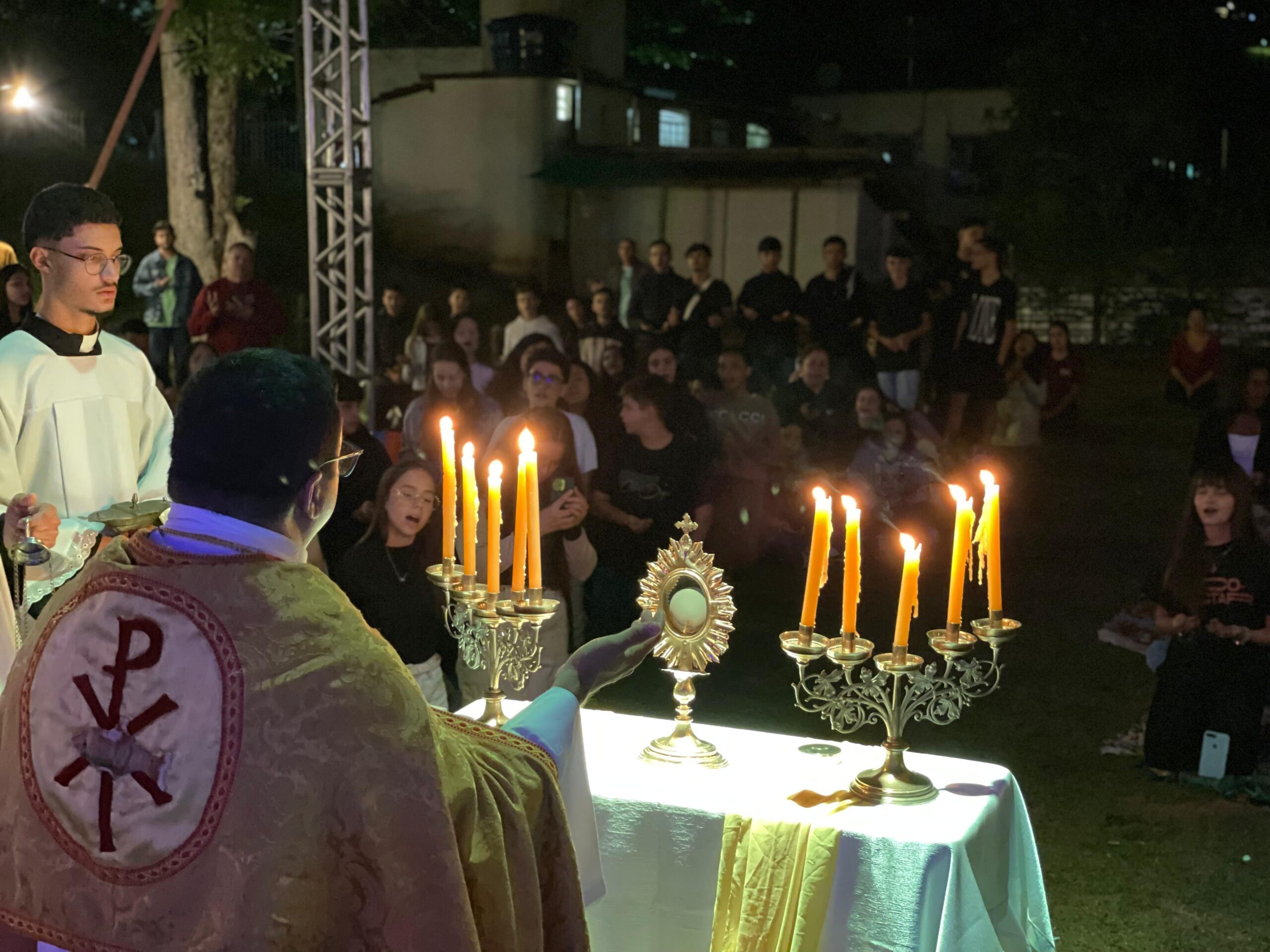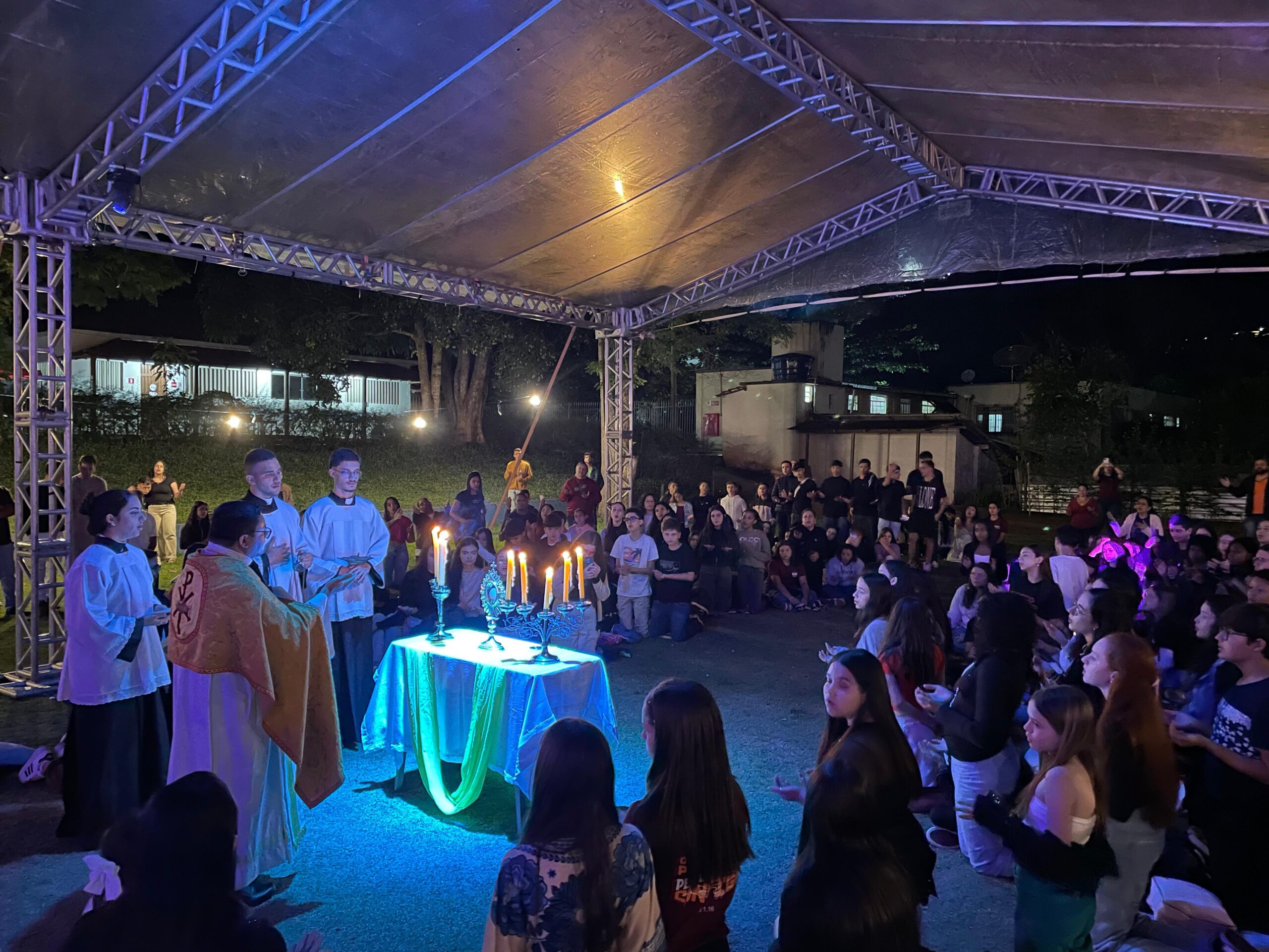 Na noite do Luau, tivemos muita música, reflexão e com um destaque especial o momento de adoração a Jesus na Sagrada Eucaristia, conduzido pelo Padre Carlos André, SDN. Rezamos por todos os jovens alí presentes, e por tantos outros que vivem as mais diversas realidades pelo mundo afora, colocando cada um no coração de Jesus, pedindo a Ele que cuide com carinho iluminando a direção para ser caminhada.