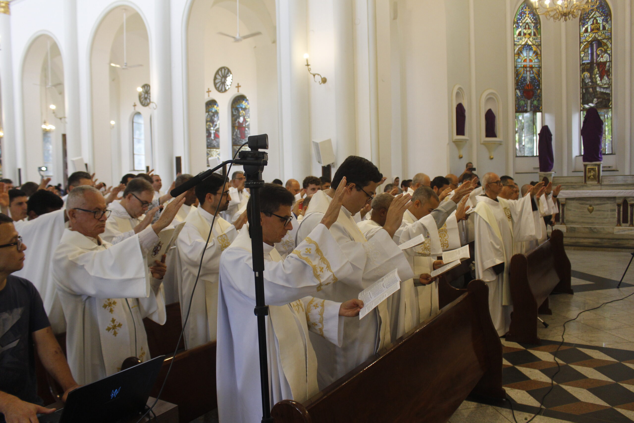 A celebração aconteceu na manhã da última quinta-feira, dia 28, na Catedral de São João Batista e contou com a benção dos óleos dos enfermos e dos catecúmenos, e com a consagração do óleo do Crisma. A renovação das promessas sacerdotais dos padres figurou como um momento importante da Missa.