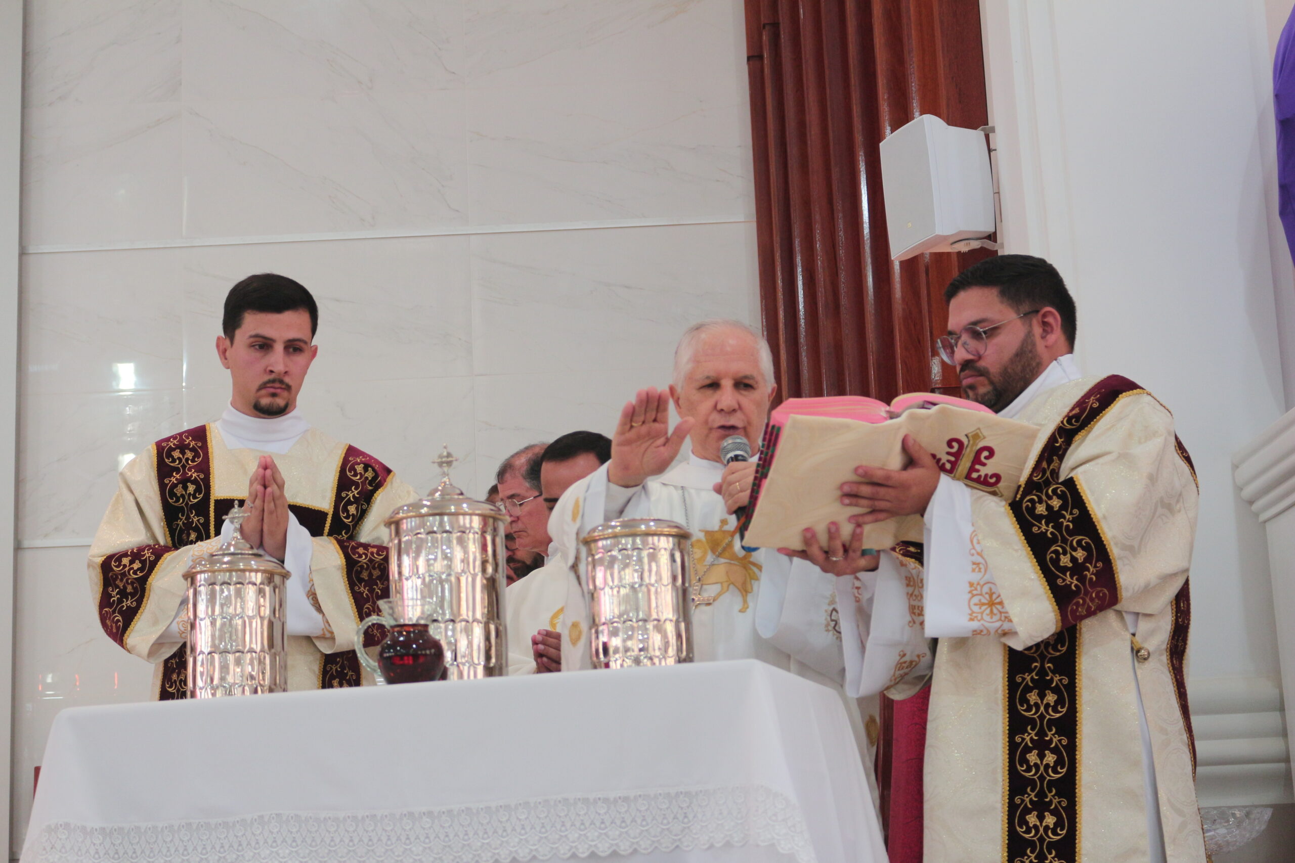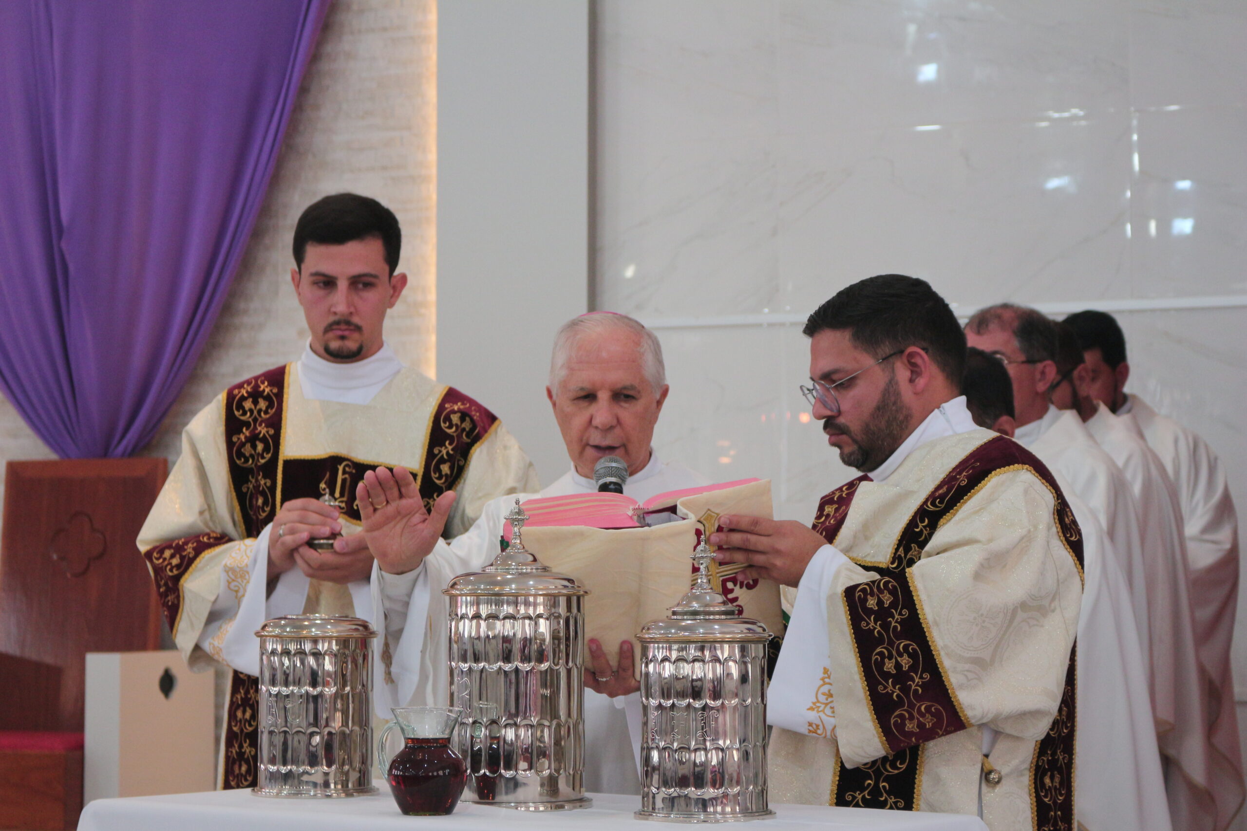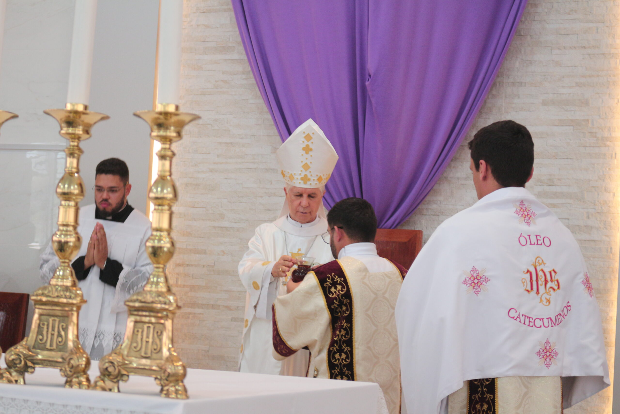 Dom Emanuel, em sua homilia, destacou a função dos 3 óleos: ”com o óleo do Crisma, somos configurados perfeitamente como ungidos do Senhor, pertencentes a comunidade cristã, membros da Igreja de Deus; o óleo dos Catecúmenos nos recorda os antigos atletas gregos que se ungiam para que os oponentes não os agarrassem, e assim pra nós também tem esse significado, para que o pecado não nos agarre; o óleo dos enfermos vem para assistir-nos nos momentos de difíceis de saúde trazendo a todos nós a cura espiritual e moral.”