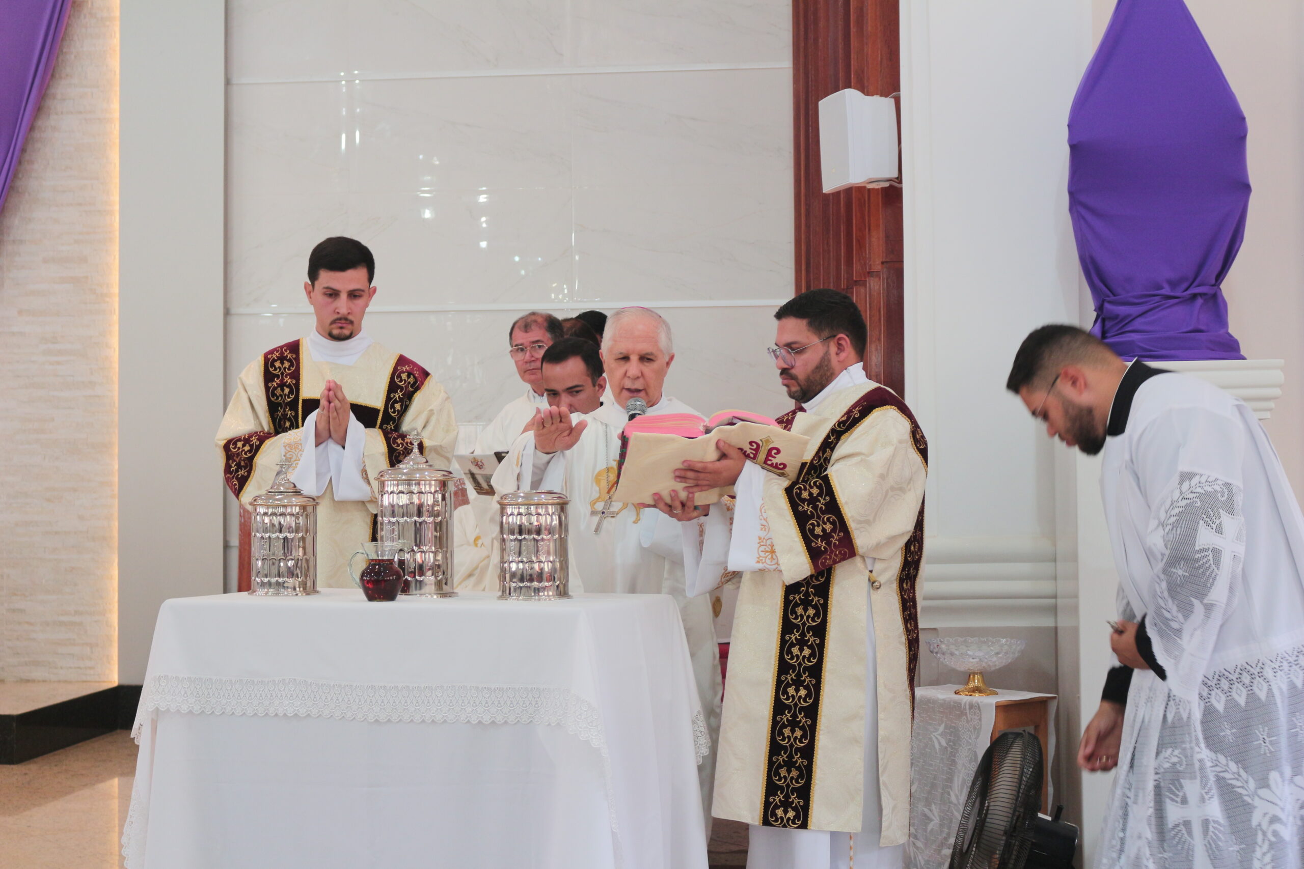 A missa, celebrada pelo Bispo Diocesano Dom Emanuel Messias de Oliveira, foi concelebrada por Dom Odilon Guimarães, bispo emérito de Itabira/Cel. Fabriciano e por todo o clero secular e religioso desta Igreja Particular, bem como assistida pelos diáconos transitórios e permanente.