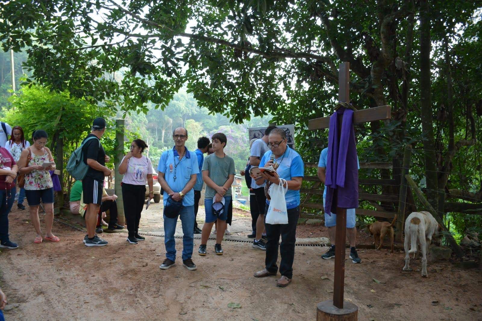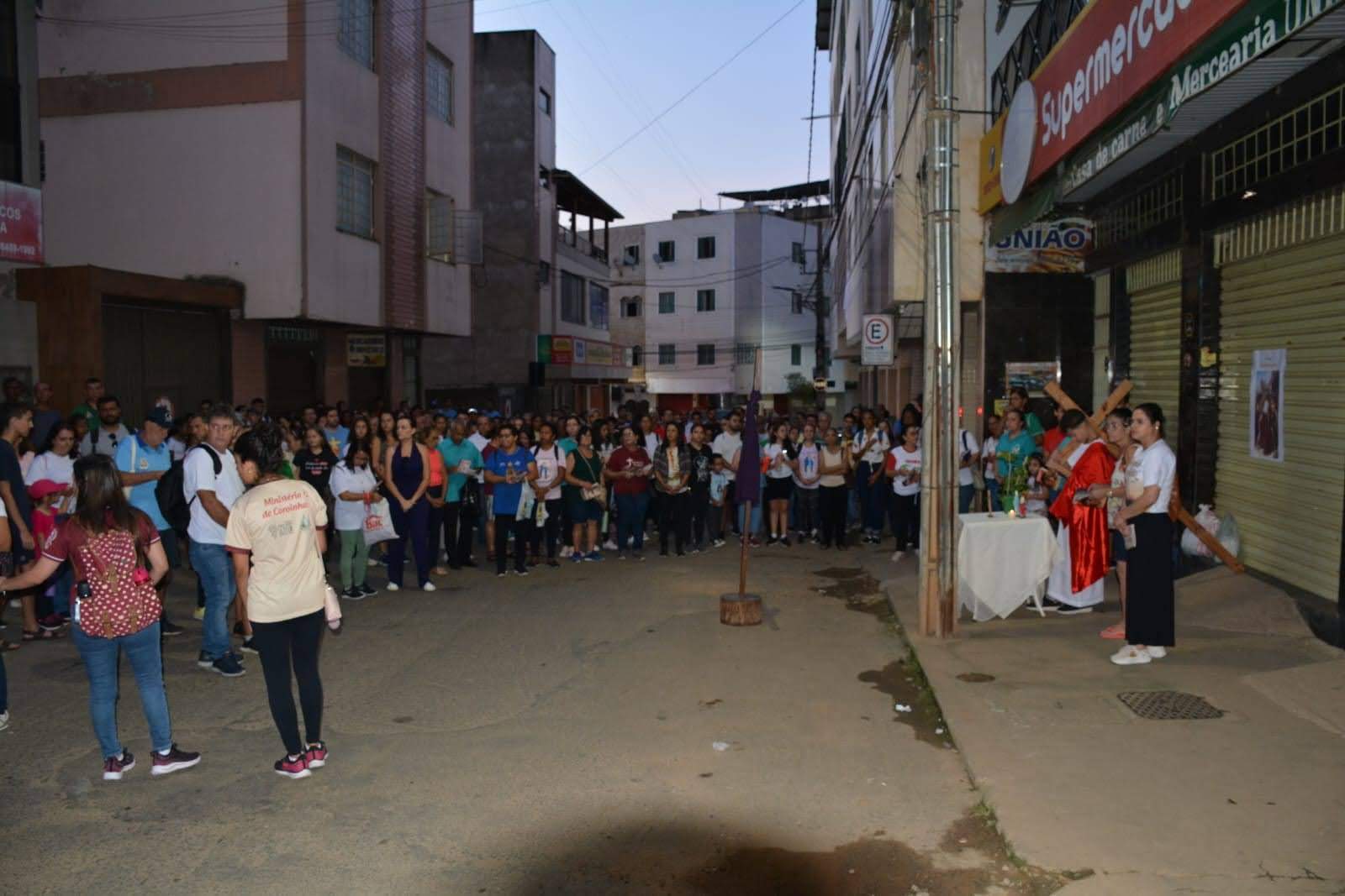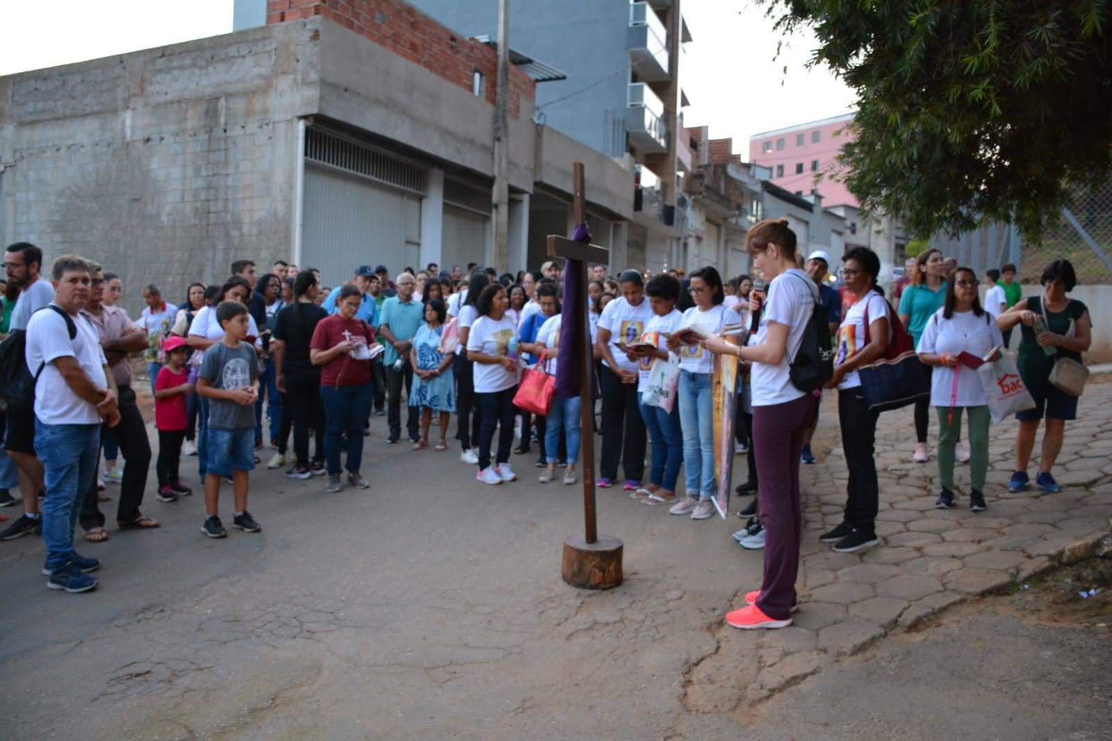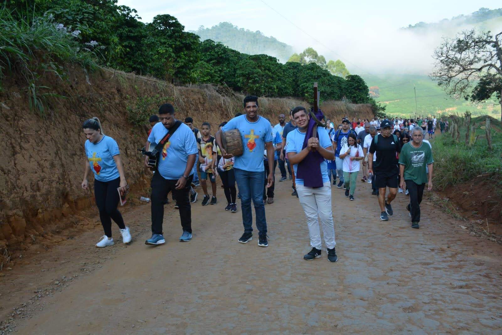 Em seguida, saíram em caminhada marcada pela via-sacra até a fazenda do Flávio Pena e da Marislene, na região do Coqueiro Rural.