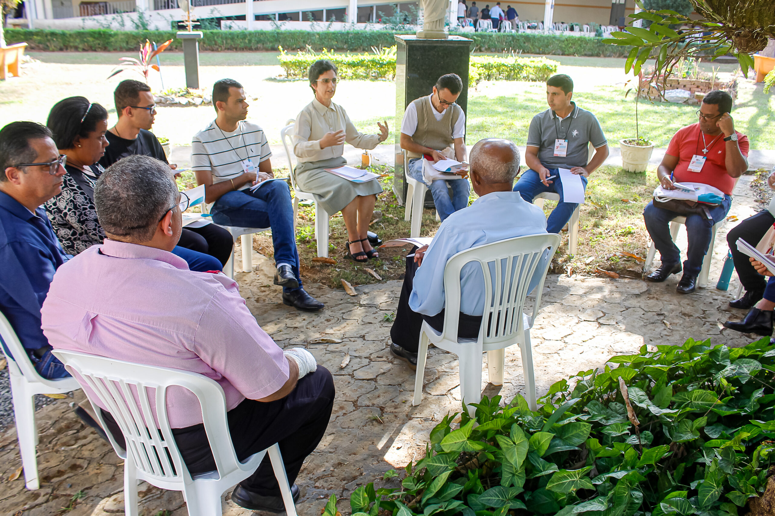 Depois das três exposições introdutórias, os participantes da assembleia, reunidos em quatorze grupos diversificados, realizaram um momento de conversação no Espírito, procurando perceber para onde o Espírito Santo está conduzindo nossos passos.
