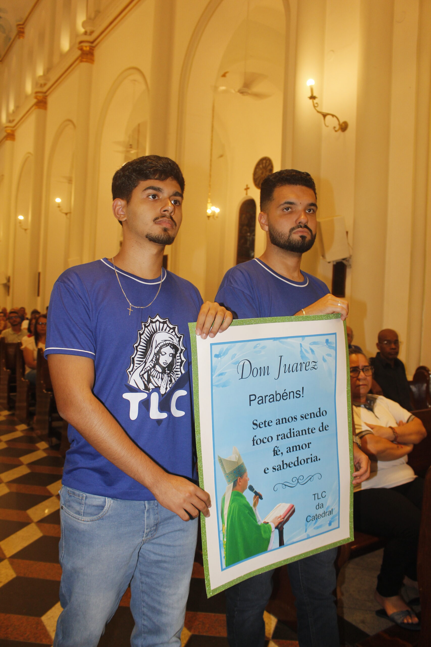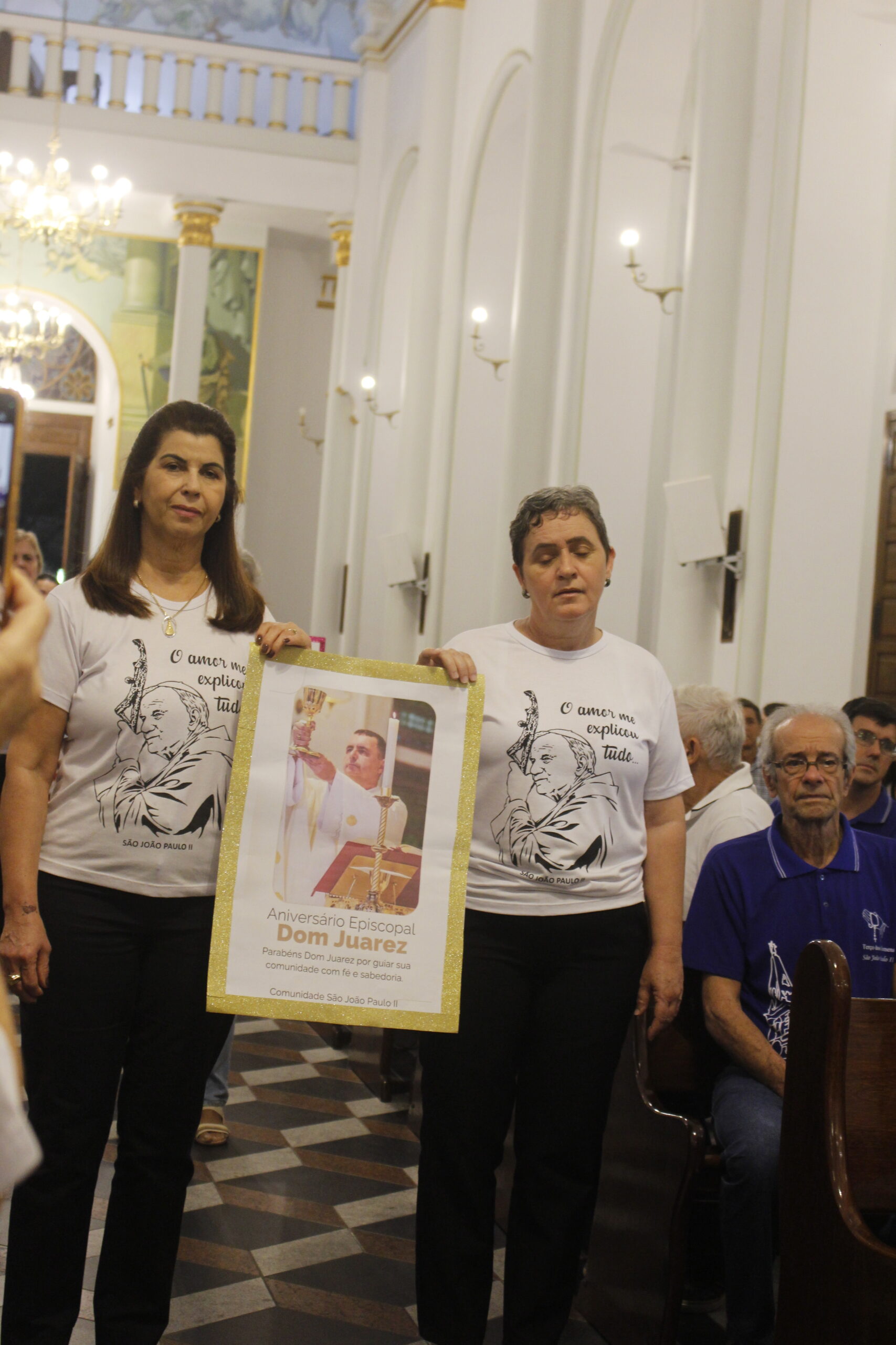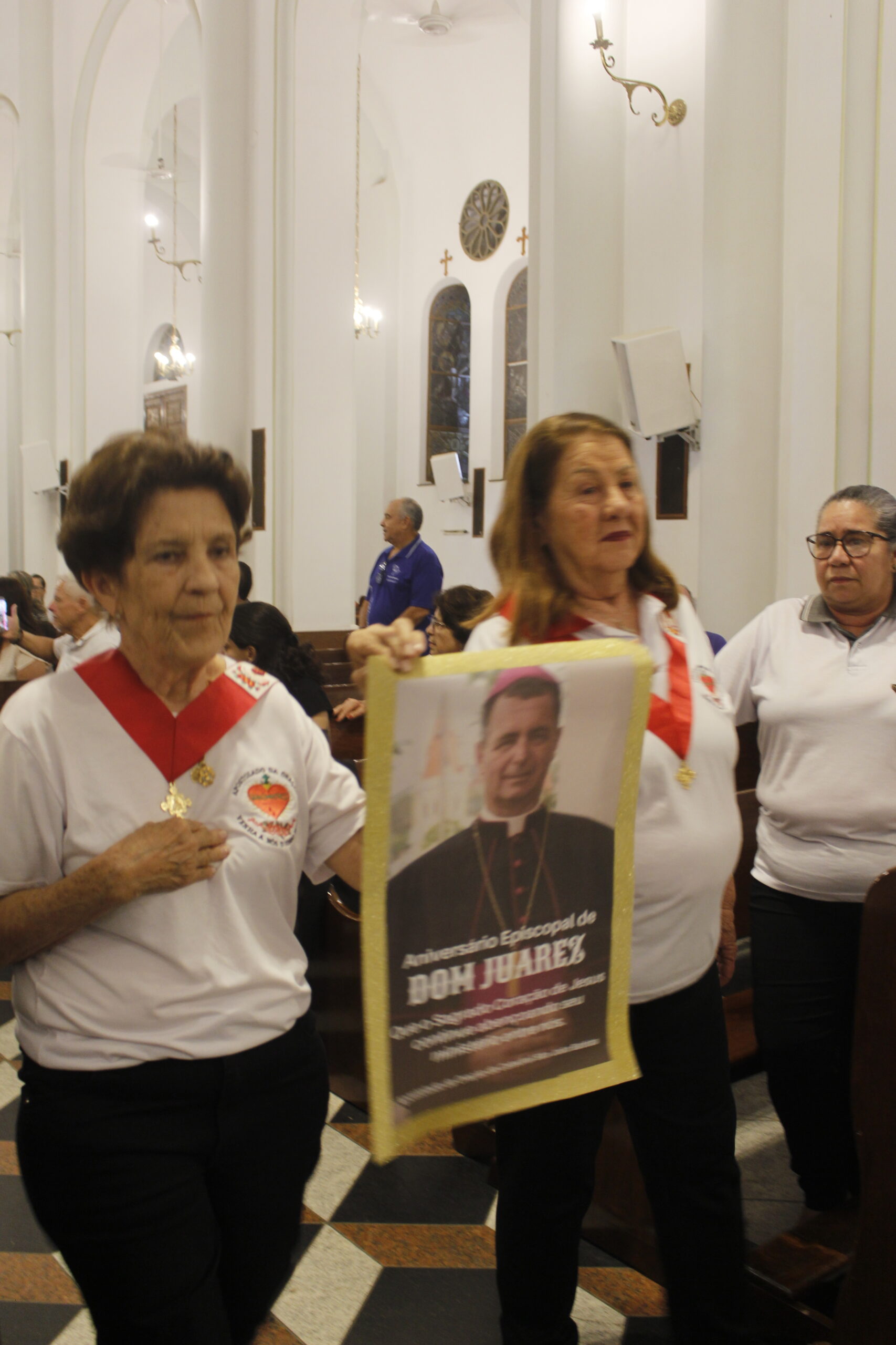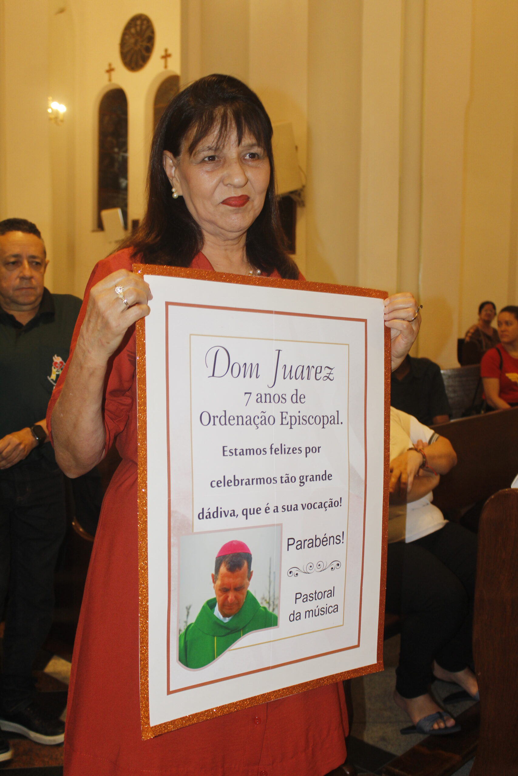A celebração aconteceu na Catedral São João Batista, às 19h, e contou com a presença do bispo emérito Dom Emanuel Messias, Padre Moacir Ramos e Padre Leandro Alcides que concelebraram com Dom Juarez esta data tão marcante. Marcaram presença ainda todas as pastorais da Paróquia São João Batista – Catedral, que prestaram suas homenagens ao bispo.