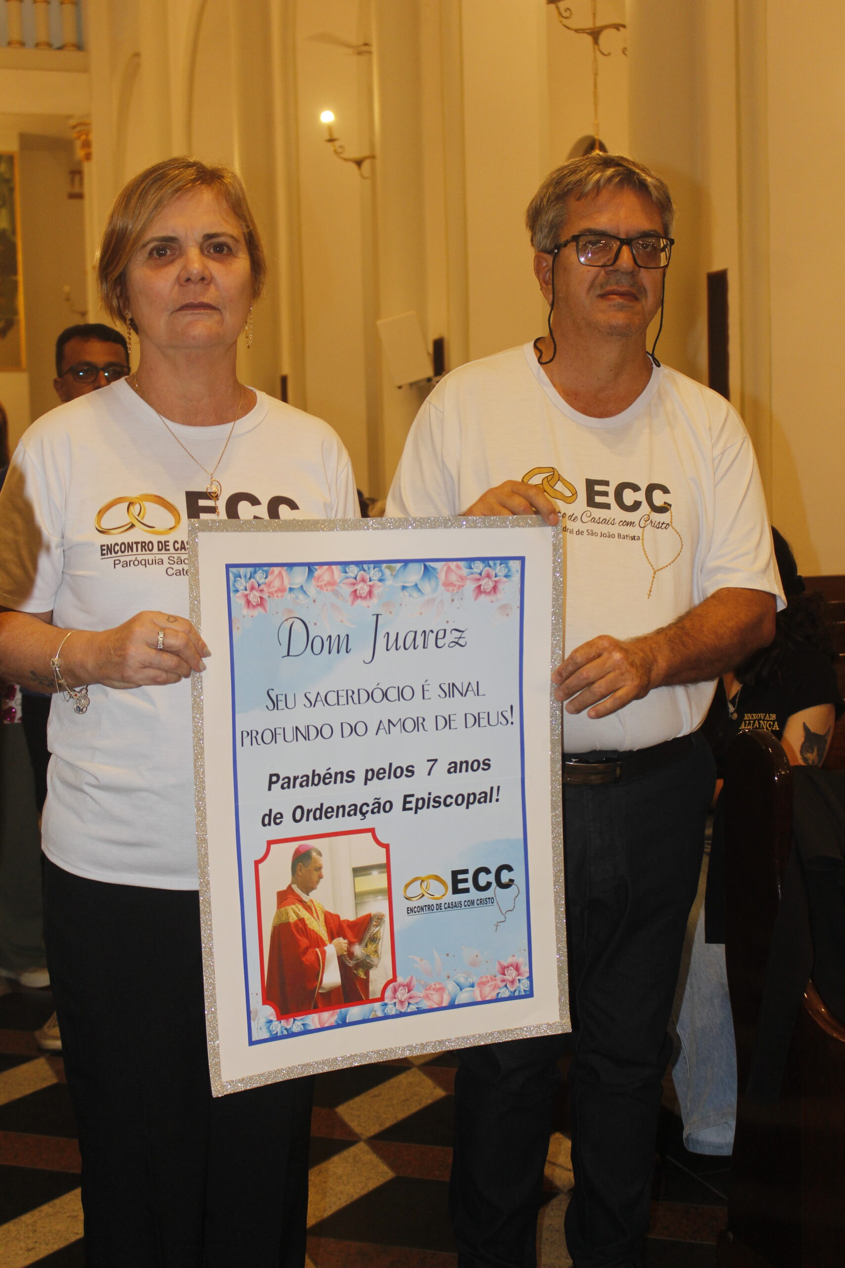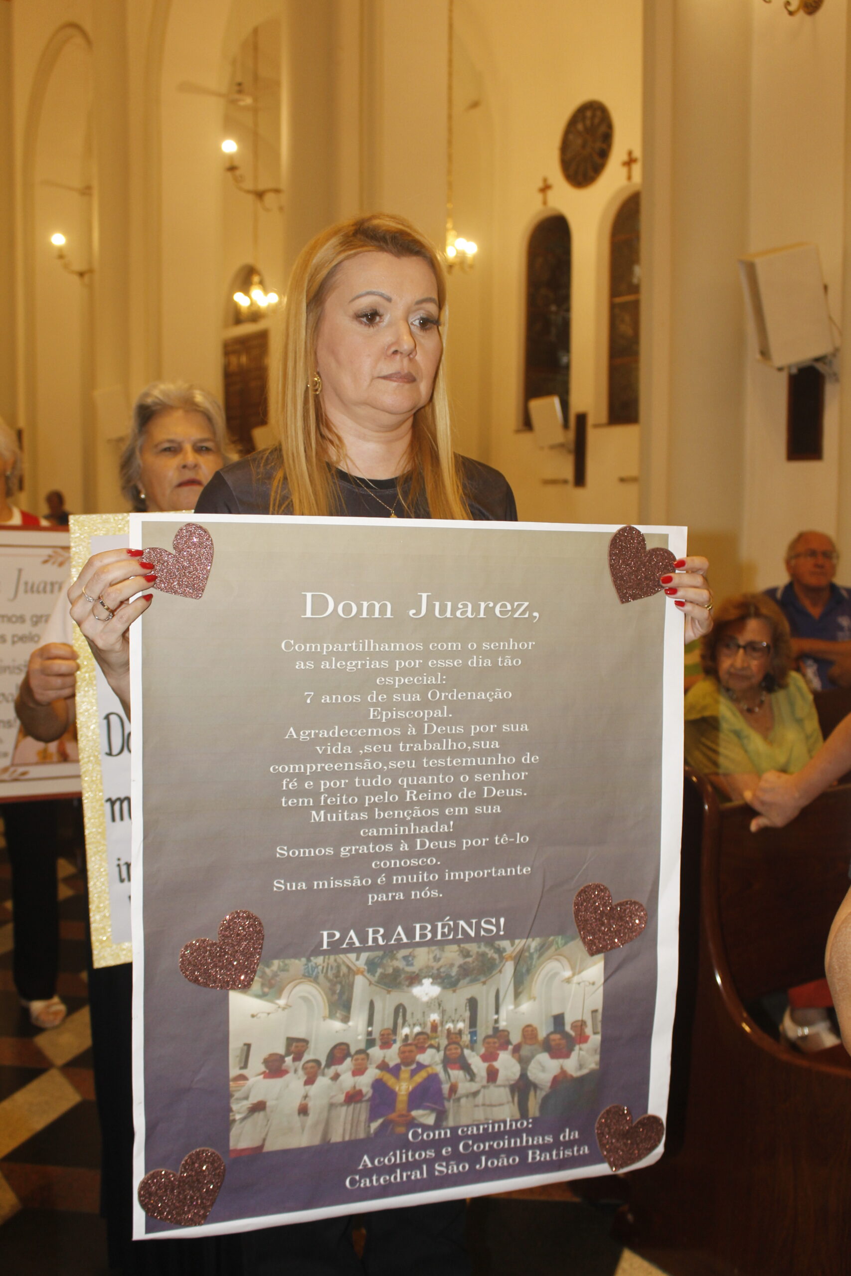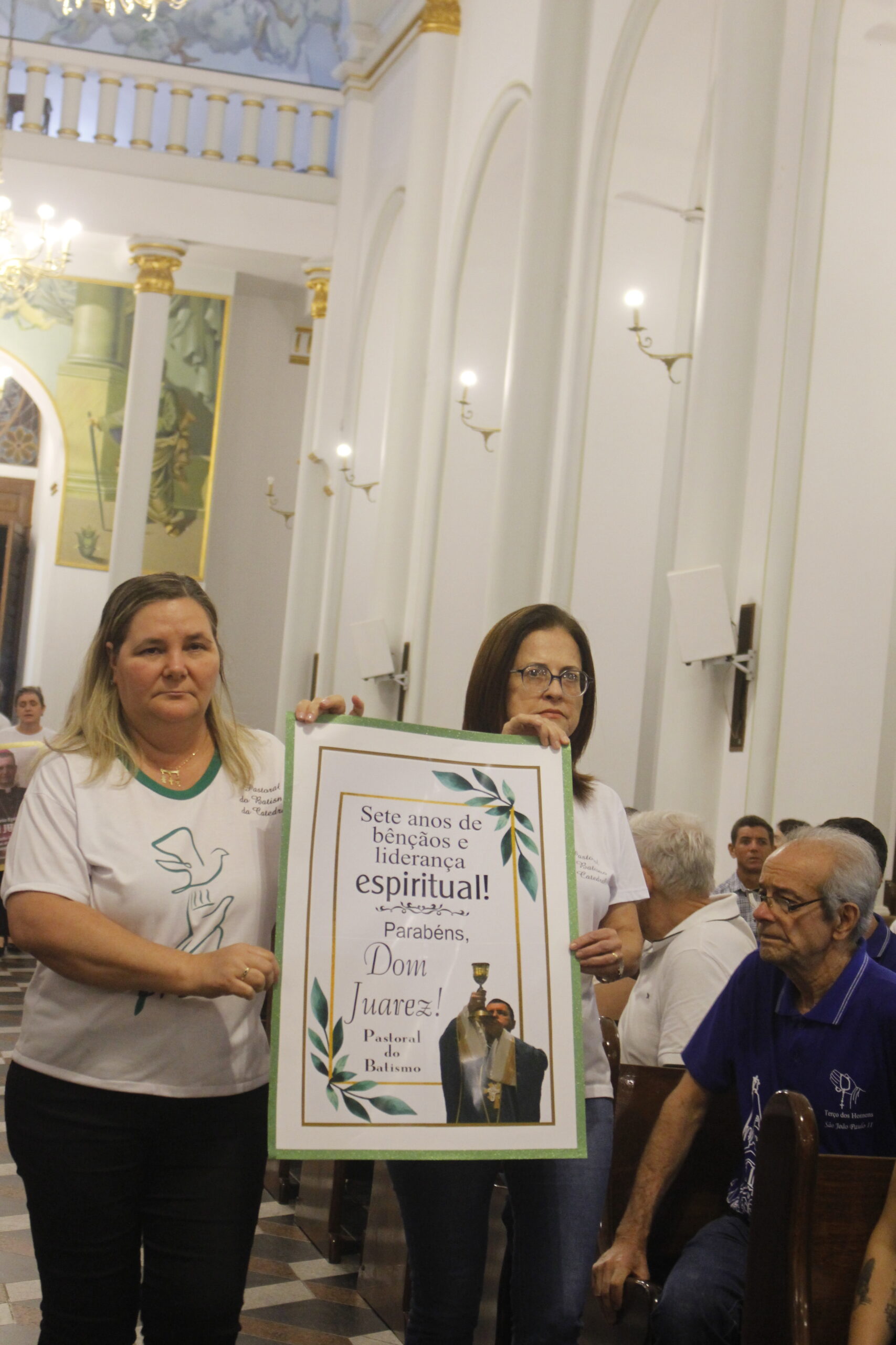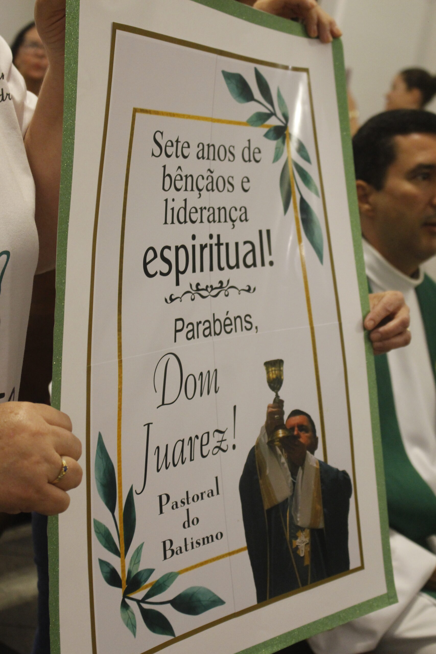 A celebração aconteceu na Catedral São João Batista, às 19h, e contou com a presença do bispo emérito Dom Emanuel Messias, Padre Moacir Ramos e Padre Leandro Alcides que concelebraram com Dom Juarez esta data tão marcante. Marcaram presença ainda todas as pastorais da Paróquia São João Batista – Catedral, que prestaram suas homenagens ao bispo.