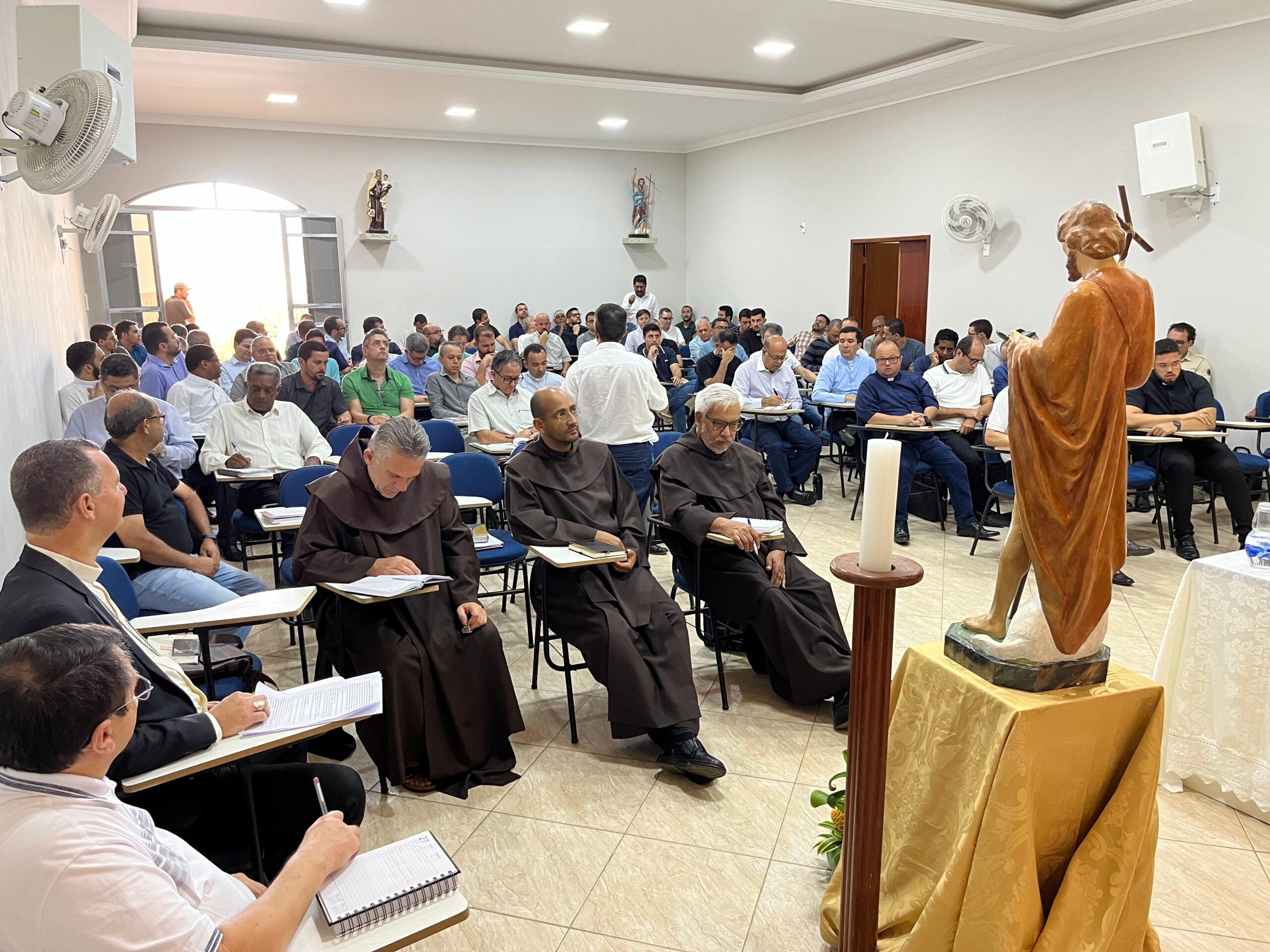 Na quarta-feira, 24 de abril, Dom Juarez Delorto Secco, bispo diocesano, realizou a primeira reunião de 2024 com o clero, na Paróquia São João Batista, em São João do Manhuaçu–MG. A reunião contou com a presença expressiva de padres diocesanos, bem como a presença dos religiosos que colaboram em nossa diocese, os Missionários de Nossa Senhora, Sacramentinos da Congregação do Santíssimo Sacramento e a Ordem dos Carmelitas Descalços.