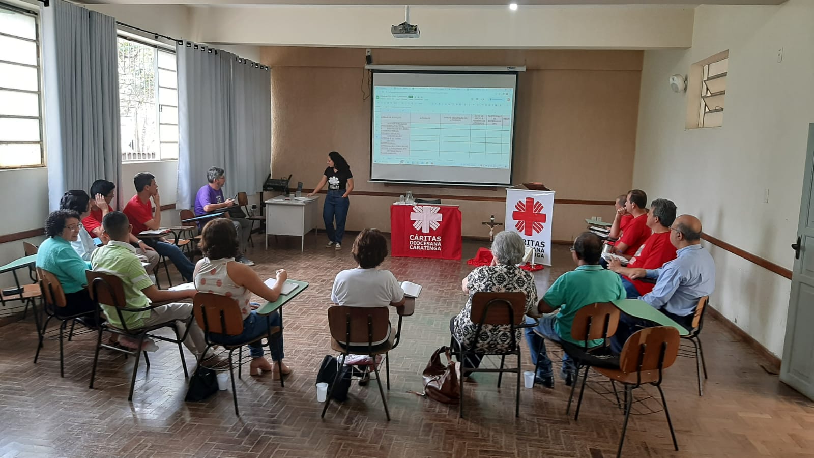 Este encontro foi fundamental para estabelecer diretrizes e definir metas que guiarão as atividades da Cáritas diocesana. Com a orientação e assessoria de Anna Crystina, integrante da coordenação colegiada, e Rodrigo, que faz parte da equipe de monitoramento da Cáritas Regional Minas Gerais, tivemos a oportunidade de revisar nossas ações, identificar desafios e oportunidades, e alinhar nossos esforços para melhor atender às necessidades da comunidade.