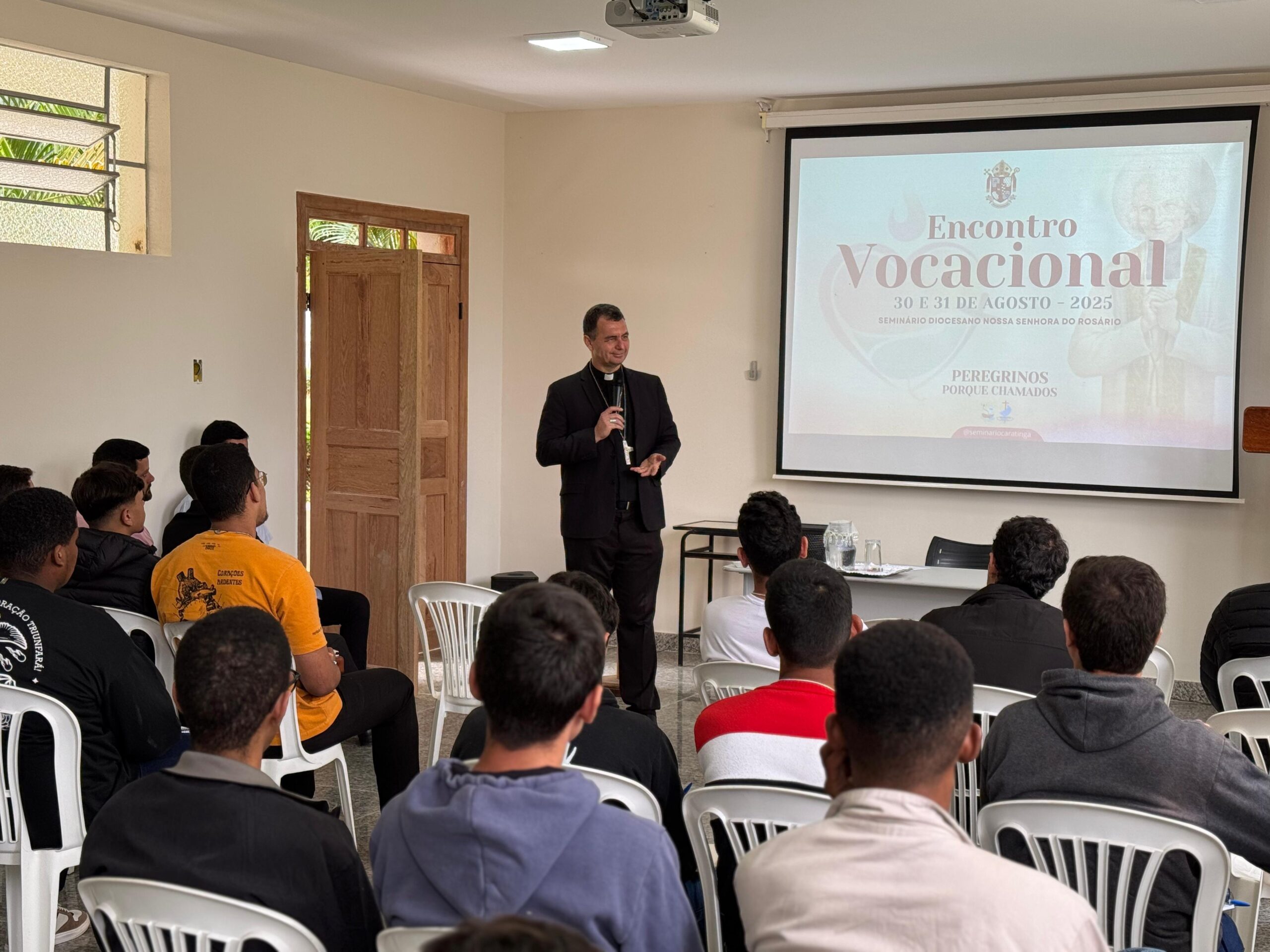 Nos dias 30 e 31 de agosto de 2025, o Seminário Diocesano de Nossa Senhora do Rosário acolheu jovens vindos de diversas paróquias da Diocese para participarem de um Encontro Vocacional. Com o tema “Vocação – Sinal de Esperança”, o evento foi especialmente voltado a rapazes que estão concluindo ou já concluíram o Ensino Médio.