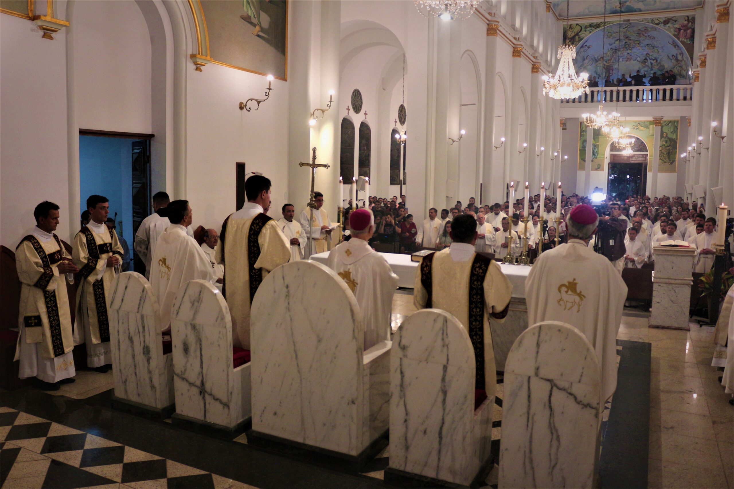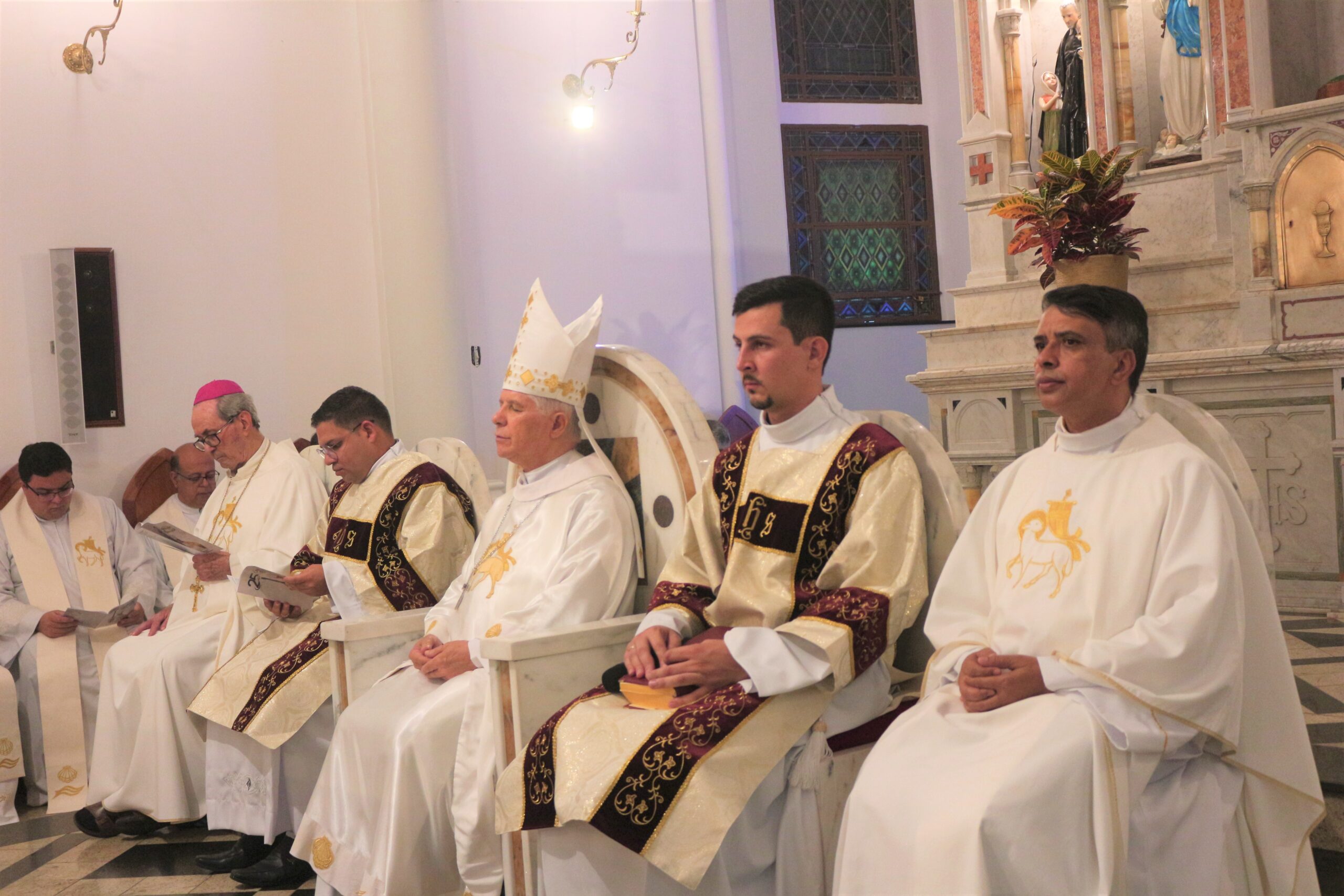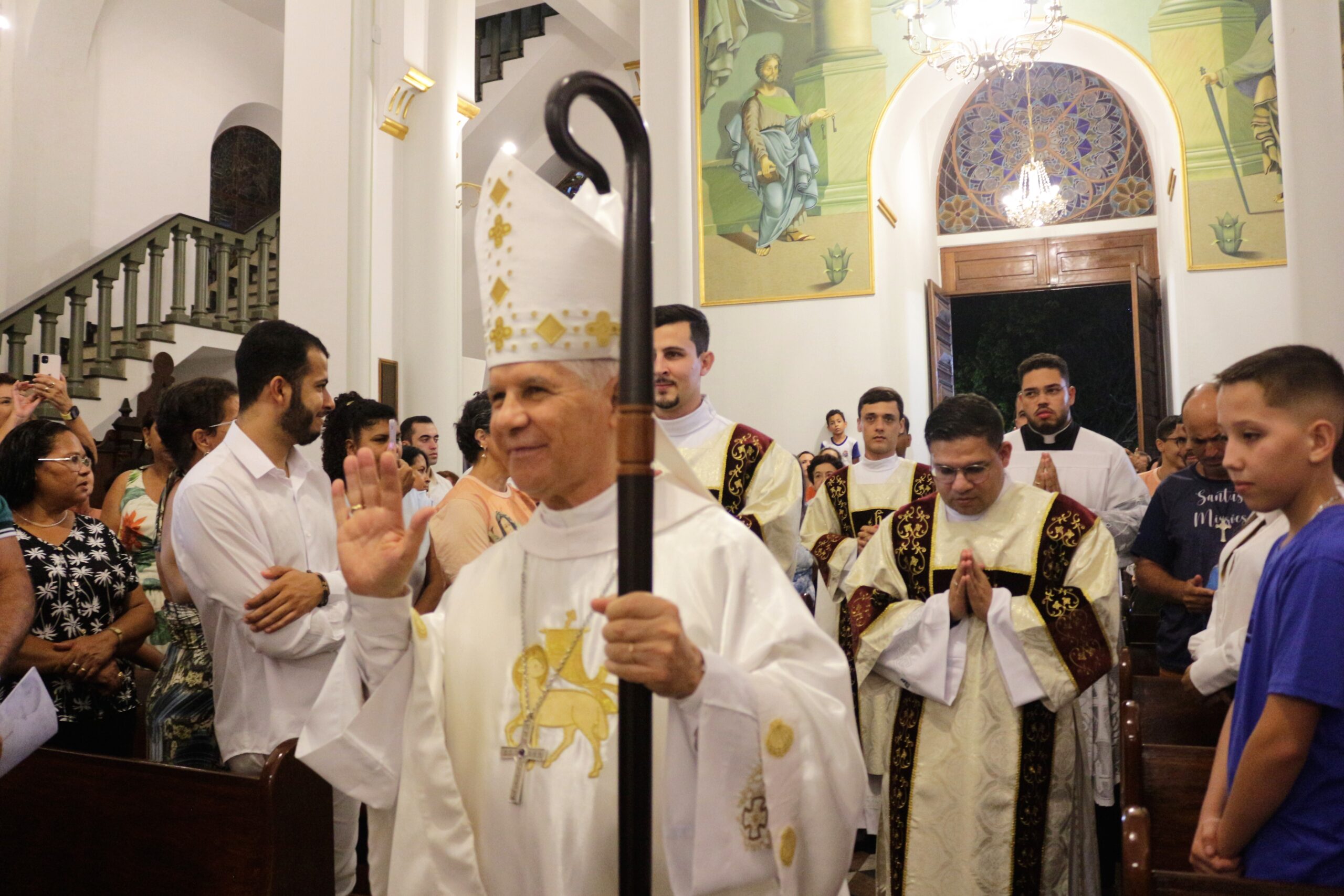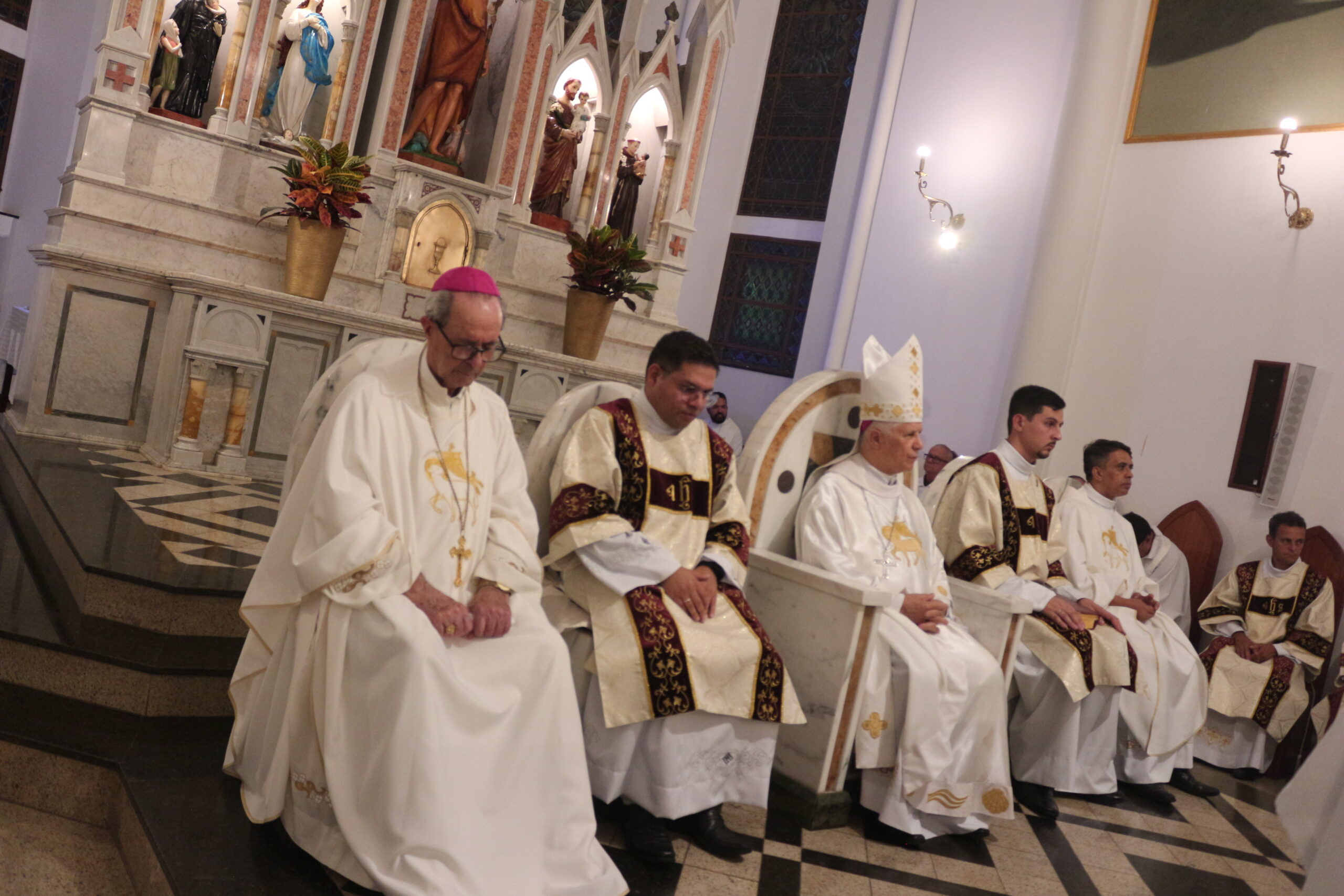 O Jubileu de Prata Episcopal de Dom Emanuel Messias de Oliveira, bispo diocesano de Caratinga, foi celebrado em grande estilo na noite da última quarta-feira, 19 de abril. A celebração aconteceu na Catedral São João Batista em Caratinga e reuniu um número expressivo de padres, diáconos, religiosos e religiosas, seminaristas e diversos fiéis, vindos das várias paróquias da Diocese. O próprio bispo presidiu a Celebração Eucarística, que contou ainda com a presença especial e carinhosa do bispo emérito da Diocese de Itabira/Cel.Fabriciano, Dom Odilon Guimarães Moreira, filho do nosso clero.
