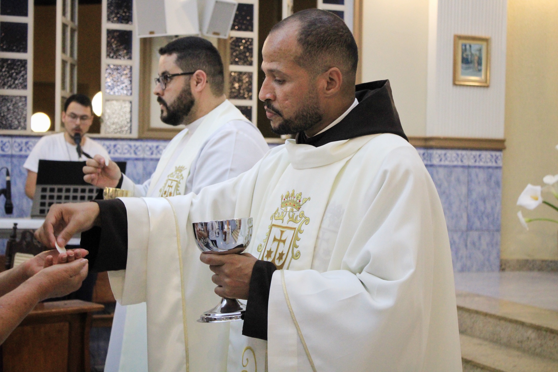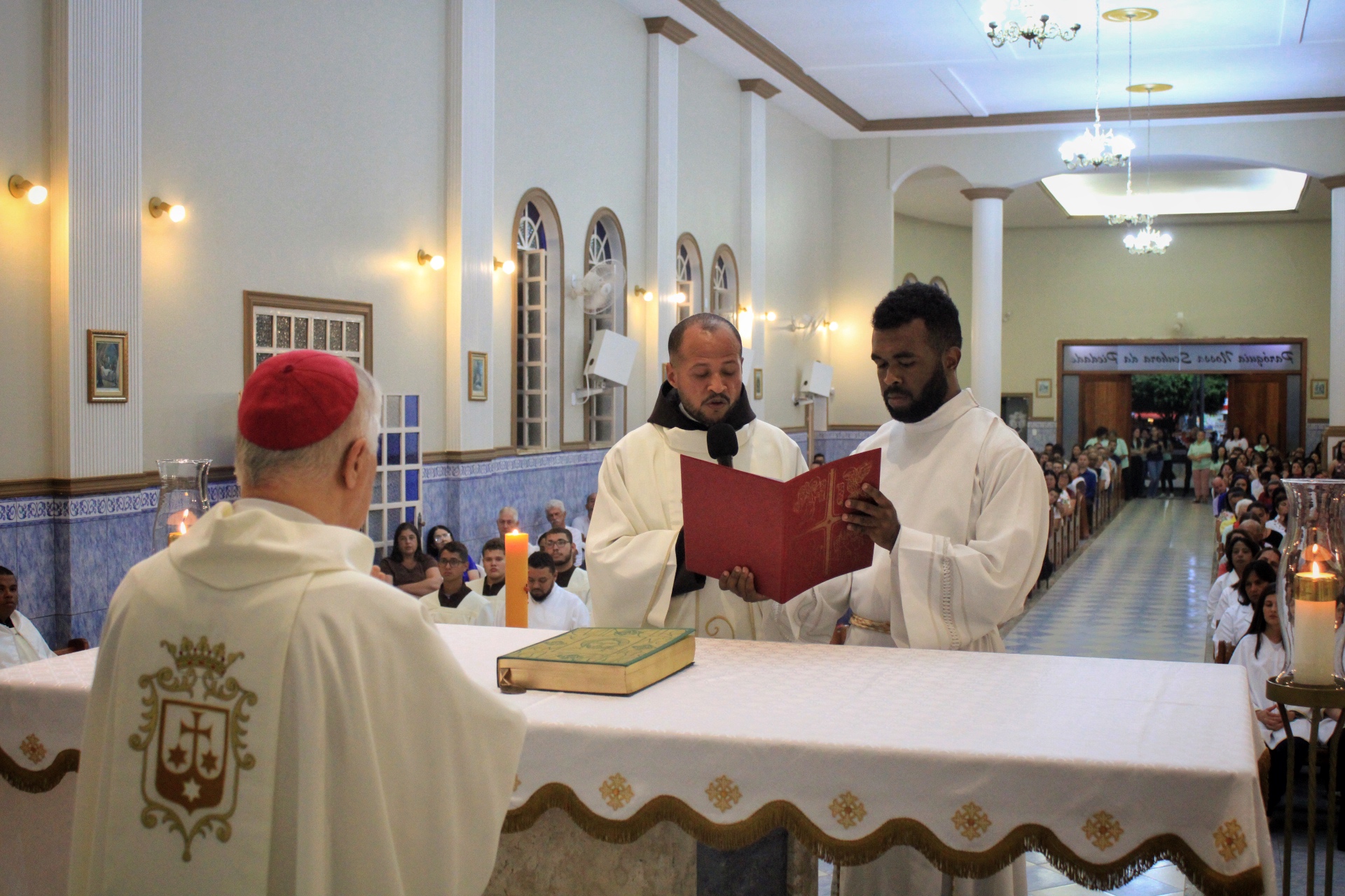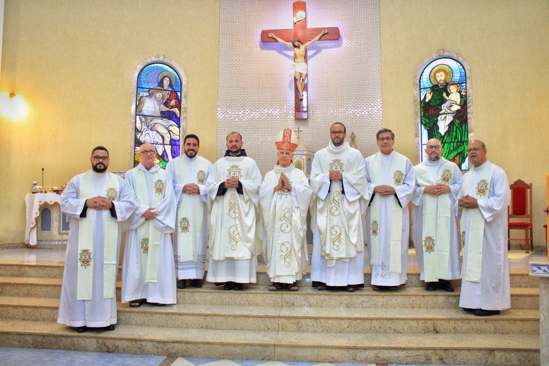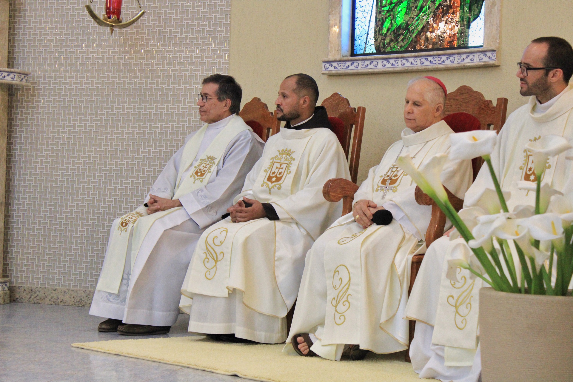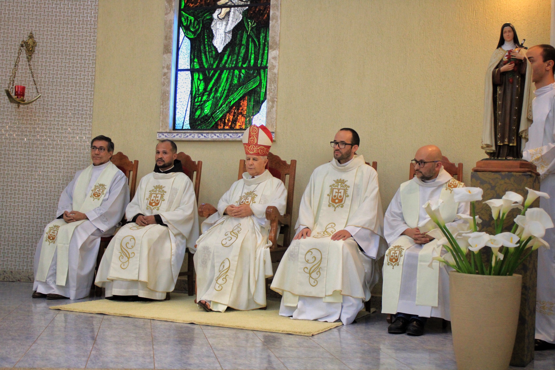 A Eucaristia foi presidida por Dom Emanuel Messias de Oliveira, bispo diocesano de Caratinga, e além da presença dos 4 frades que irão trabalhar na paróquia, foi ainda concelebrada por Frei Rafael Terra (Pároco Nomeado da Paróquia do Carmo em Caratinga), Frei Geraldo Afonso (Novo Superior do Convento de São Paulo), Pe. Ademilson Quirino (Diretor Espiritual do Seminário Diocesano) e Pe. Dione Leandro (Pároco de Bom Jesus do Galho e Vigário Forâneo de Caratinga). A Celebração contou ainda com a presença dos seminaristas Emanuel, Victor e Phillipi, ambos da etapa da Teologia do Seminário Diocesano.