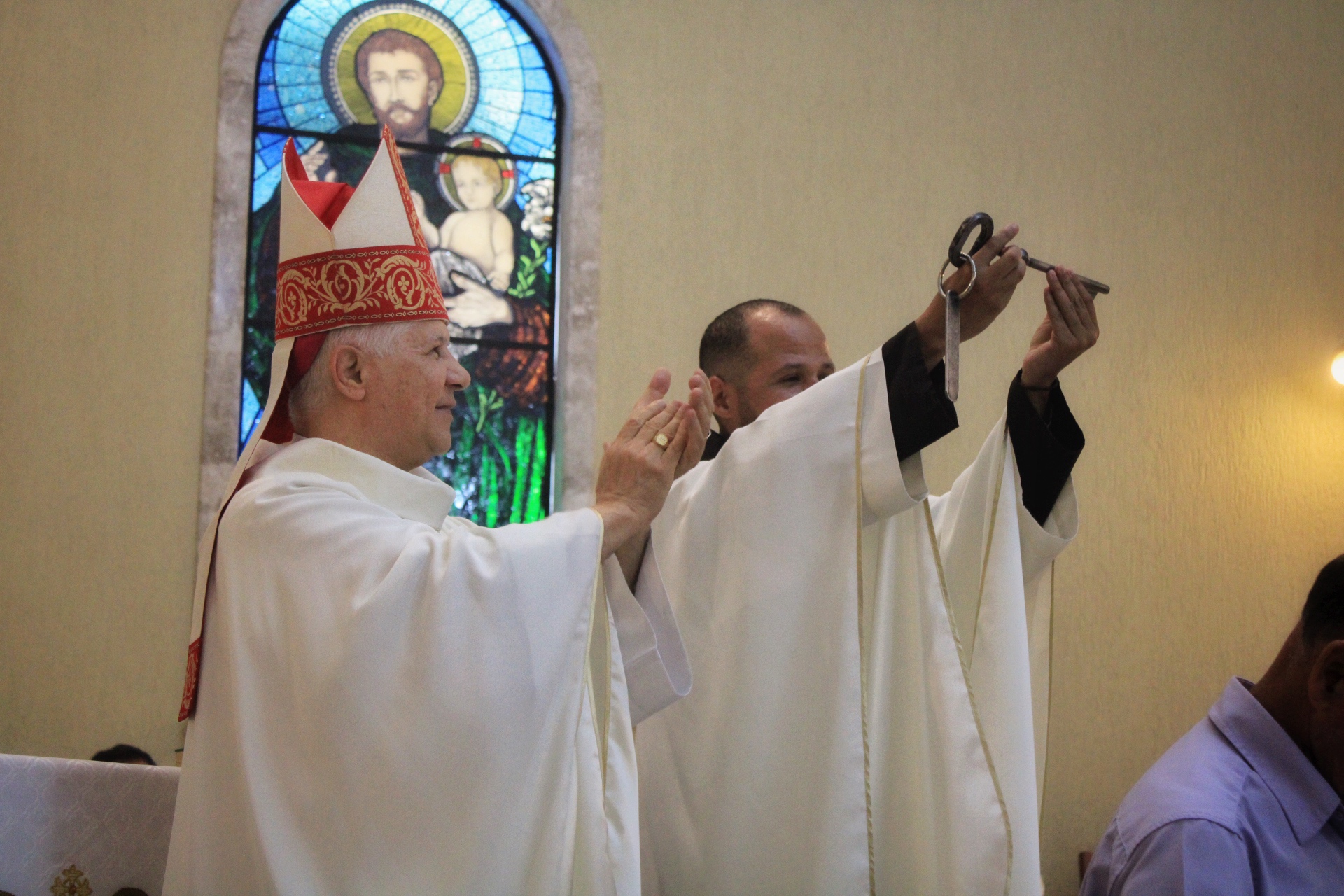 Conforme prescreve o rito, Pe. Dione procedeu com as leituras das provisões, em seguida, Frei Ronan professou a fé católica e fez o juramento, tocando os Santos Evangelhos. Na homilia, Dom Emanuel destacou a simbologia do pastoreio, exortando o novo pároco a cuidar com zelo de seu rebanho, fazendo paralelo com os textos da liturgia do dia. Ainda enquanto atos da posse, o novo pároco renovou suas promessas sacerdotais e recebeu da comunidade a chave da paróquia, além de ser introduzido aos espaços sagrados da Igreja.