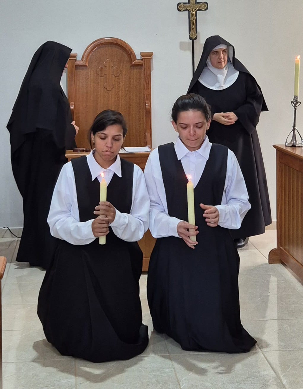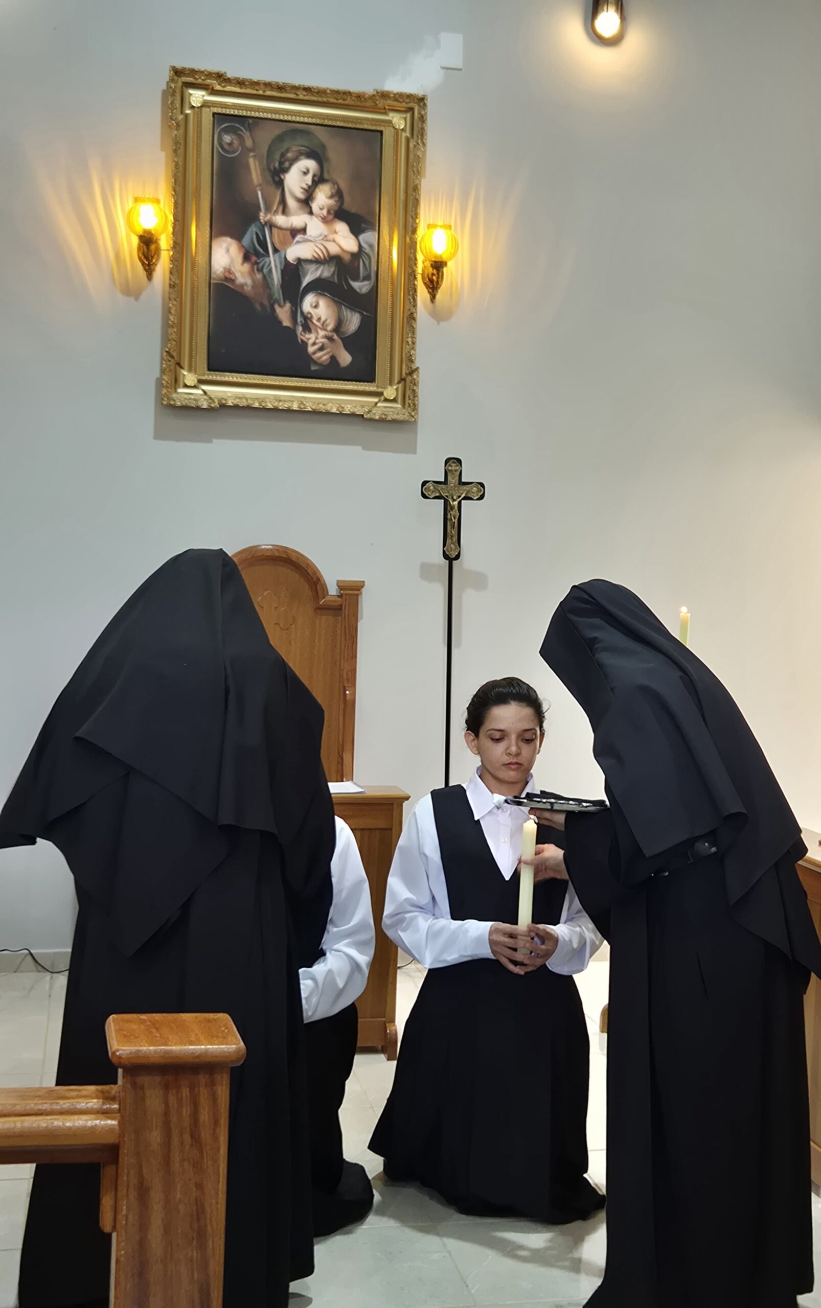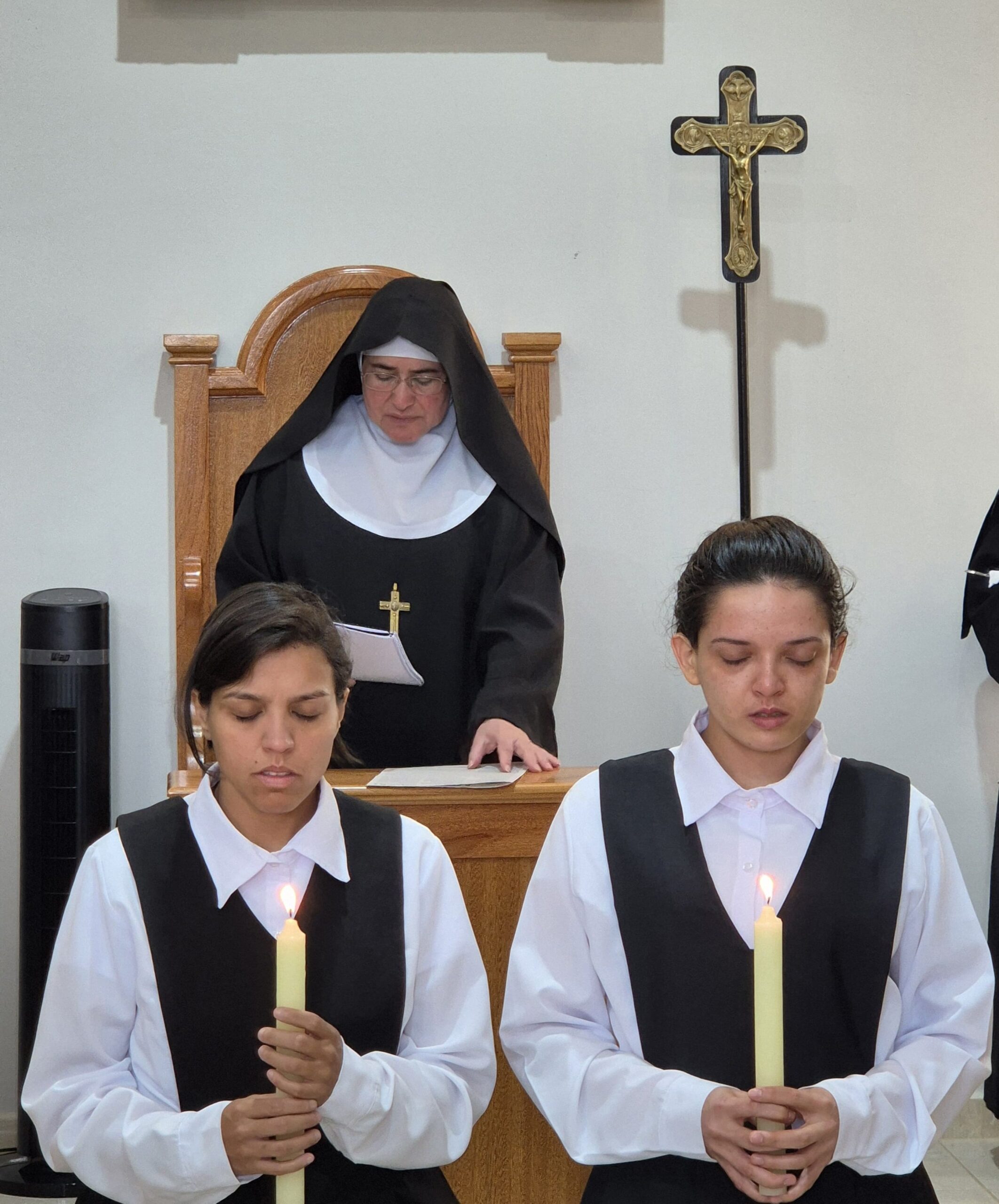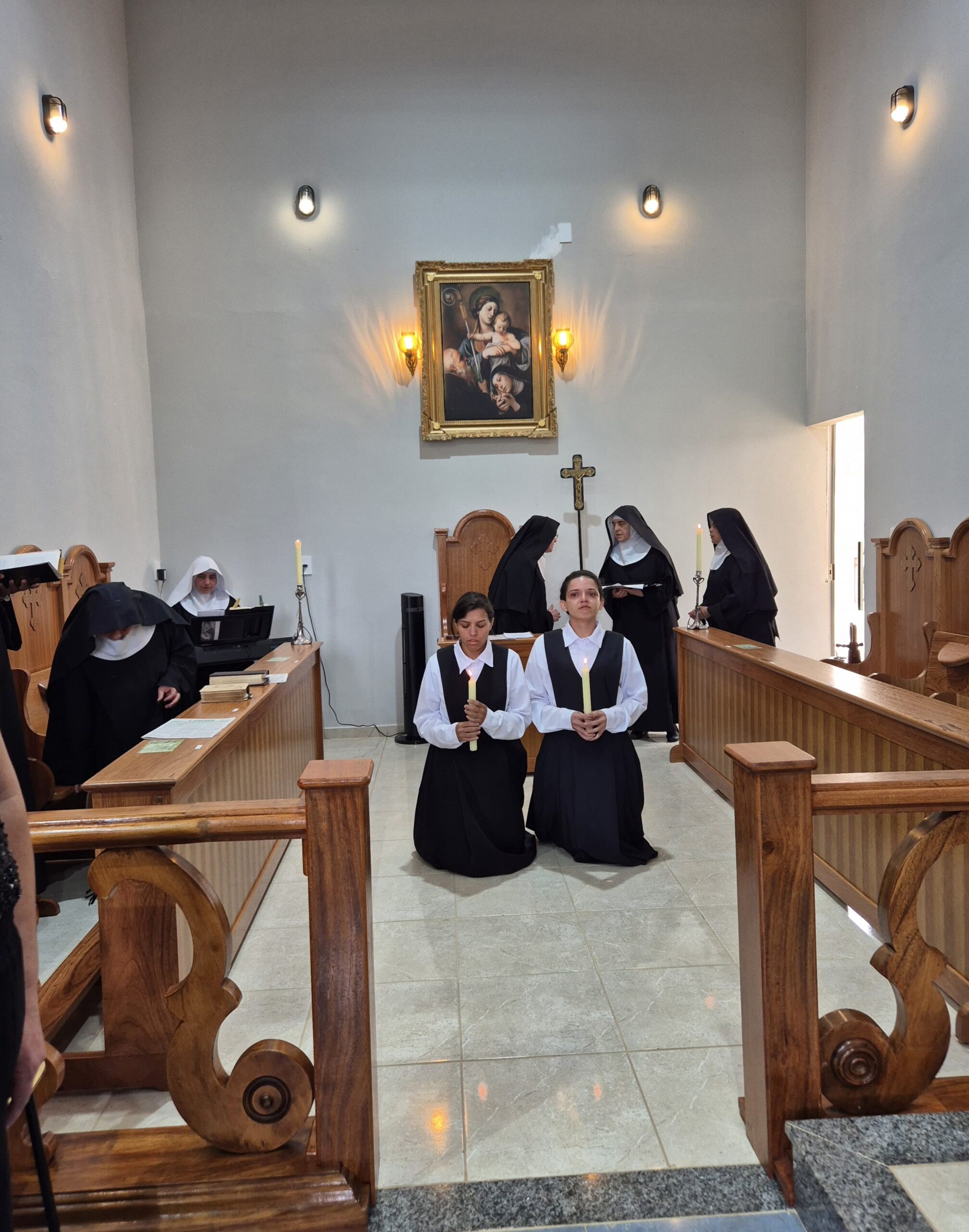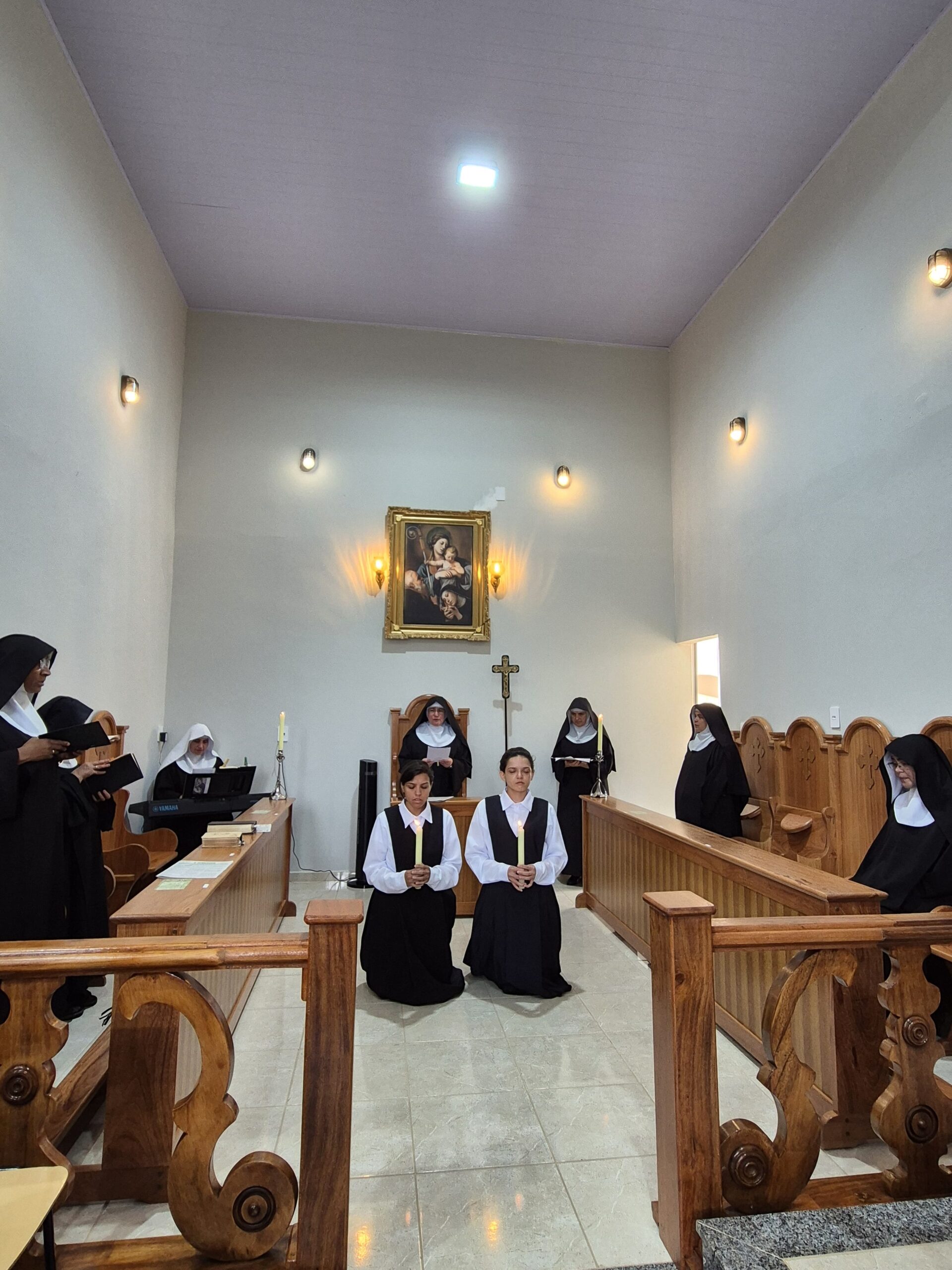 Os participantes puderam vivenciar a profundidade desse rito, que simboliza a entrega e o compromisso das candidatas com a vida monástica e a busca por uma relação mais íntima com Deus.
