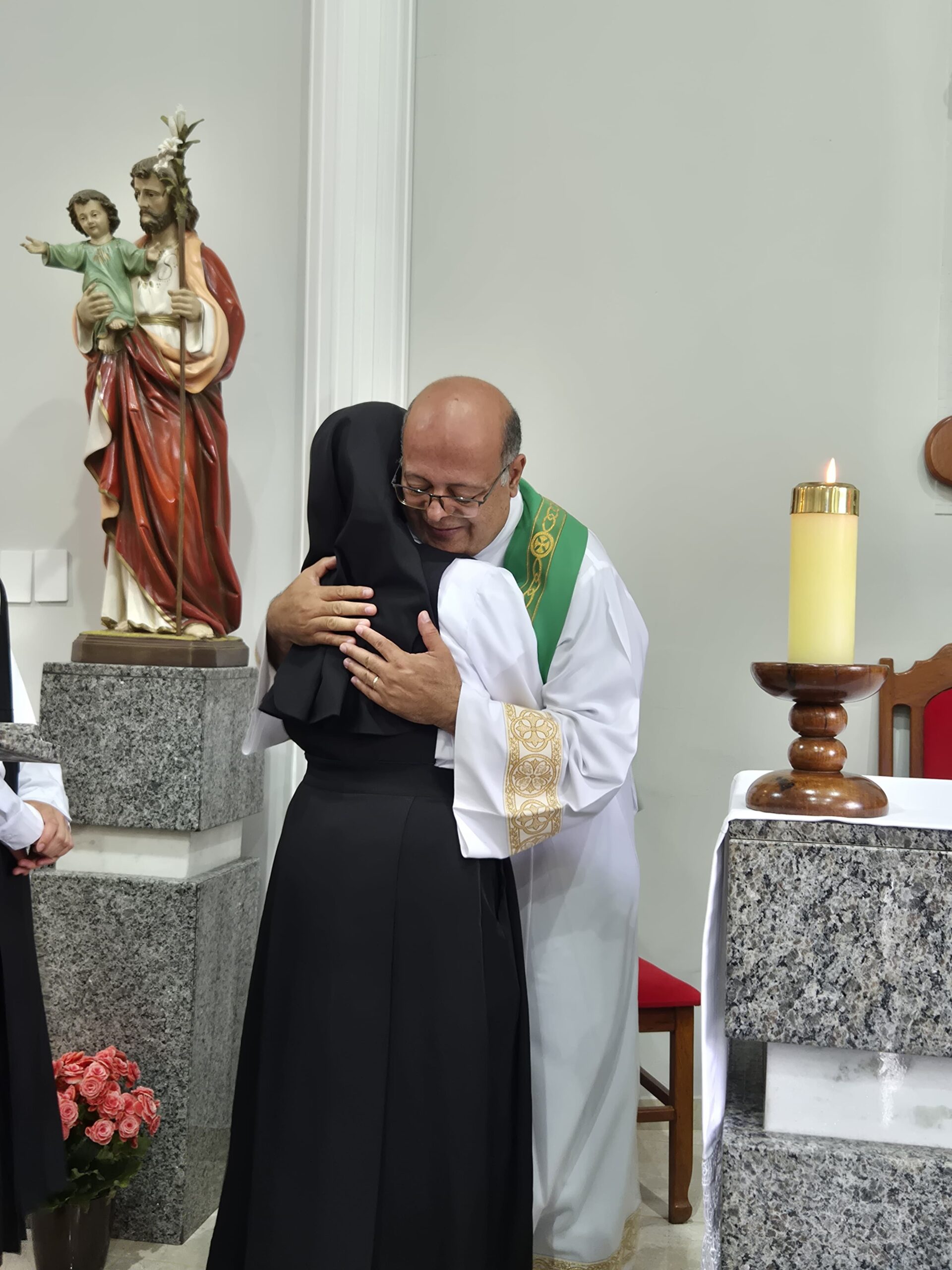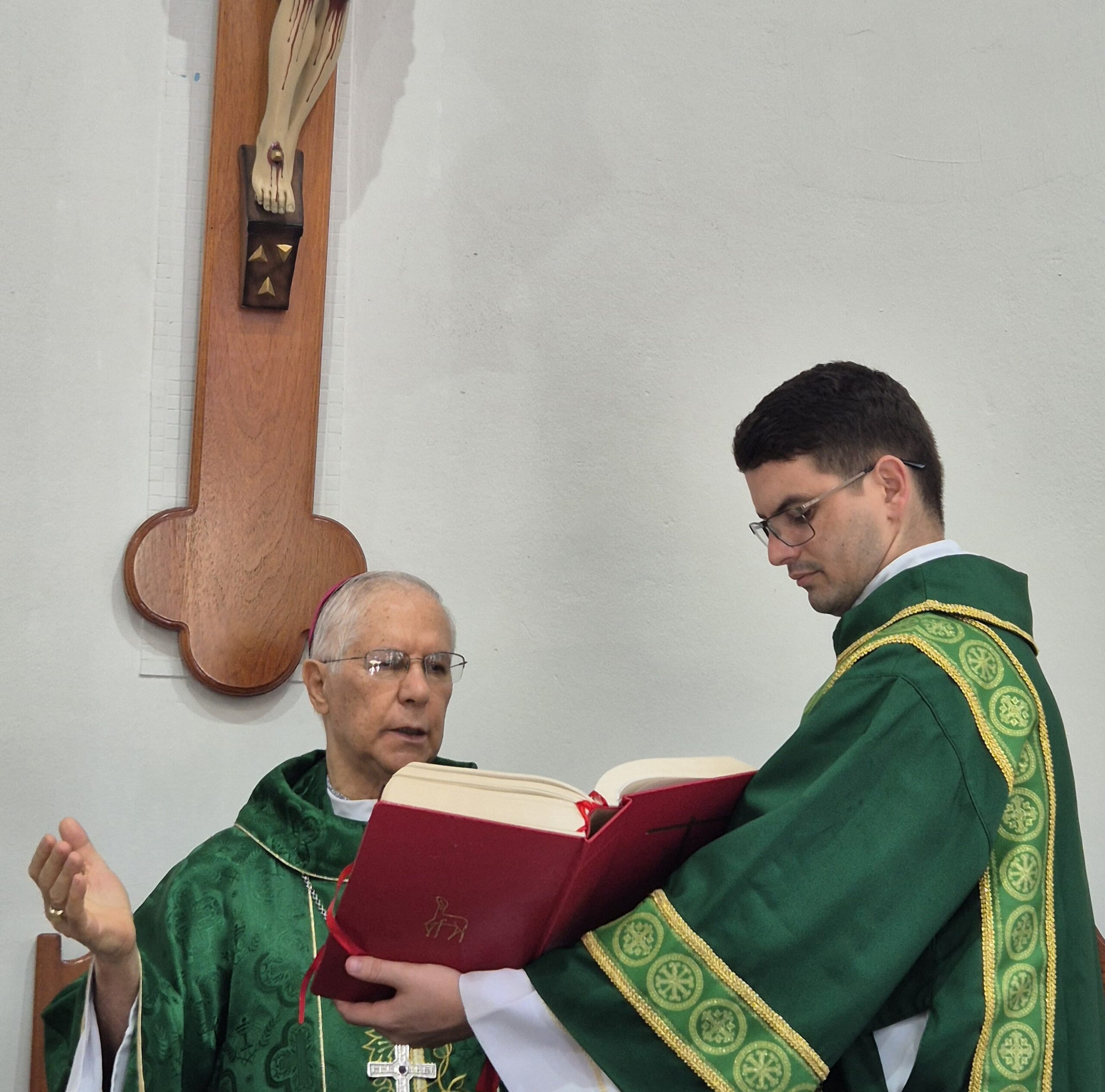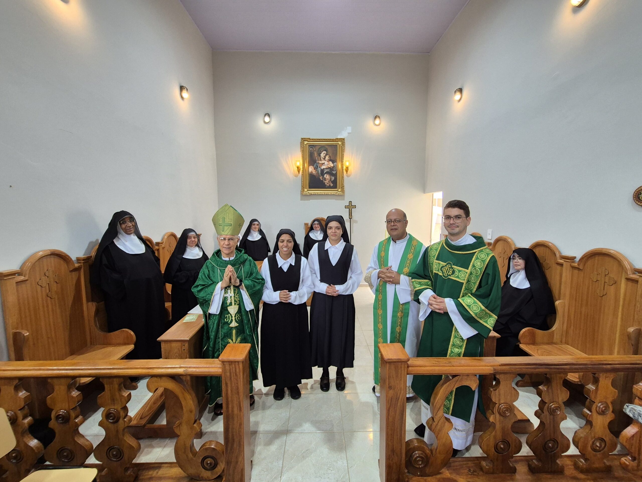 A celebração foi presidida por Dom Emanuel Messias de Oliveira, bispo emérito da Diocese de Caratinga, que trouxe sua sabedoria e experiência para este momento de acolhimento. A cerimônia contou também com a concelebração do Pe. Ademilson Tadeu Quirino, Capelão do Mosteiro e do Diácono Bruno Kened, que juntos, uniram suas vozes e corações em oração e bênçãos.