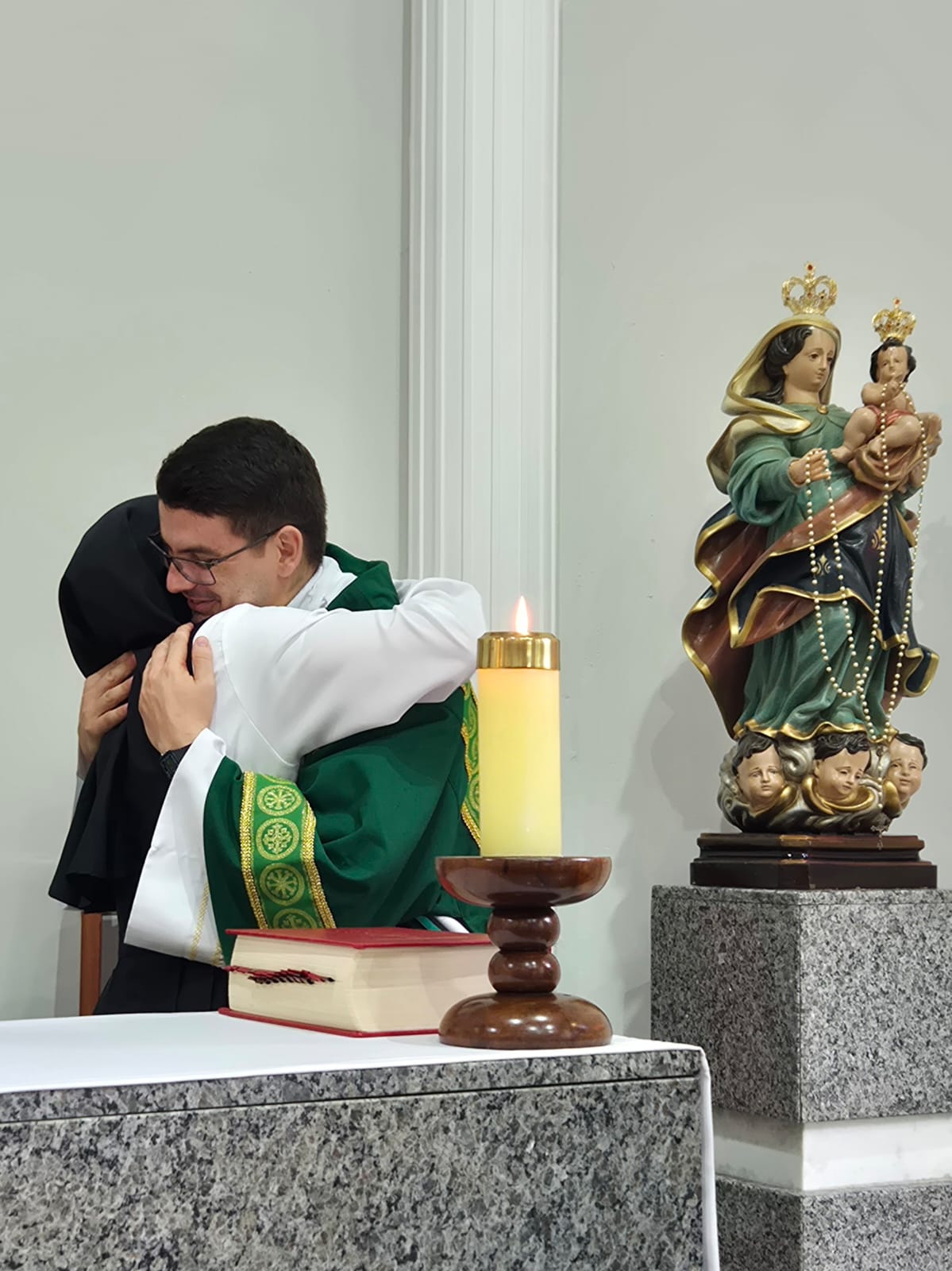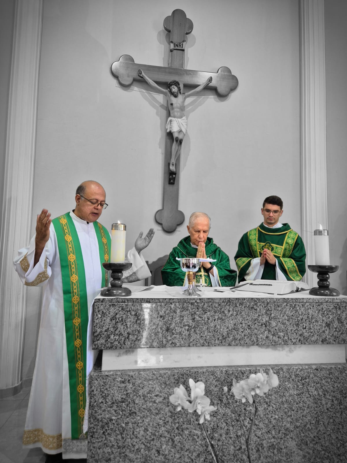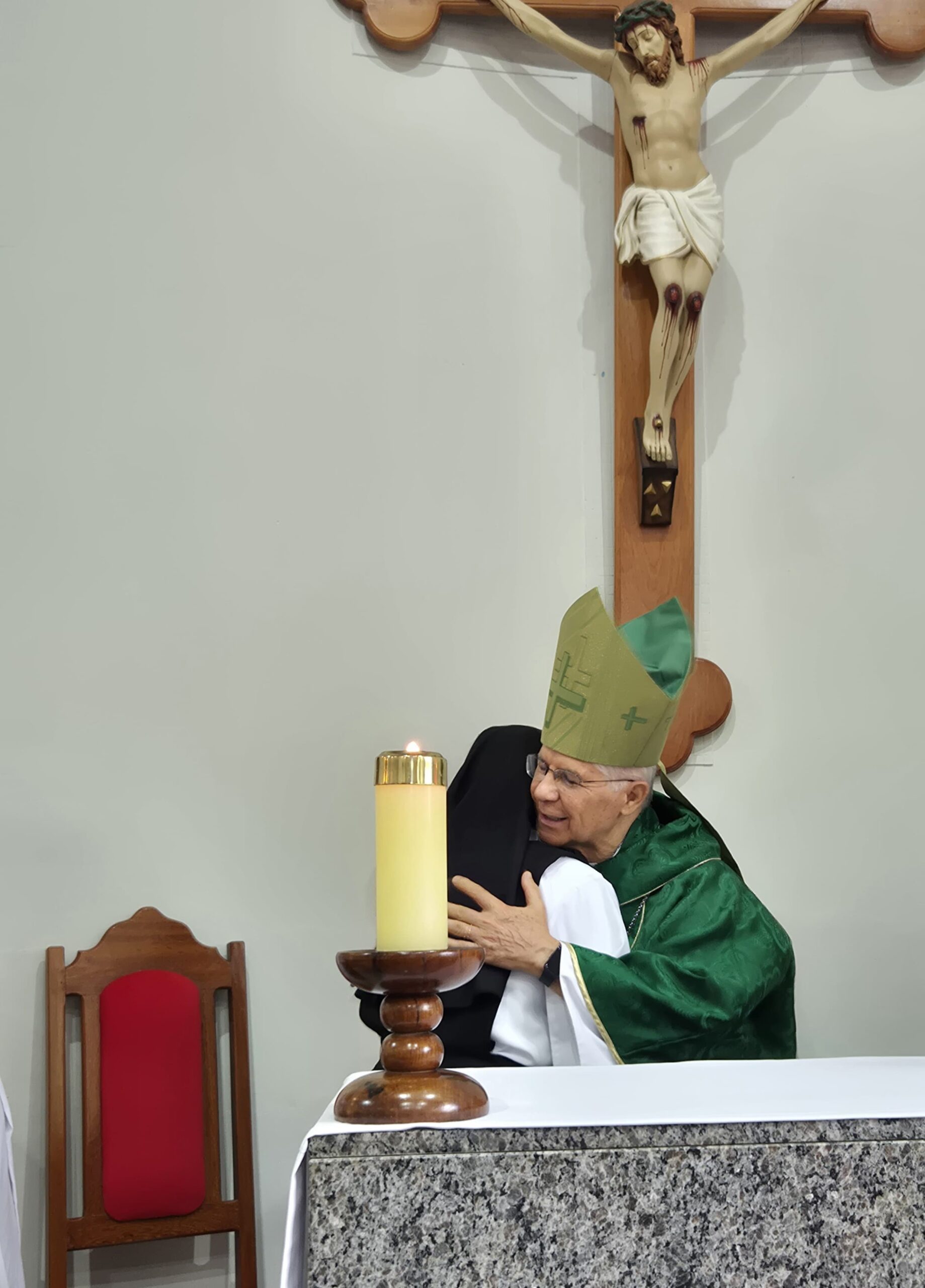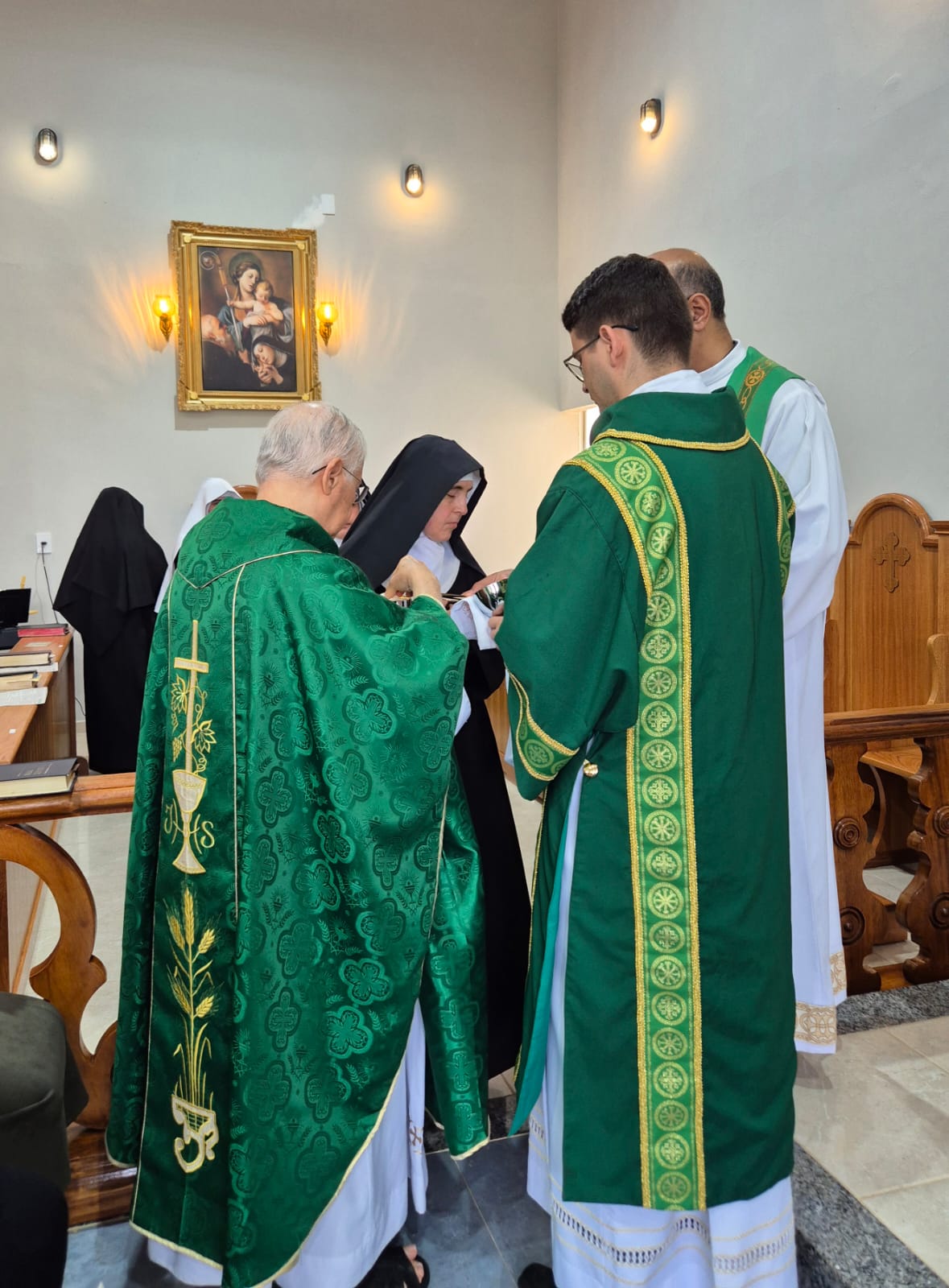 A celebração foi presidida por Dom Emanuel Messias de Oliveira, bispo emérito da Diocese de Caratinga, que trouxe sua sabedoria e experiência para este momento de acolhimento. A cerimônia contou também com a concelebração do Pe. Ademilson Tadeu Quirino, Capelão do Mosteiro e do Diácono Bruno Kened, que juntos, uniram suas vozes e corações em oração e bênçãos.