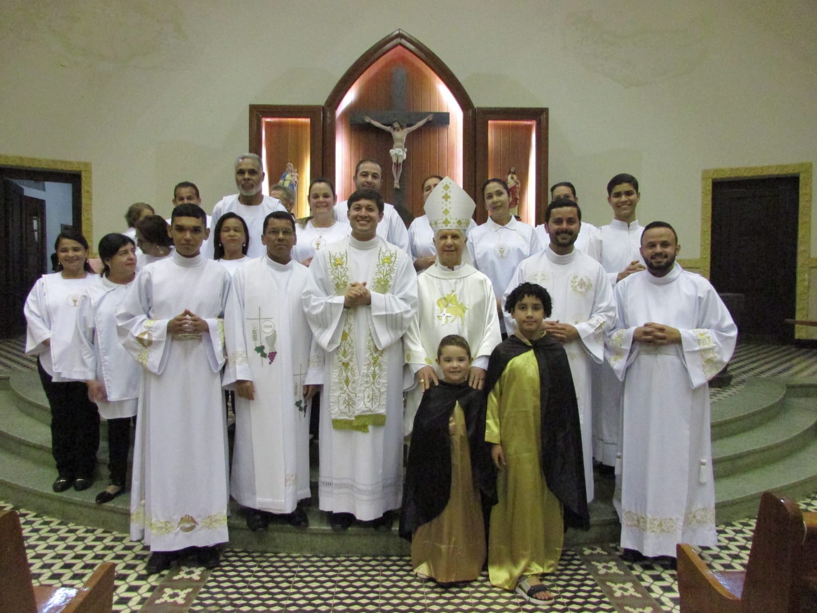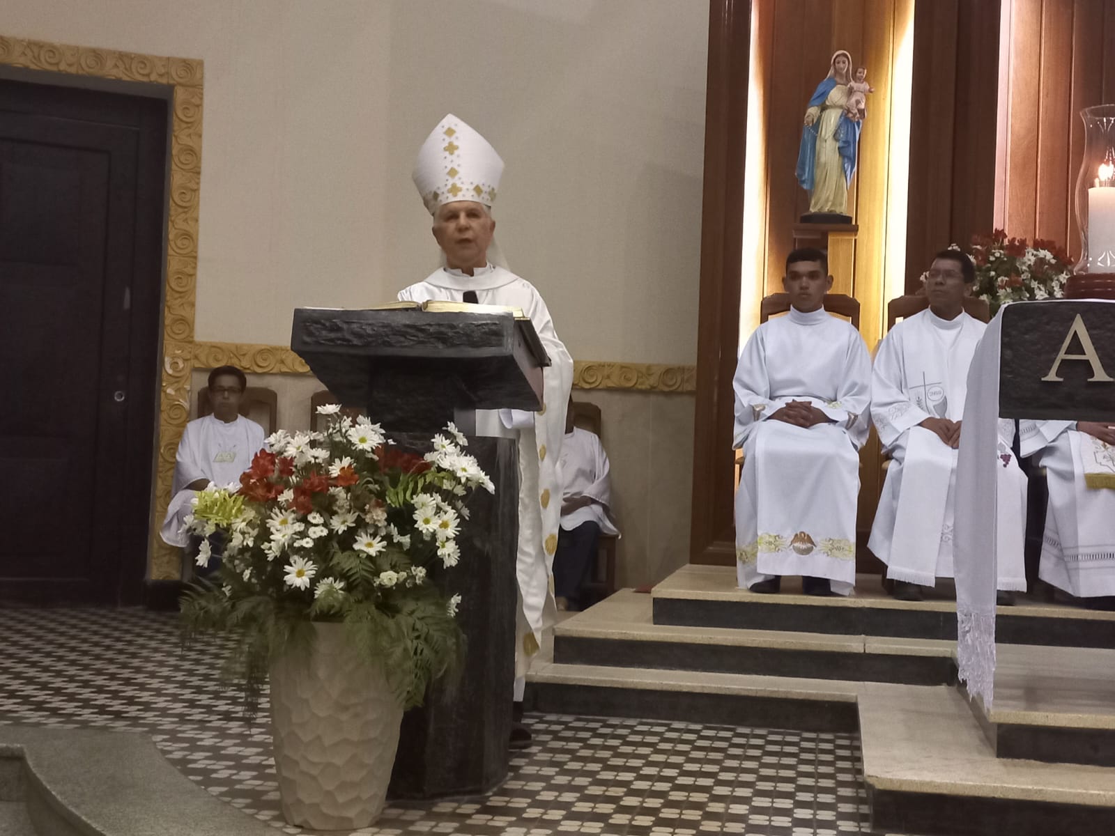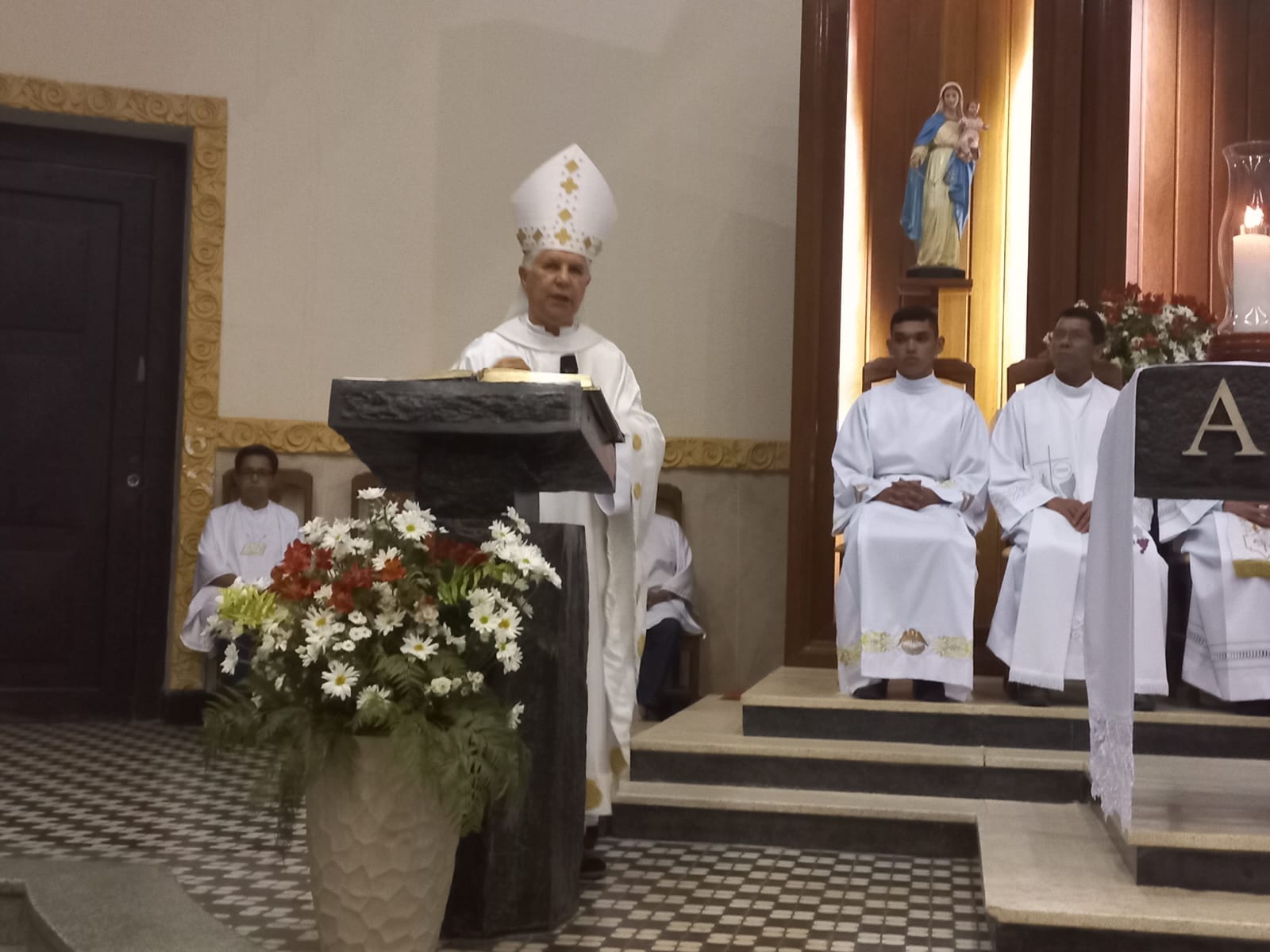Dom Emanuel Messias de Oliveira presidiu a Celebração Eucarística às 19 horas, concelebrada pelos padres: Raniel Carlos, Elias Garcia, Argentil e José Geraldo, e em sua homilia ressaltou um pouco da história de São Domingos e disse que é um grande Santo que falava com Deus e falava de Deus em suas palavras e obras.