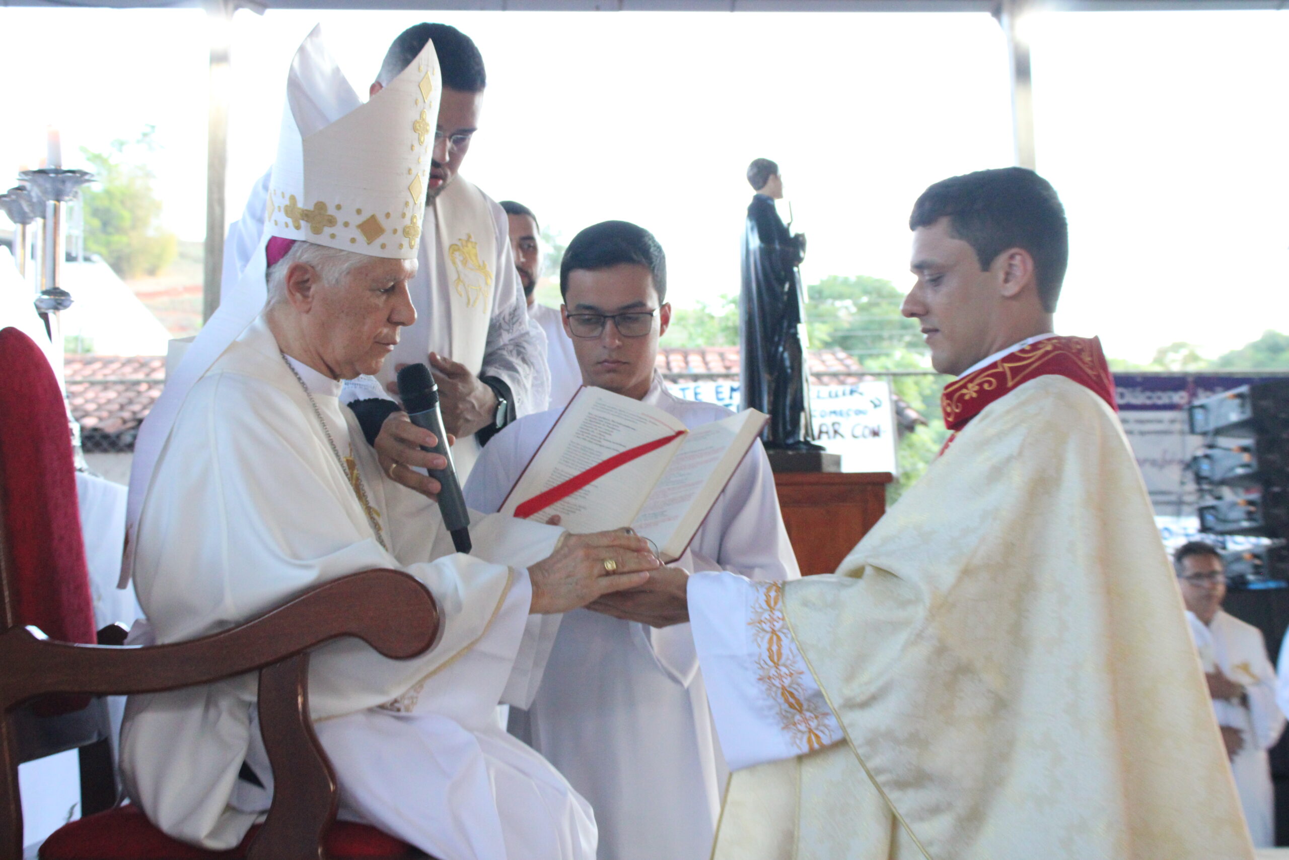 Na tarde do último sábado, dia 18/11, na quadra da Escola Estadual “Engenheiro Amaro Ferreira”, Comunidade São Geraldo no Distrito de Taruaçu de Minas, Paróquia Nossa Senhora Aparecida de Dom Cavati/MG, pela imposição das mãos do nosso bispo diocesano Dom Emanuel Messias de Oliveira e Oração da Igreja, foi ordenado como Presbítero o Diácono João Paulo Gonçalves Roriz, foi consagrado a Cristo para viver como o Cristo que misericordiosamente se fez pastor, guia e sacerdote da humanidade, numa celebração repleta de emoção para todos os presentes.