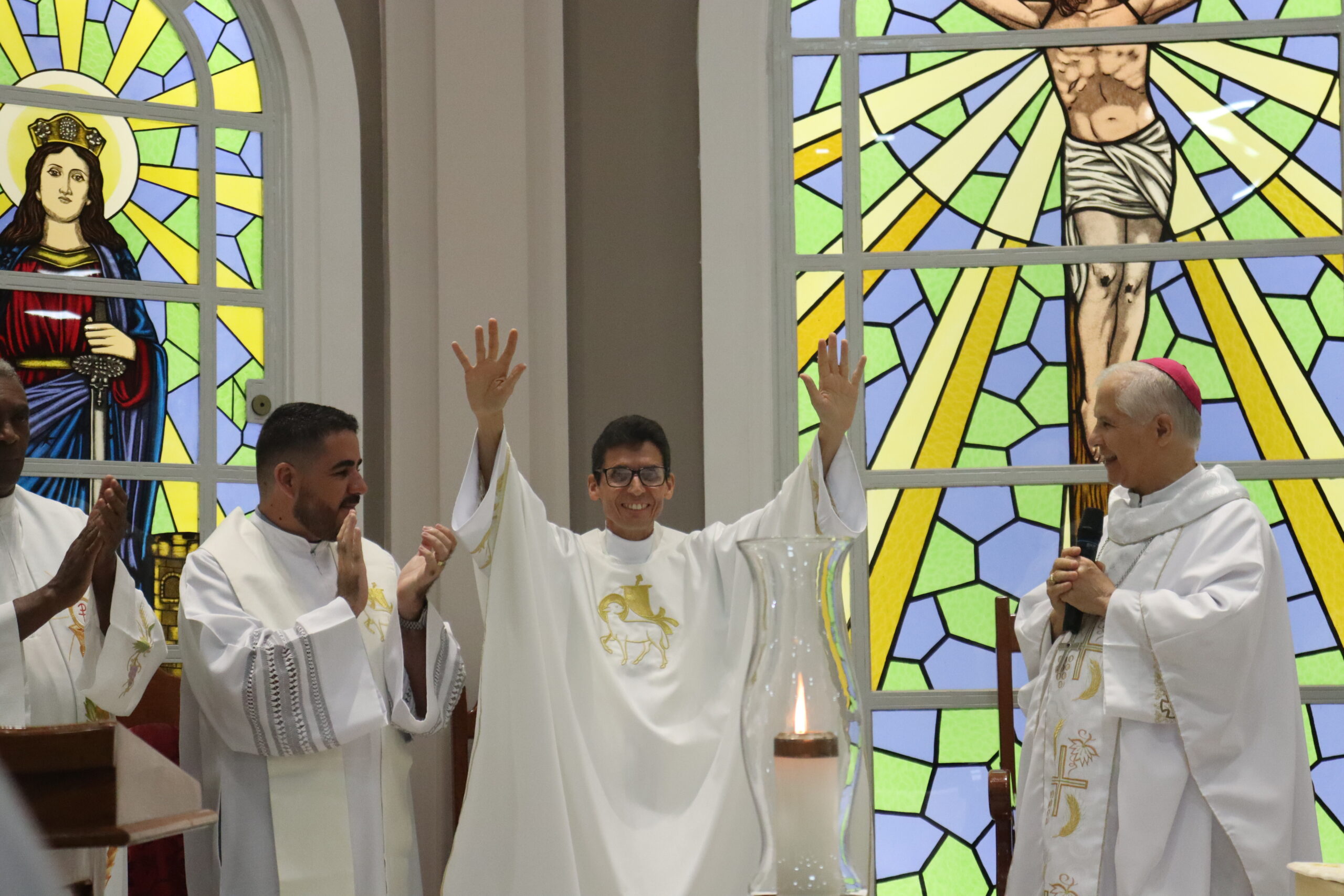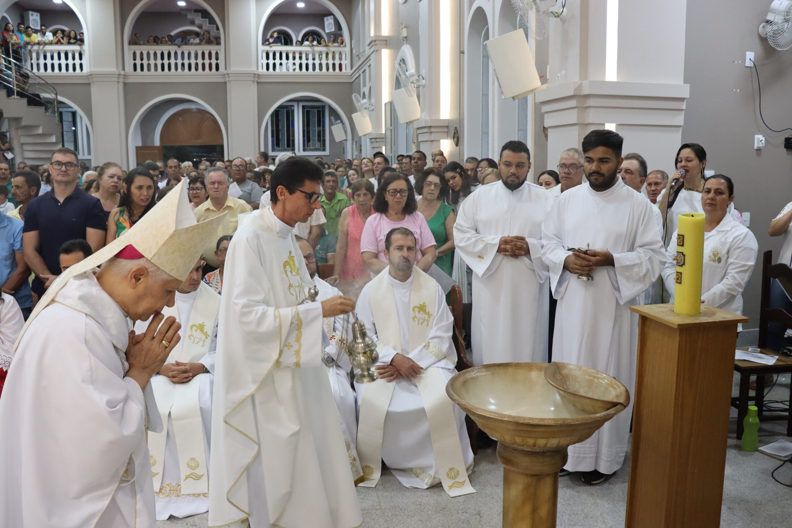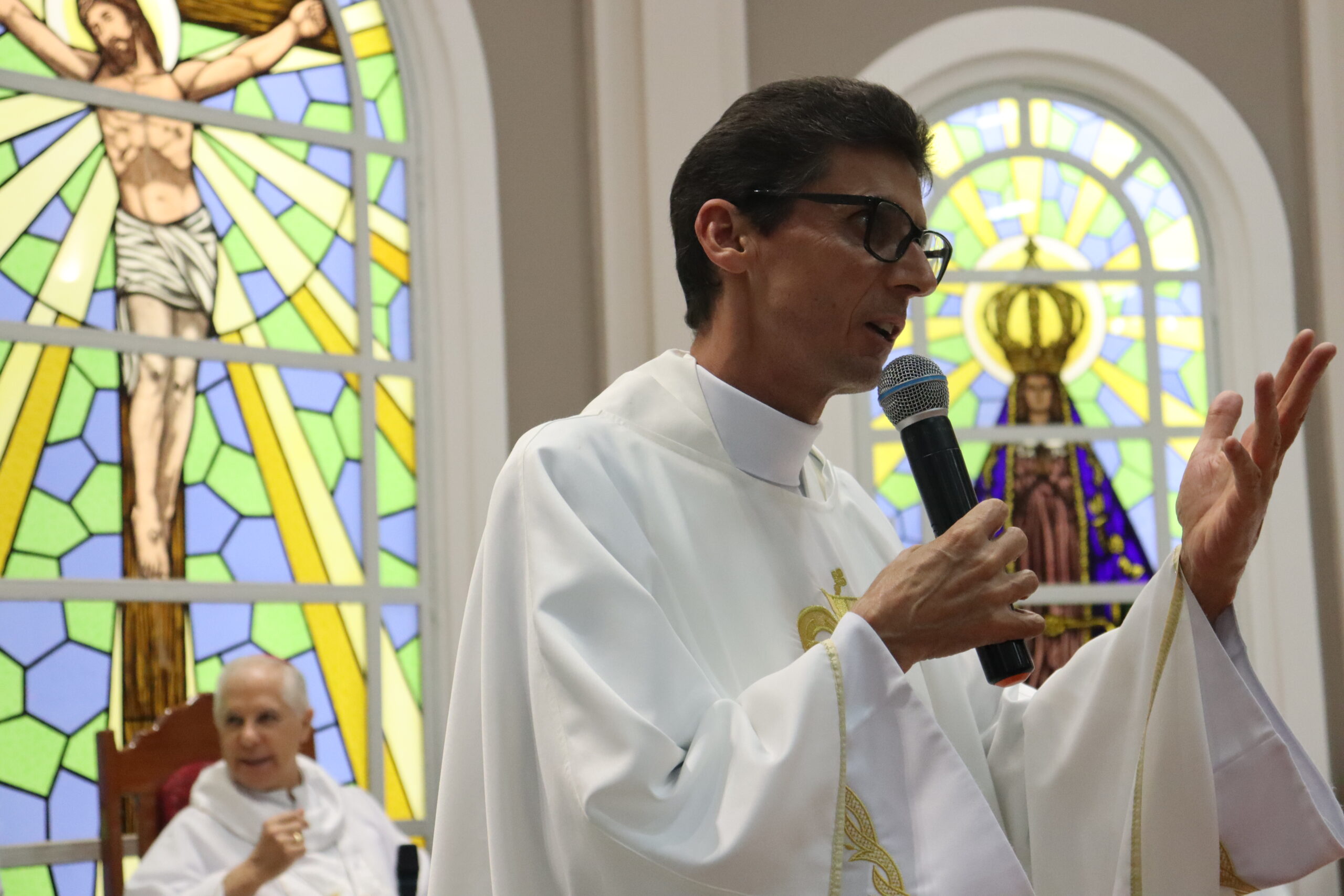 Através de uma celebração festiva, Dom Emanuel Messias de Oliveira, bispo diocesano de Caratinga, empossou o sacerdote como novo pároco da comunidade paroquial. O bispo ressaltou o que era notório, sua alegria em celebrar a posse, nesta noite.