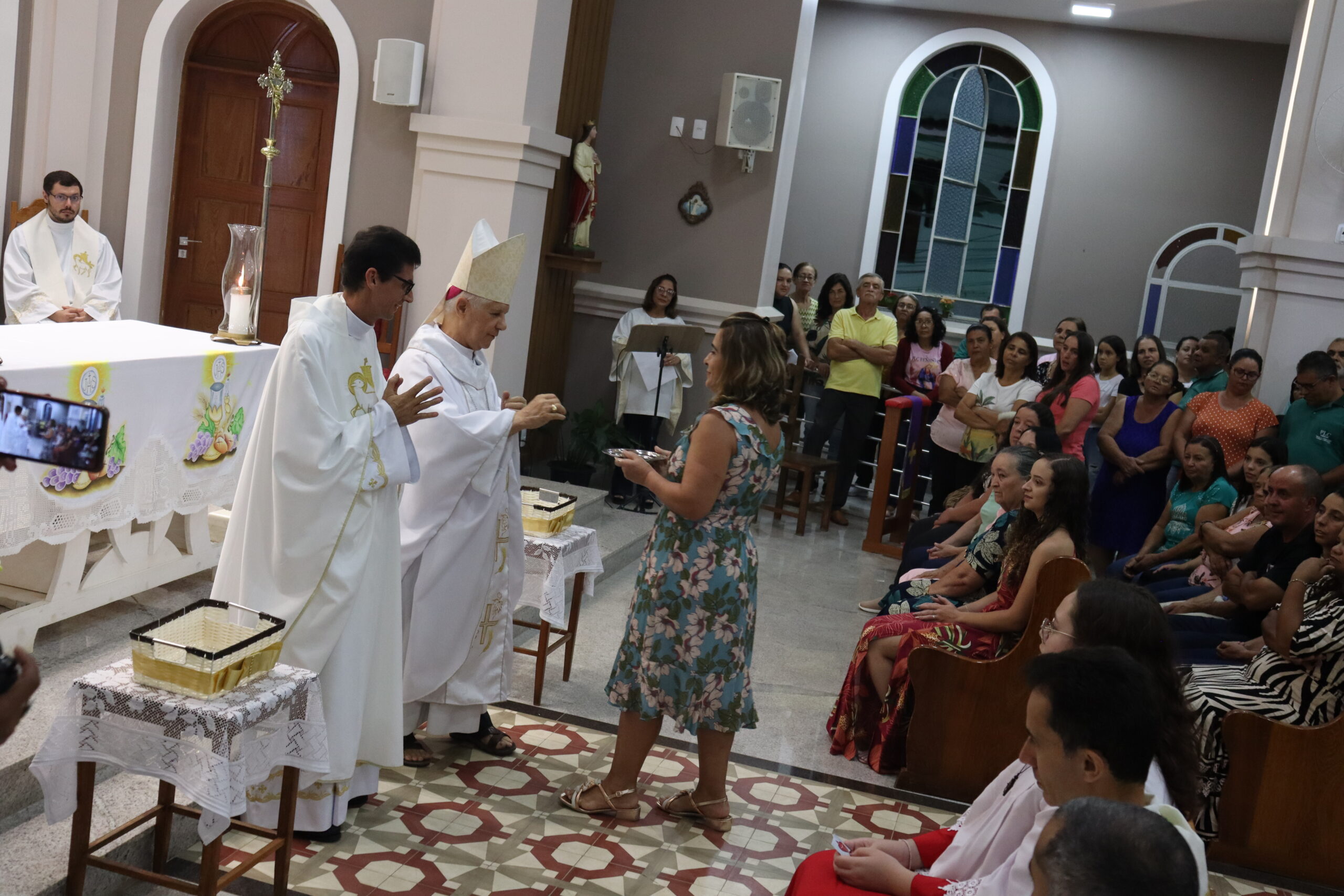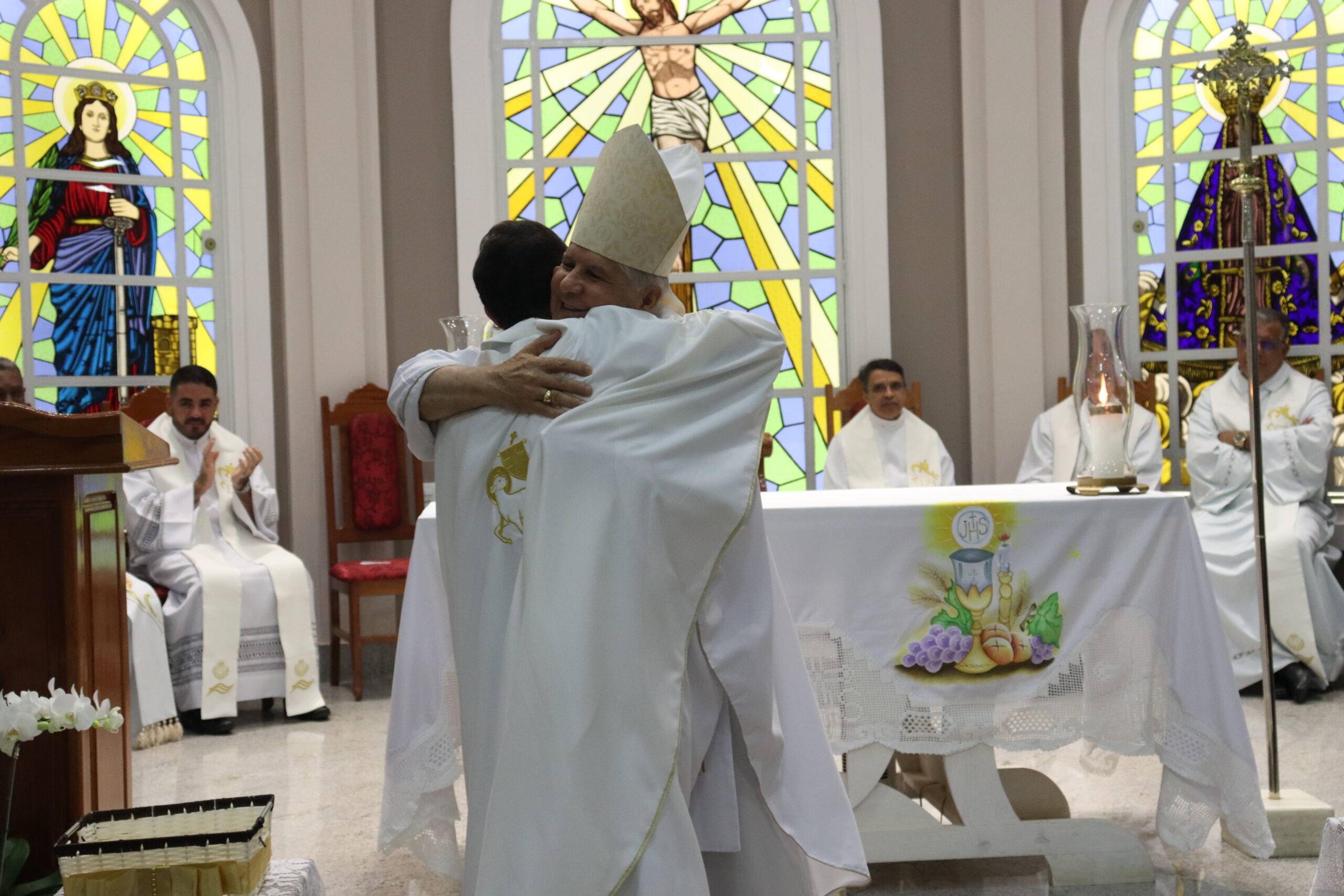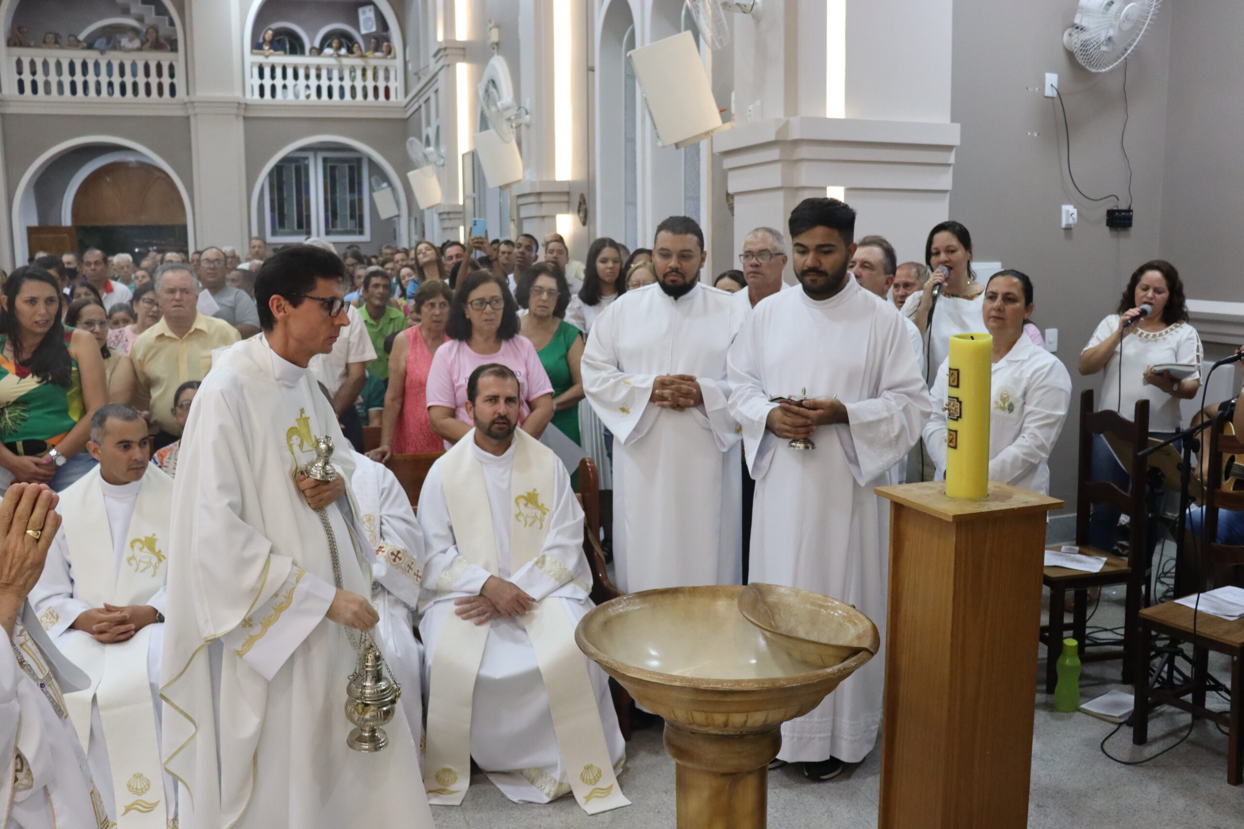 Através de uma celebração festiva, Dom Emanuel Messias de Oliveira, bispo diocesano de Caratinga, empossou o sacerdote como novo pároco da comunidade paroquial. O bispo ressaltou o que era notório, sua alegria em celebrar a posse, nesta noite.