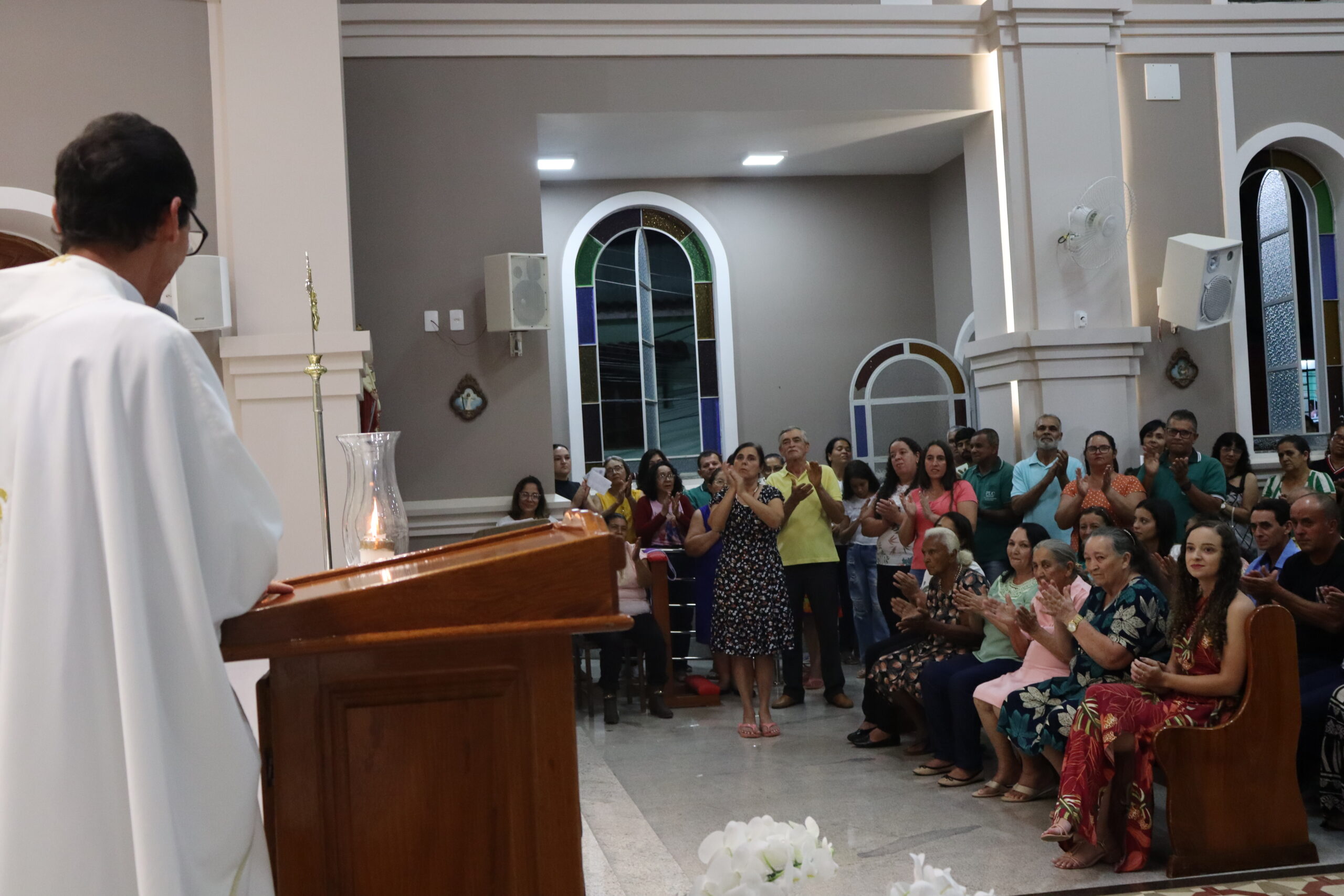 Com o templo repleto de fiéis, familiares e amigos, Padre Calais foi acolhido.