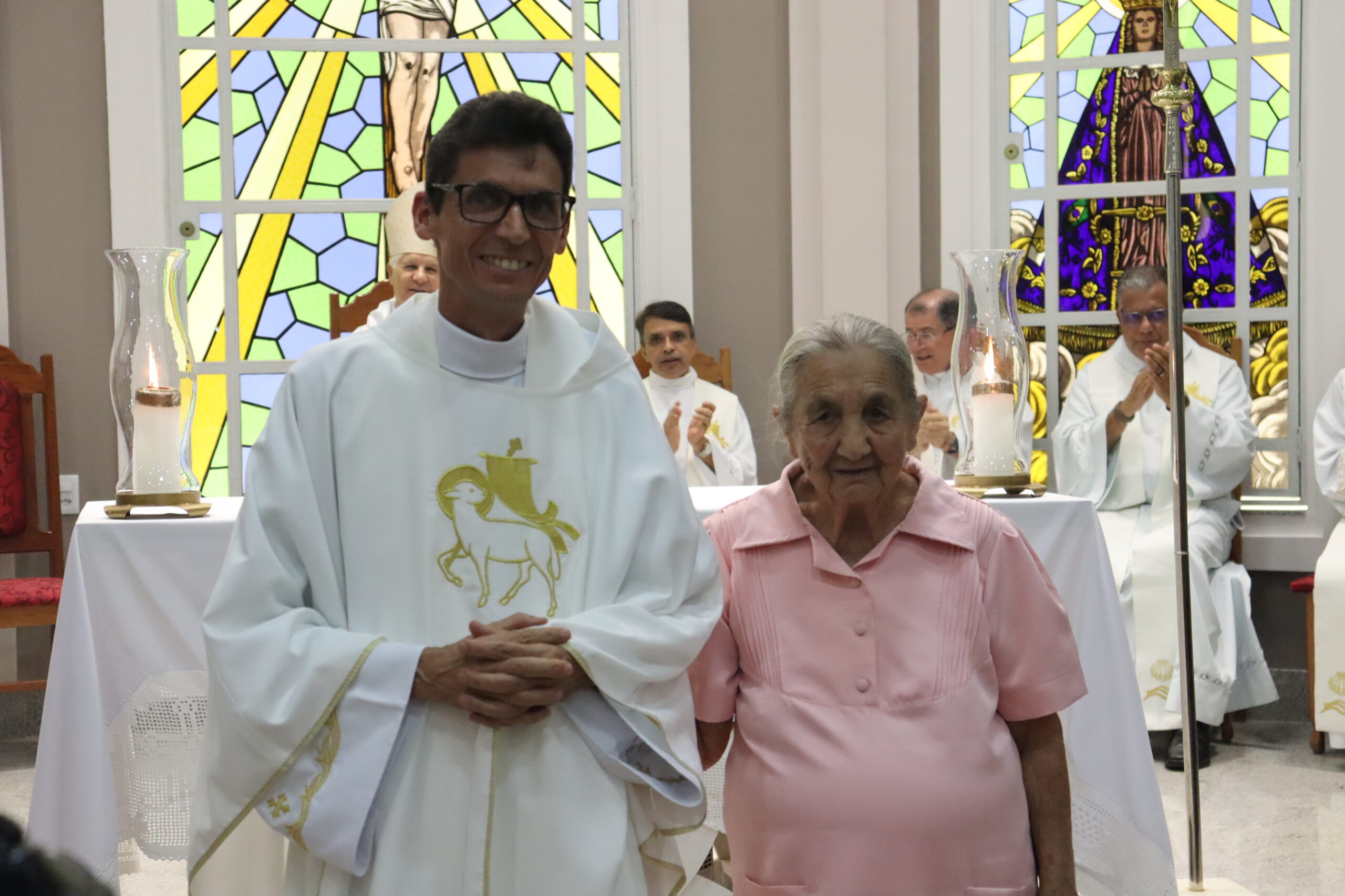 Ao final da missa, o padre realizou o discurso de agradecimento destacando aquela que é figura importante em sua vida, Dona Isabel Rocha de Calais, sua mãe, momento que emocionou a todos.