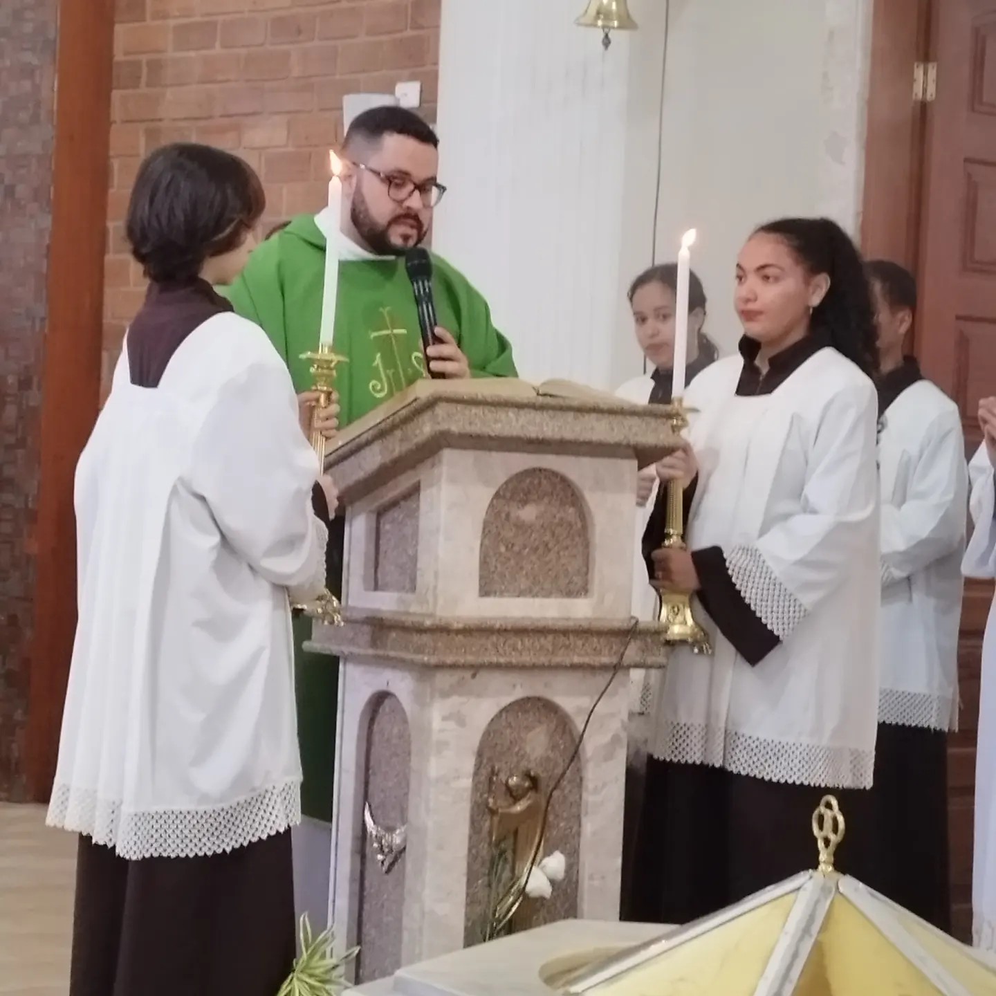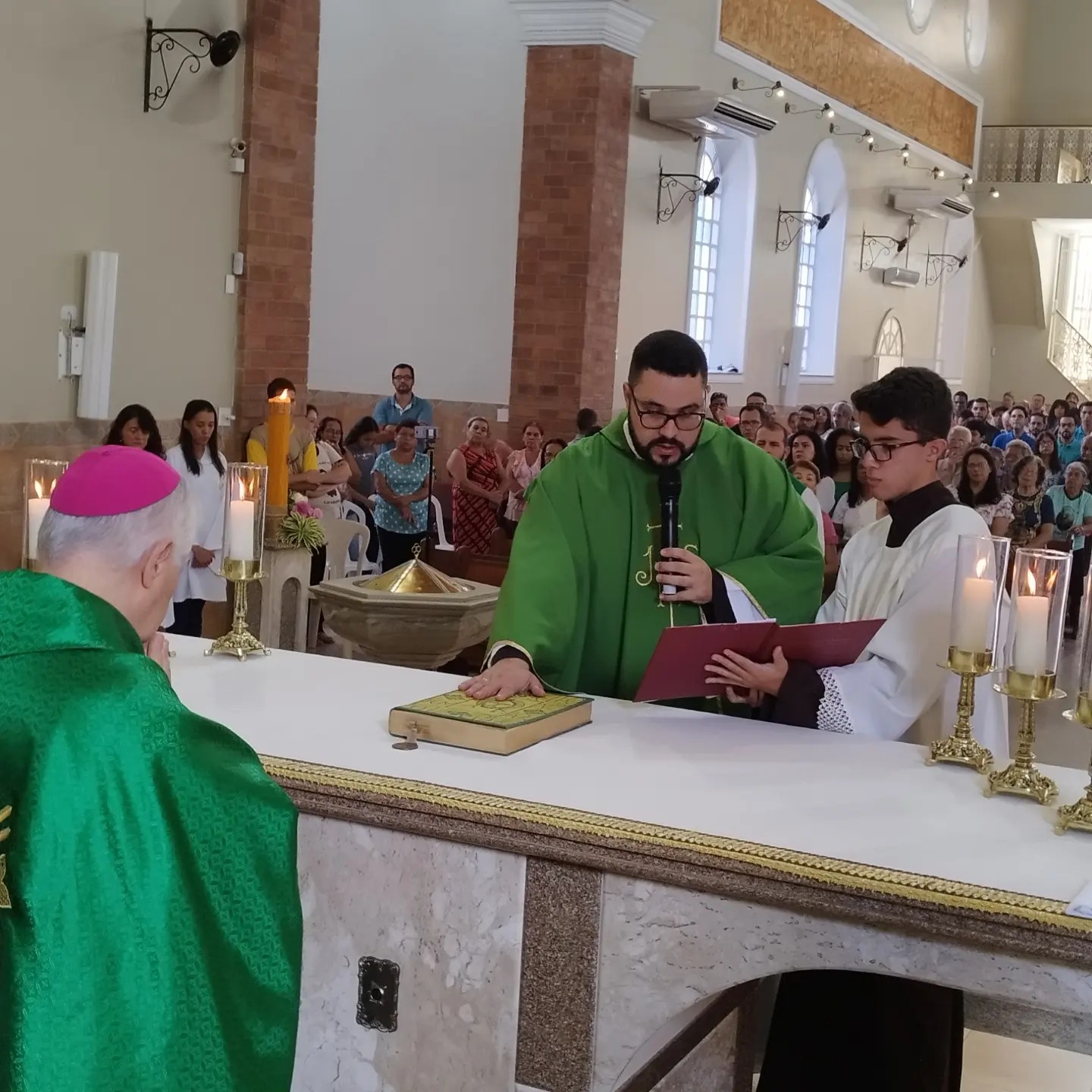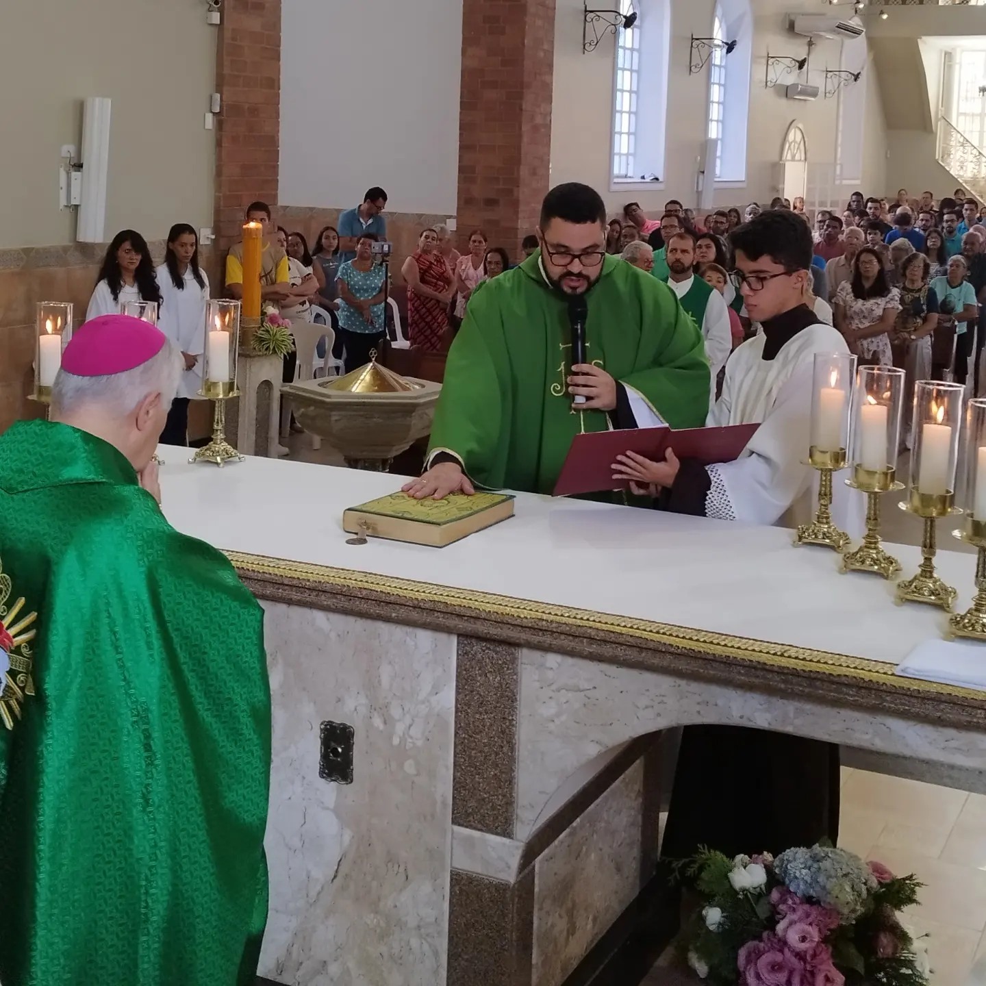 A Celebração Eucarística com rito de posse foi presidida pelo bispo diocesano de Caratinga, Dom Emanuel Messias de Oliveira, e concelebrada pelos padres Dione (Pároco de Bom Jesus do Galho e Vigário Forâneo), Marcondes (Pároco do Bairro Santa Cruz), Patrício (Ecônomo do Seminário Diocesano), Ely Cristo (Pároco de Inhapim) e Frei Ronan (Pároco de Piedade de Caratinga). A celebração contou ainda com a participação das irmãs gracianas, seminaristas diocesanos, postulantes, carmelitas seculares, familiares do novo pároco, além de uma representação intensa do povo de Deus da paróquia que abarca os bairros Esplanada, Salatiel, Vale do Sol, Zacarias, Rua do Seminário, Bairro das Graças, Aeroporto e Córrego do Laje.