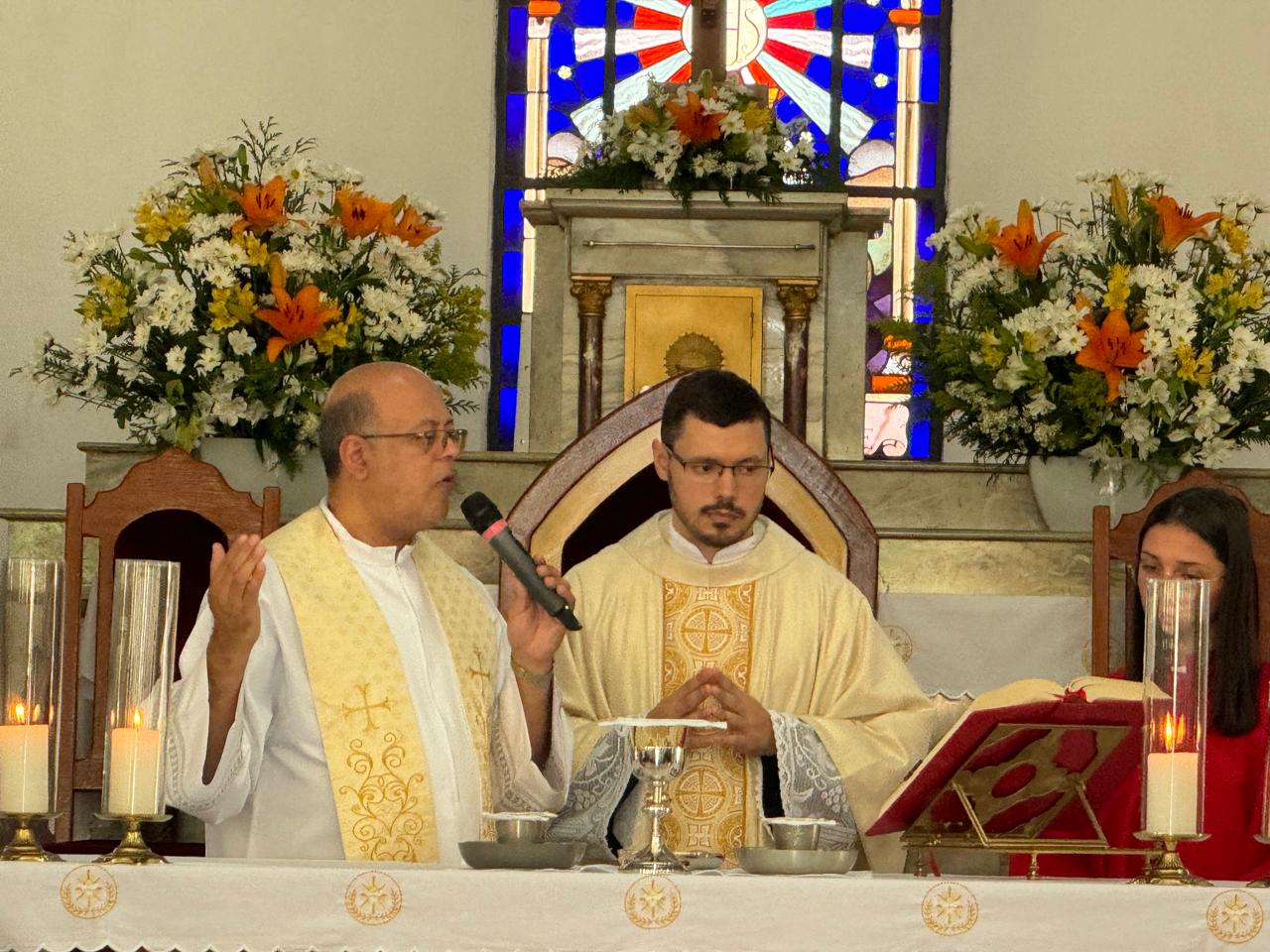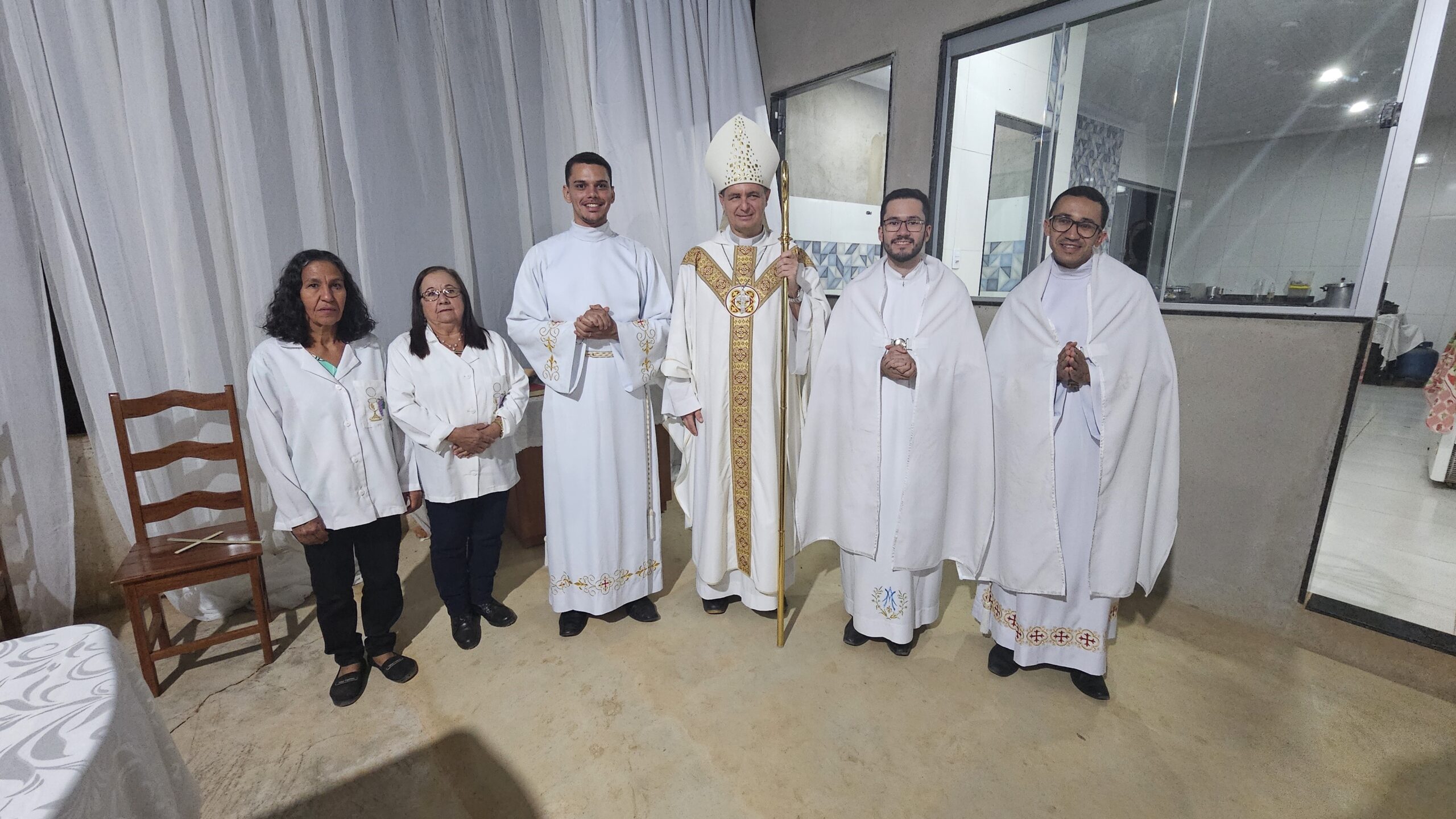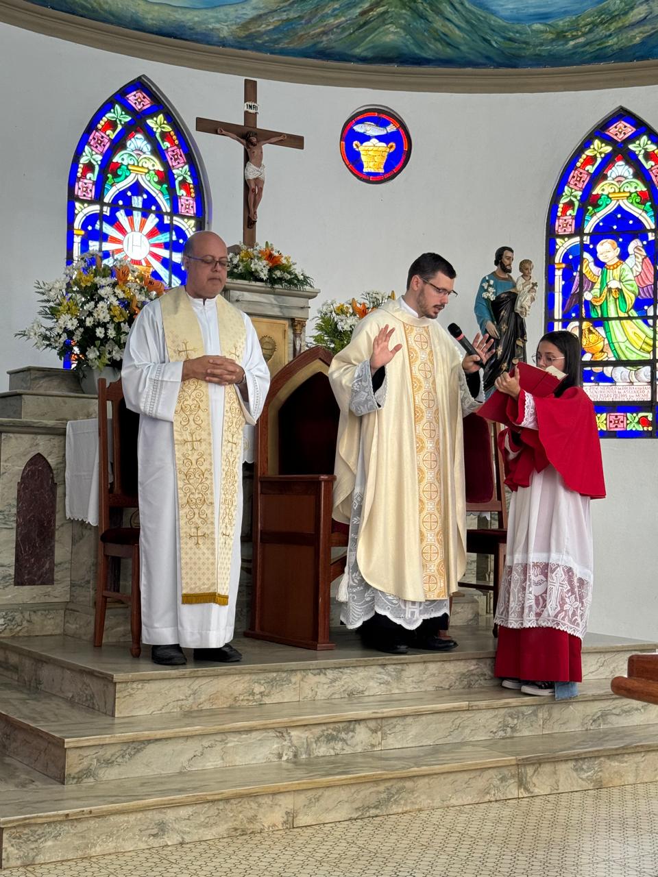 Tivemos a presença das Irmãs Missionárias de Nossa Senhora das Graças, dos Seminaristas Diocesanos e Propedeutas, Pe. Ademilson, Pe. Odilon e, de modo especial, a presença paterna e cativante de nosso Bispo Diocesano, Dom Juarez.