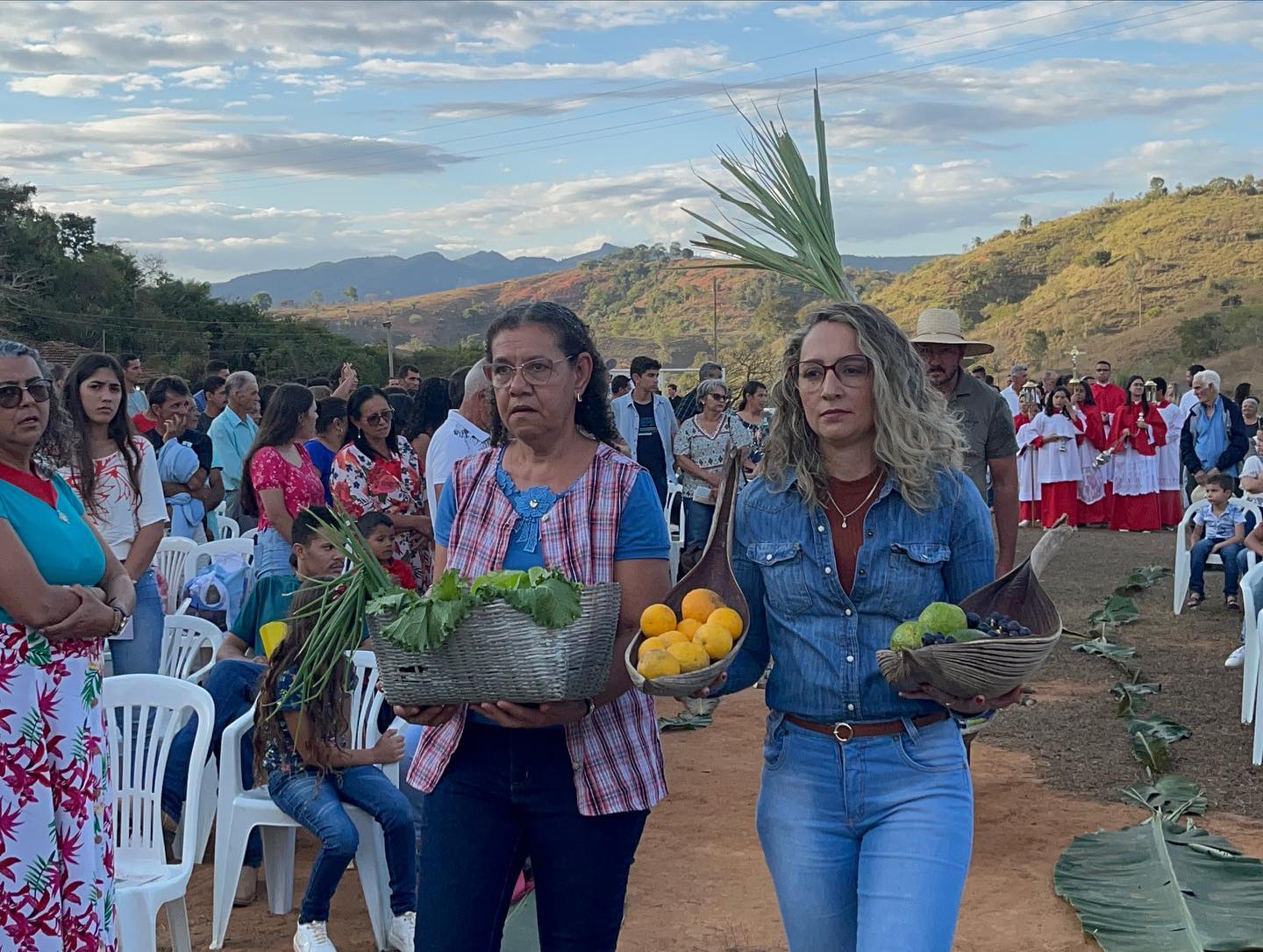 Alguns membros da paróquia apresentaram no altar vários objetos que simbolizam o trabalho do agricultor, além dos frutos da terra. O ofertório contou com a oferta de alimentos que foram doados para o Asilo e para a APAE da cidade. Pe. Agnel abençoou os alimentos, os produtores rurais e todos os presentes.
