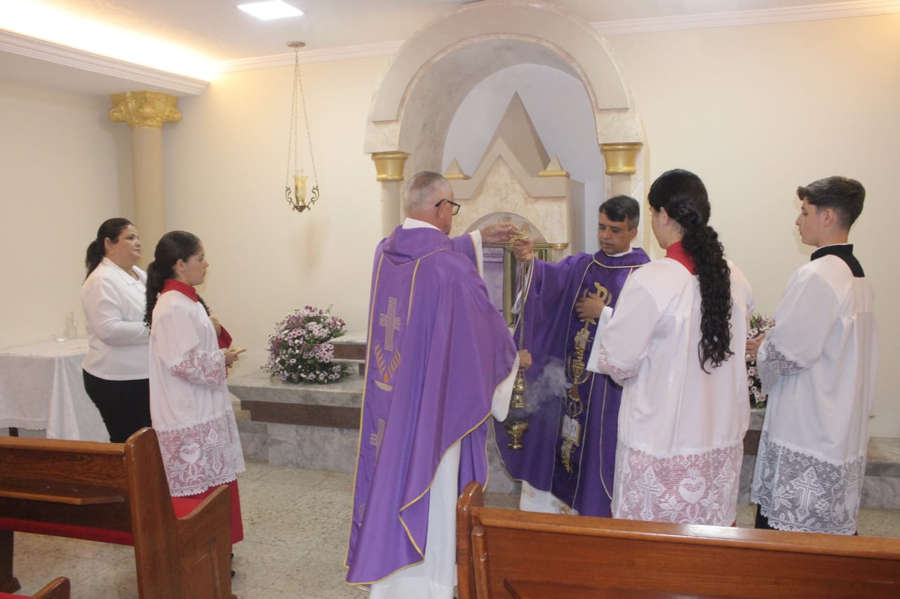 A celebração de posse aconteceu na Matriz , com missa presidida pelo vigário geral, Pe José Carlos de Oliveira , e presenças de representantes de comunidades, pastorais e de movimentos, além dos padres diocesanos.