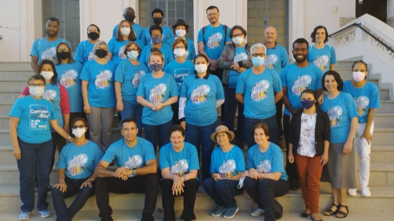 Por uma Igreja Sinodal. Comunhão profunda, participação plena, missão frutífera. Sinodalidade, esforço coletivo e a busca contínua de aprendendo a “caminhar juntos/as como irmãos e irmãs que somo. É uma Igreja onde cada pessoa é importante, tem voz, é ouvida, capacitada e envolvida na realização da missão. Nos colocamos entre iguais para juntos/as fazemos a experiência de fé.