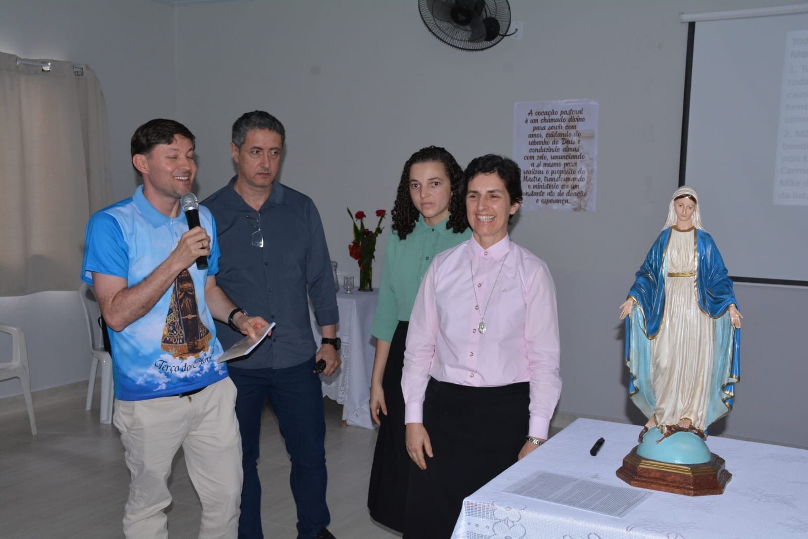 A programação começou com a oração do Terço Mariano. Em seguida, o padre Marlon apresentou o plano diocesano de pastoral.
