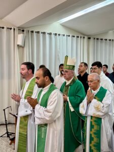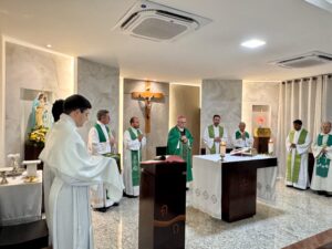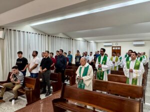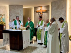 Dom Nivaldo dos Santos Ferreira, bispo auxiliar de Belo Horizonte, e bispo Referencial da Osib Regional Leste 2 presidiu a Celebração Eucarística de abertura do encontro.
