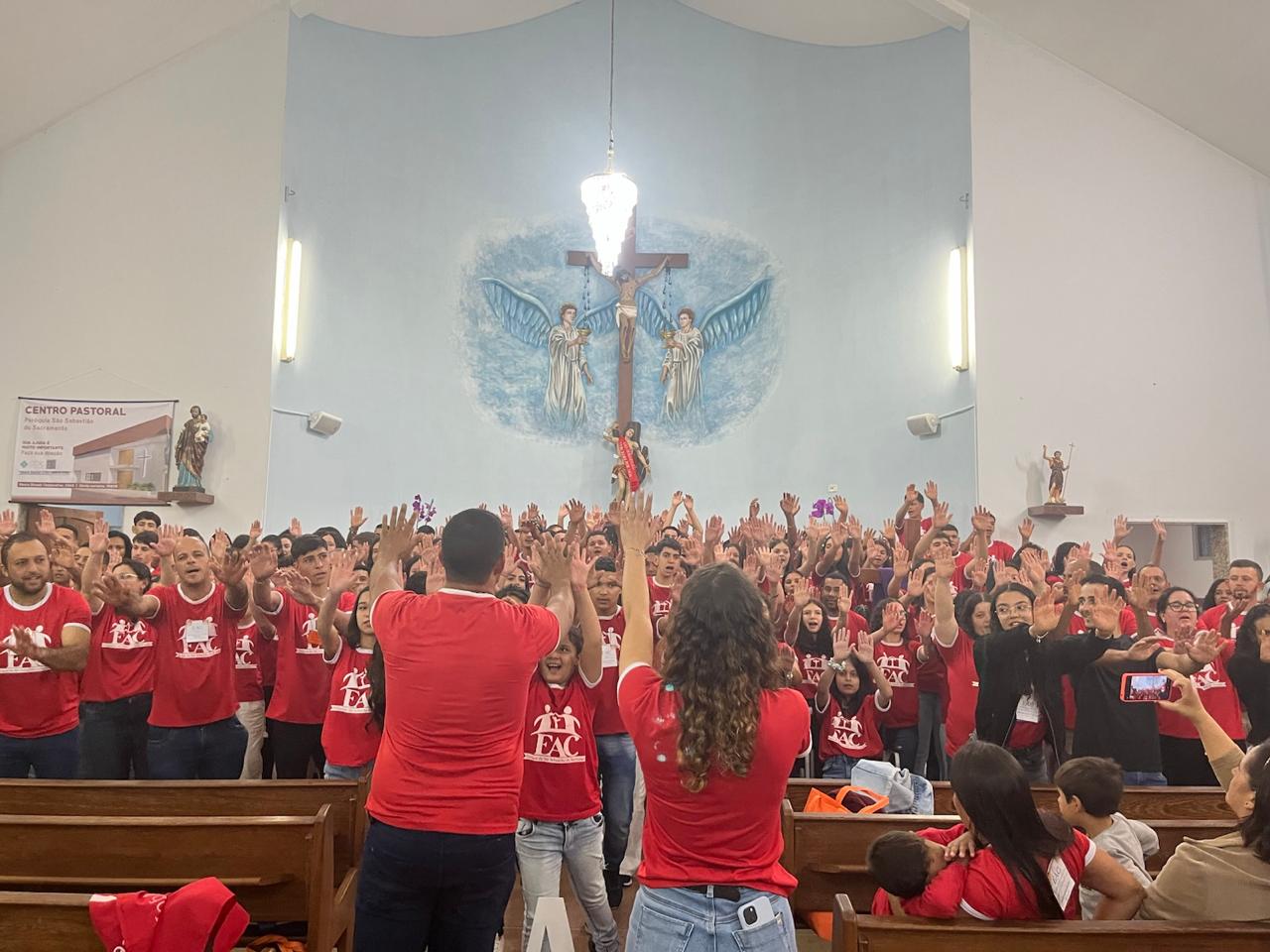 Em nossa Paróquia de São Sebastião do Sacramento, aconteceu nesse último final de semana, dias 05 e 06 de abril, o V EAC. Onde 63 adolescentes puderam viver dois dias em conexão com Cristo, tivemos vários jovens e tios que serviram com carinho e amor para juntos levarmos Jesus ao coração de nossos adolescentes.