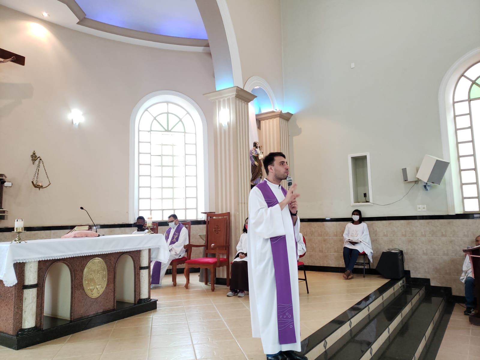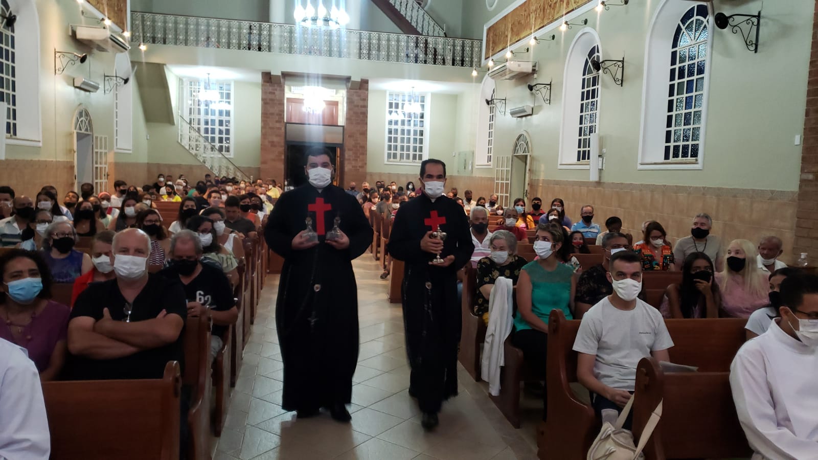 Padre Elielton presidiu a missa na Matriz da Paróquia Nossa Senhora do Carmo , Pe Mateus na comunidade Nossa Senhora  das Graças ( Bairro das Graças), seguindo com a benção para os enfermos.