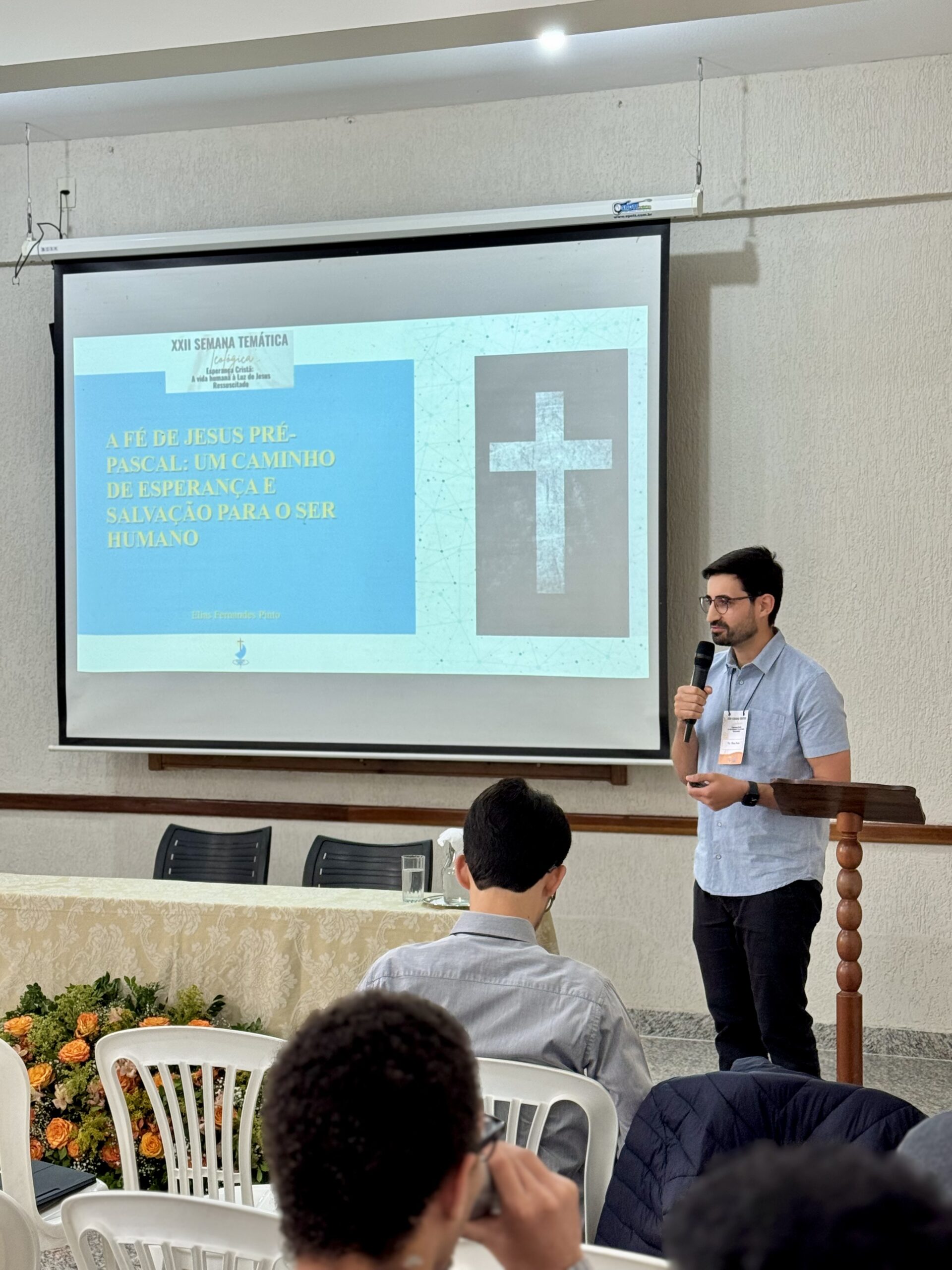 Na quarta-feira, o Pe. Fabiano Milione Honório apresentou a conferência “A ressurreição de Cristo como fundamento da ressurreição cristã”, inspirando-se do teólogo Joseph Ratzinger, saudoso papa Bento XVI.